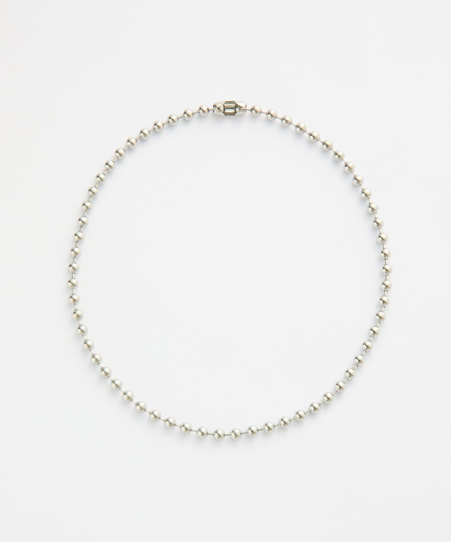 程よいボリューム感と、シルバー特有のクールな輝きが特徴のポールチェーンネックレス。