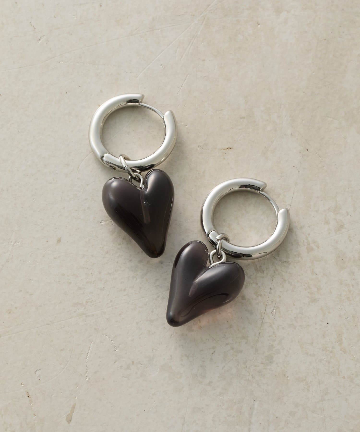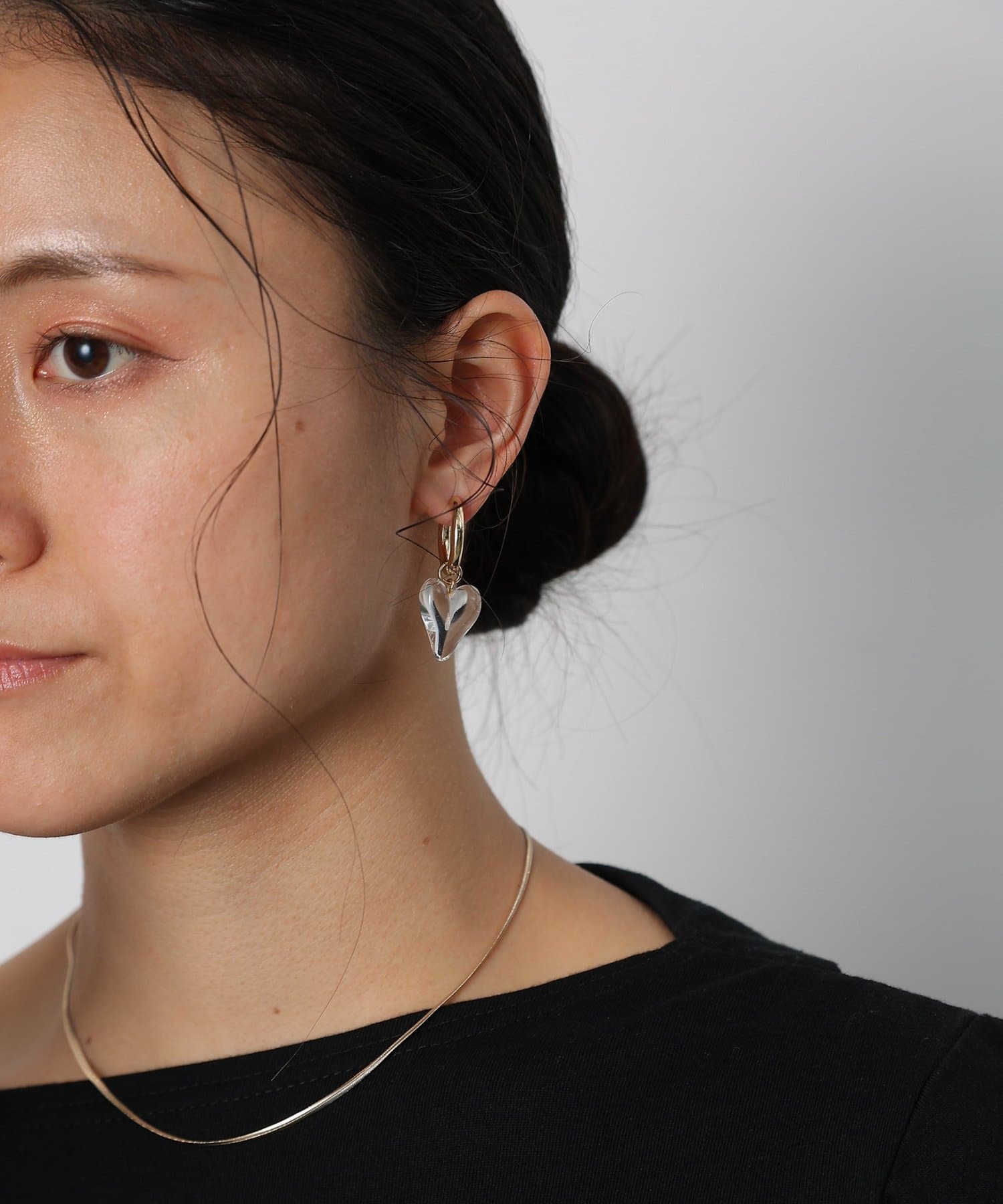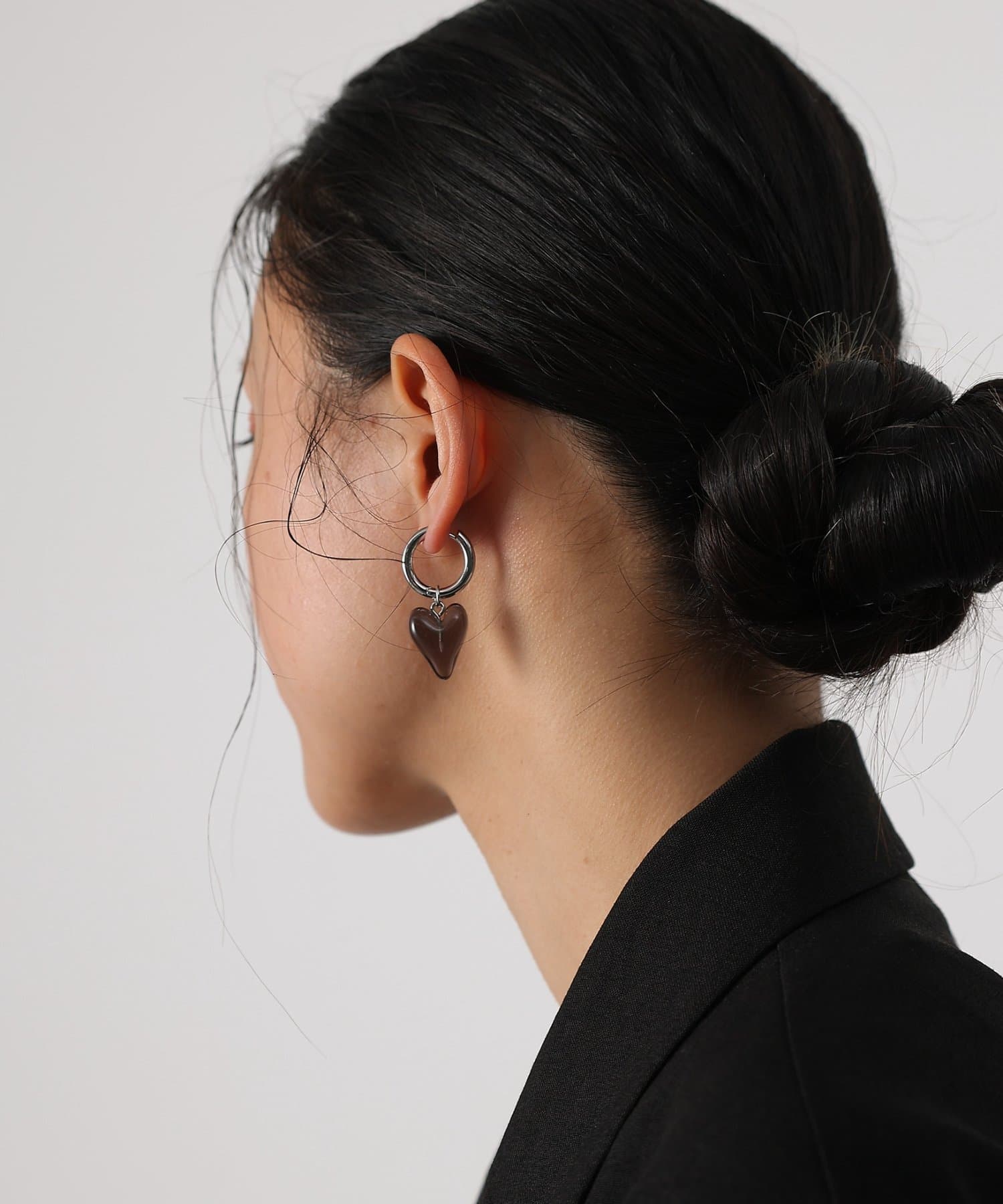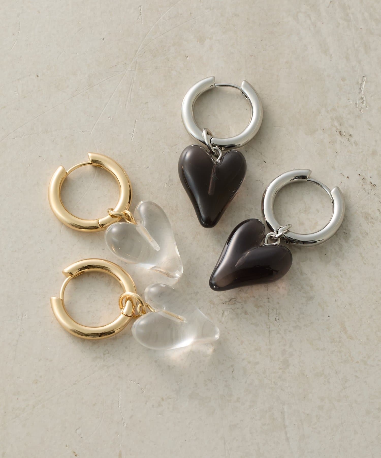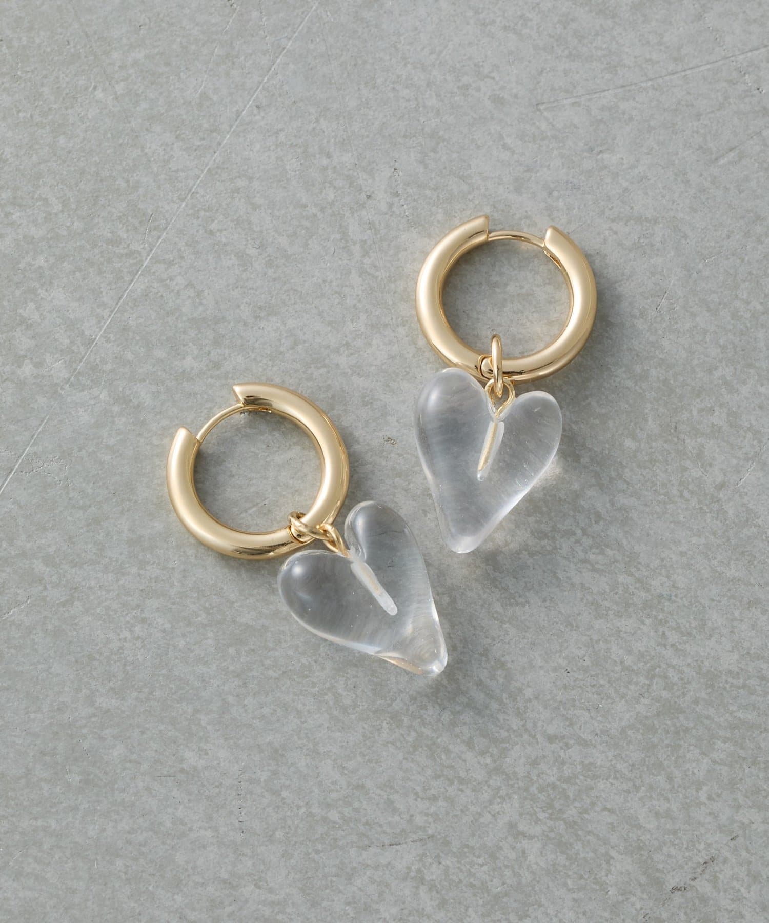 ころんとしたフォルムが愛らしいハートモチーフの2wayピアス。シンプルなフープピアスに取り外し可能なハートチャームを組み合わせたデザインでその日の気分やファッションに合わせて、2通りのスタイルを楽しめます。クリアカラーで透明感のあるハートチャームは耳元で揺れてアクセントに。ハートチャームを外せば、シンプルなフープピアスとして活躍。オフィススタイルや、ミニマルなファッションにも合わせやすい万能アイテムです。キャッチのないワンタッチ式なので、着脱も簡単。忙しい朝でも、サッと装着してお出かけできます。