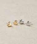 カラーはリュクスな輝きを放つゴールドと、クールで洗練されたシルバーの2色をご用意しました。日々の装いにさりげない個性をプラスするコンパクトなサイズ感なので、コンフォートな付け心地です。ミニマルなデザインながら、こだわり抜いたハートのフォルムは大人の女性の遊び心をくすぐる、洗練されたデザイン。素材には真鍮とチタンを使用。金属アレルギーを起こしにくいチタンと、上品な光沢が特徴で真鍮は高級感を演出します。カジュアルなデニムスタイルから、エレガントなパーティードレスまで、どんな装いにもすっと溶け込み、洗練された印象を与えます。オン/オフ問わず、デイリーアクセサリーとしてもおすすめです。自分へのご褒美にはもちろん、大切な人へのギフトにも最適な1点。