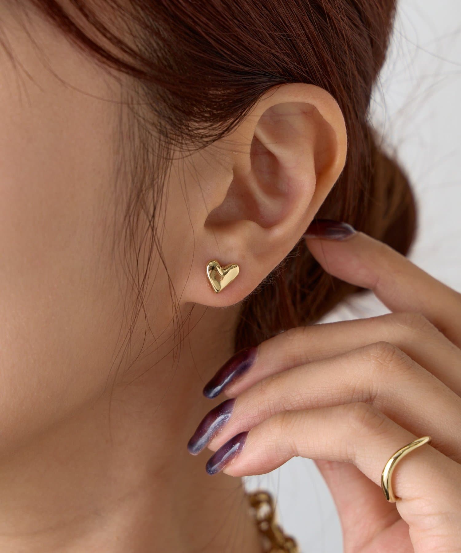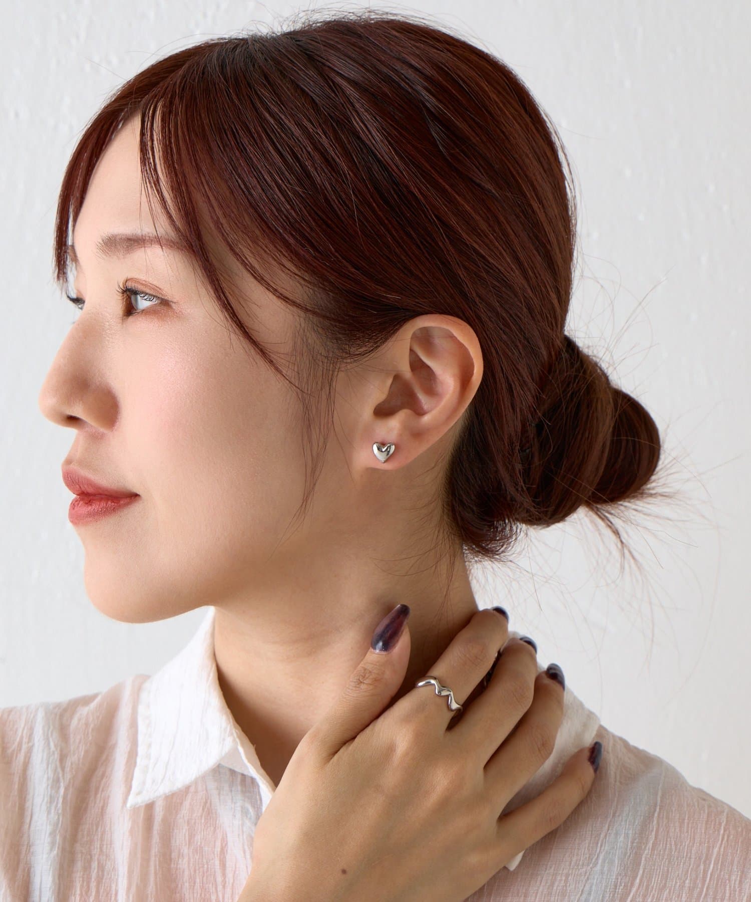 カラーはリュクスな輝きを放つゴールドと、クールで洗練されたシルバーの2色をご用意しました。日々の装いにさりげない個性をプラスするコンパクトなサイズ感なので、コンフォートな付け心地です。ミニマルなデザインながら、こだわり抜いたハートのフォルムは大人の女性の遊び心をくすぐる、洗練されたデザイン。素材には真鍮とチタンを使用。金属アレルギーを起こしにくいチタンと、上品な光沢が特徴で真鍮は高級感を演出します。カジュアルなデニムスタイルから、エレガントなパーティードレスまで、どんな装いにもすっと溶け込み、洗練された印象を与えます。オン/オフ問わず、デイリーアクセサリーとしてもおすすめです。自分へのご褒美にはもちろん、大切な人へのギフトにも最適な1点。