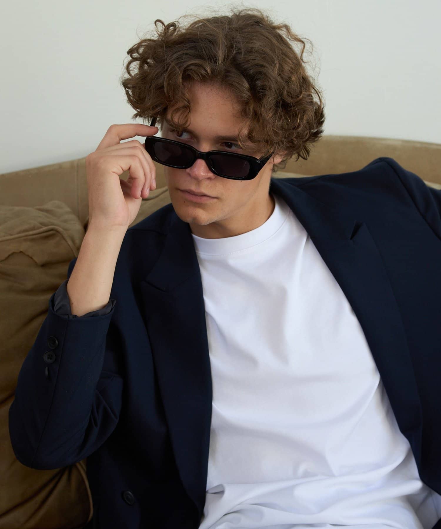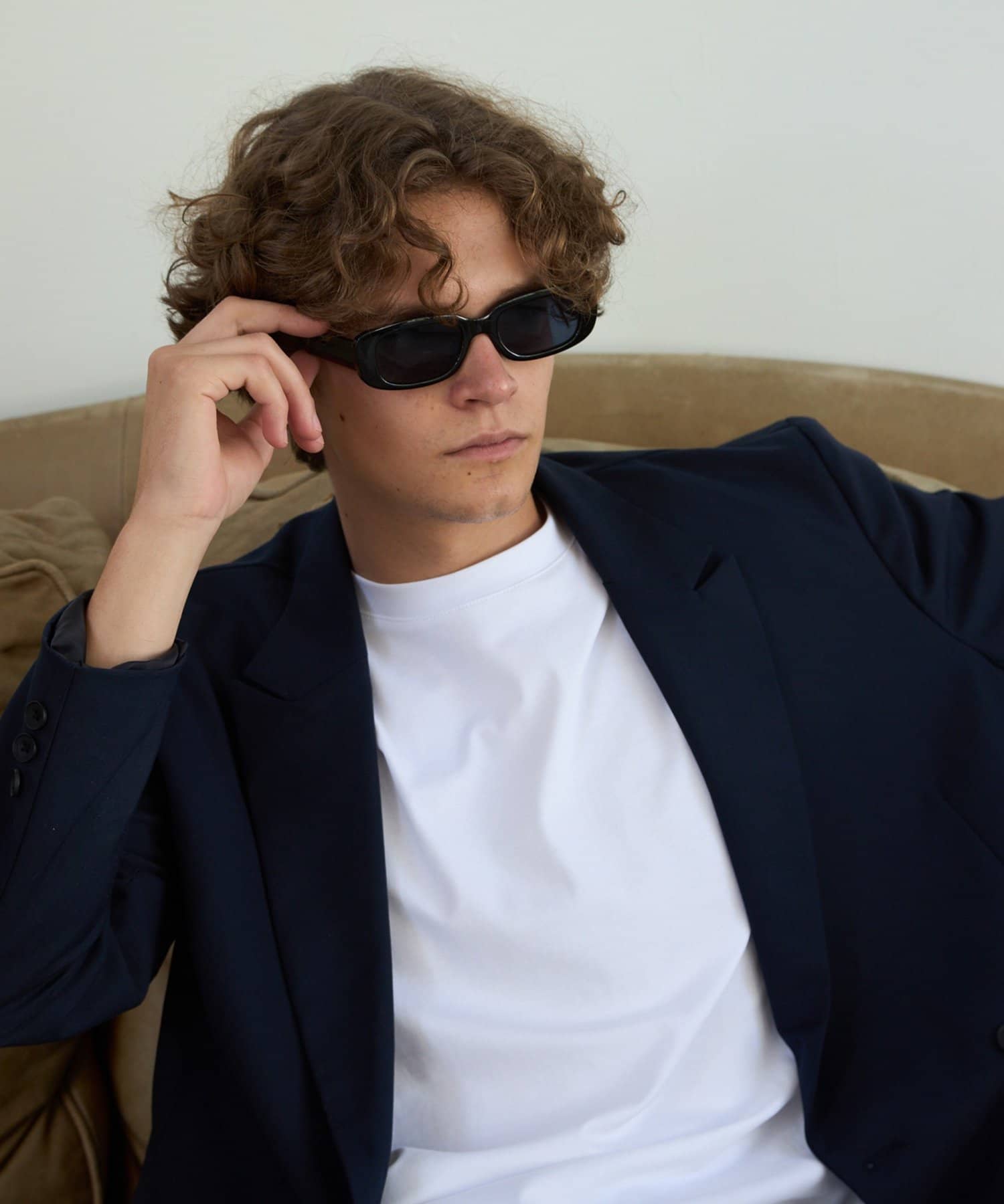 トレンド感度の高いスクエアフレームは、顔の印象を引き締め、小顔効果も期待できます。