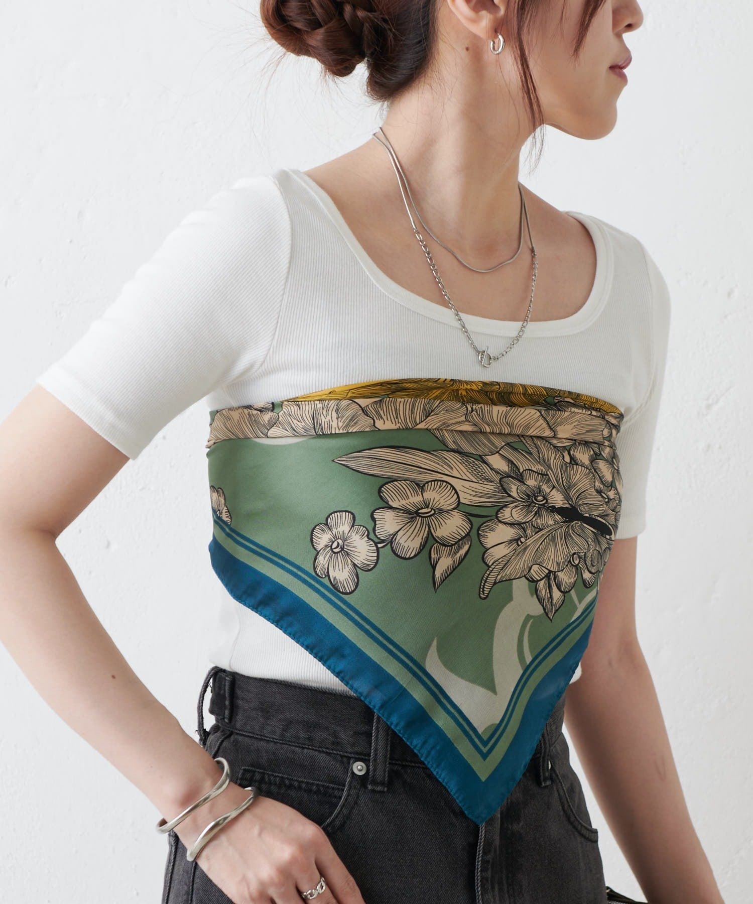 首元に巻くのはもちろん、バッグの持ち手に結んだり、ヘアアレンジに使ったりと、1枚で何通りもの使い方が楽しめる万能アイテム。