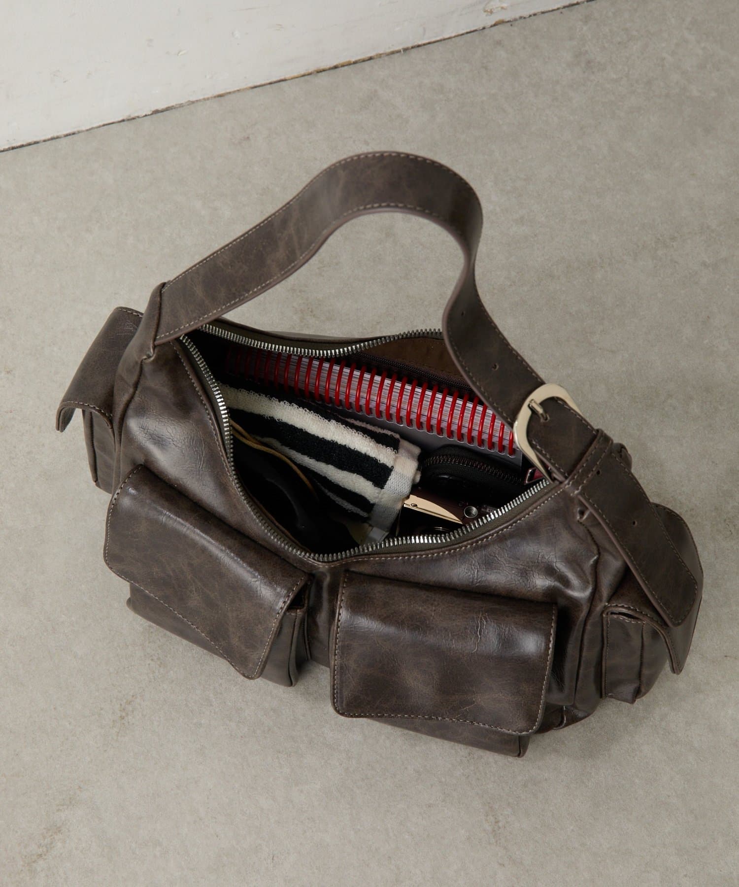 ヴィンテージ合皮マルチポケットショルダーバッグ