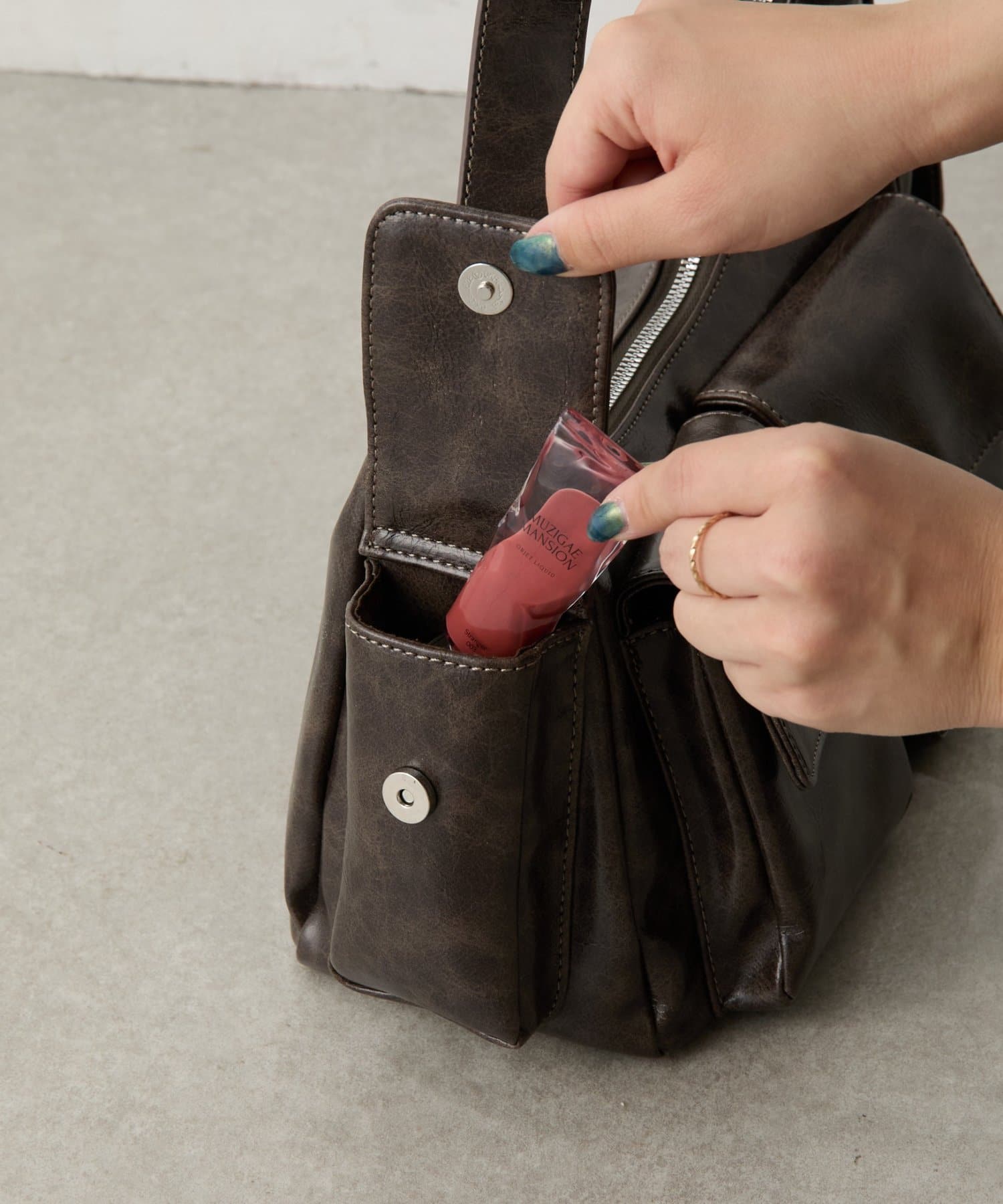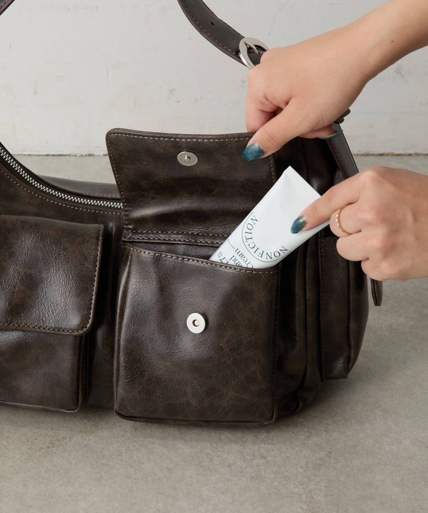 【多収納&高見え◎ ヴィンテージライクな合皮ショルダー】