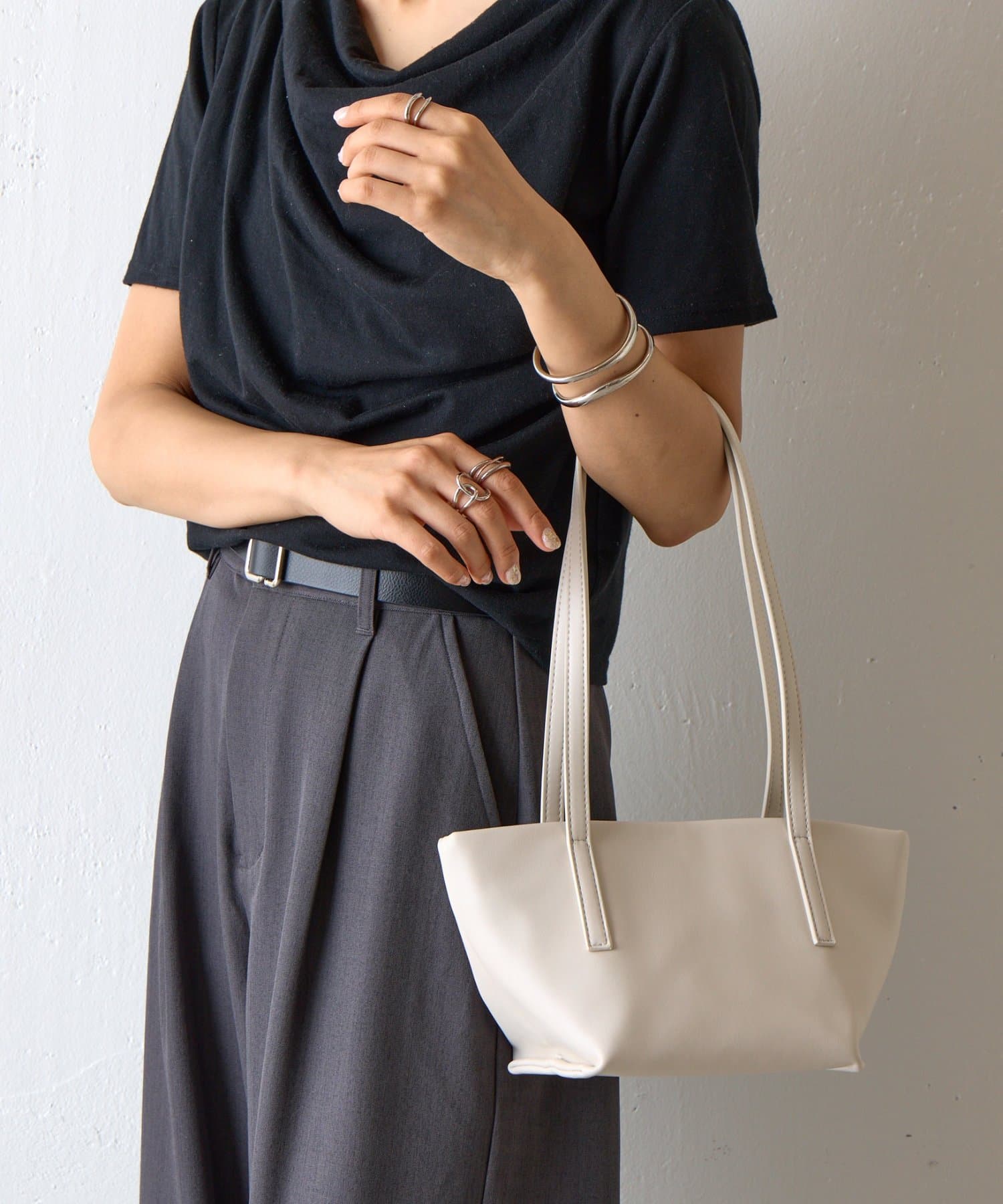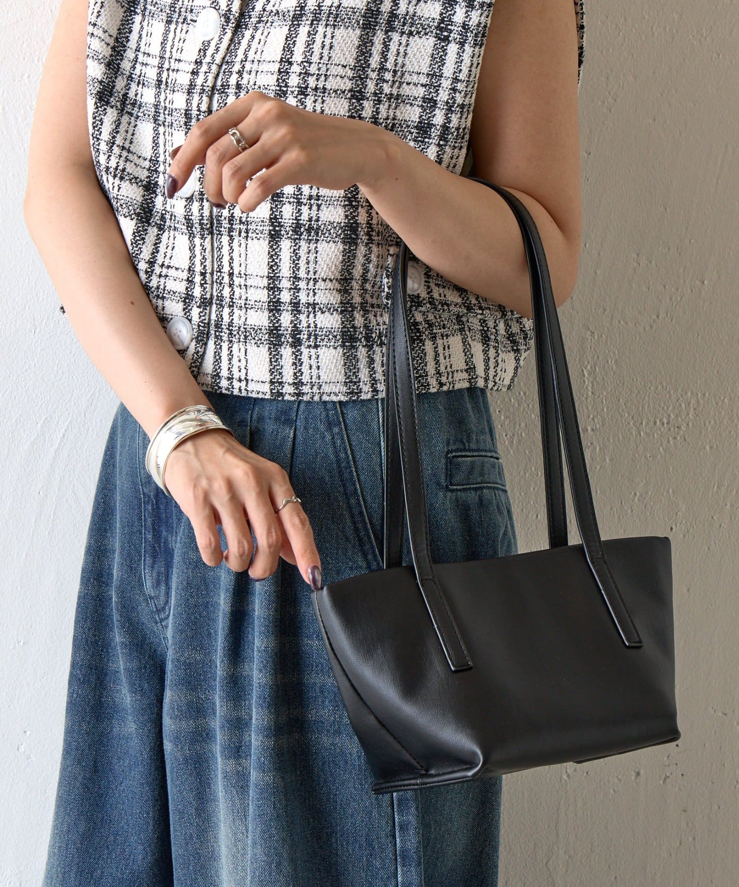 洗練されたミニマルデザインは、どんなシーンにも合わせやすく、日常にそっと寄り添います。約200g(リンゴ約1個分)と超軽量なので長時間持ち歩いても疲れにくく、肩や腰の負担少ないのも嬉しいポイント◎長めのハンドルは、肩掛けしやすく、見た目にもスタイリッシュでスマートな印象を演出します。両手を空けてアクティブに過ごしたい時にも便利です。底マチがしっかりとあり安定感があり、コンパクトな差見た目以上に収納力があるのでお弁当などを収納するのにもおすすめ。大きく口が開くので中身を取り出ししやすく使いやすいデザインを追求しました。シンプルデザインでどんなコーディネートにもすんなりと馴染み、上品さをプラス。通勤や通学の普段使いだけではなく、お出かけやパーティーシーンにも活躍間違いなしです。一つ持っていれば、様々なシーンで重宝すること間違いなしの1点。