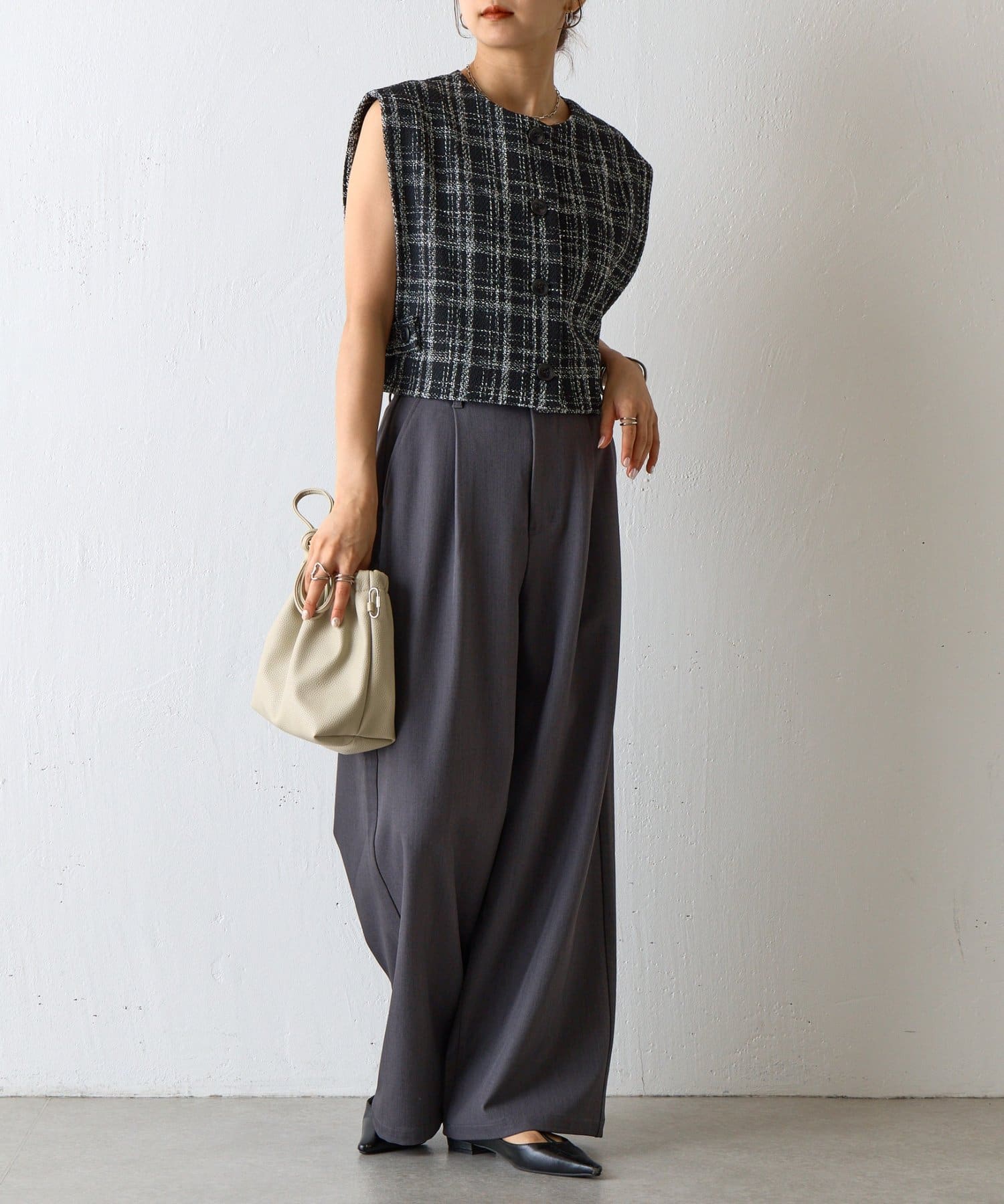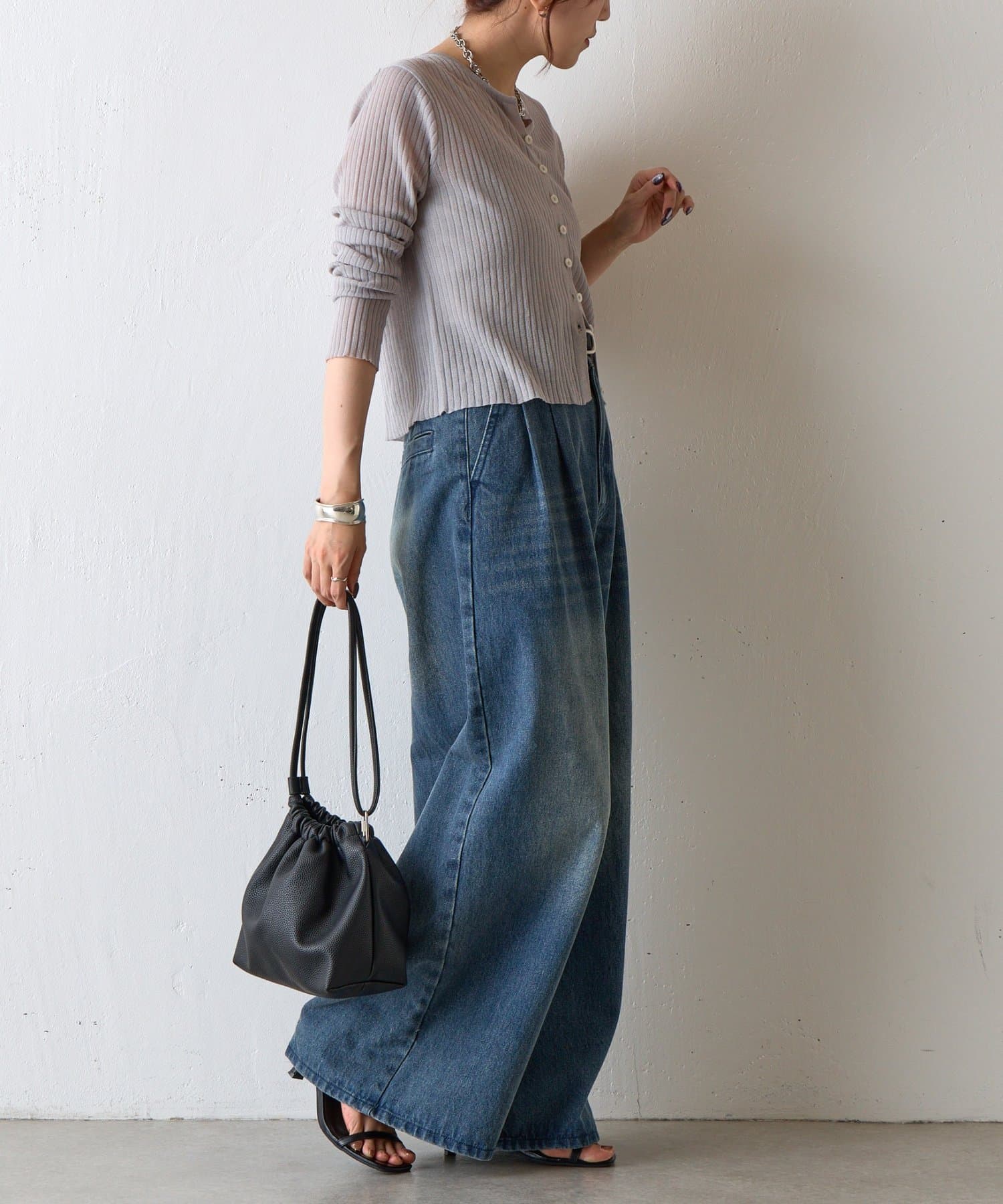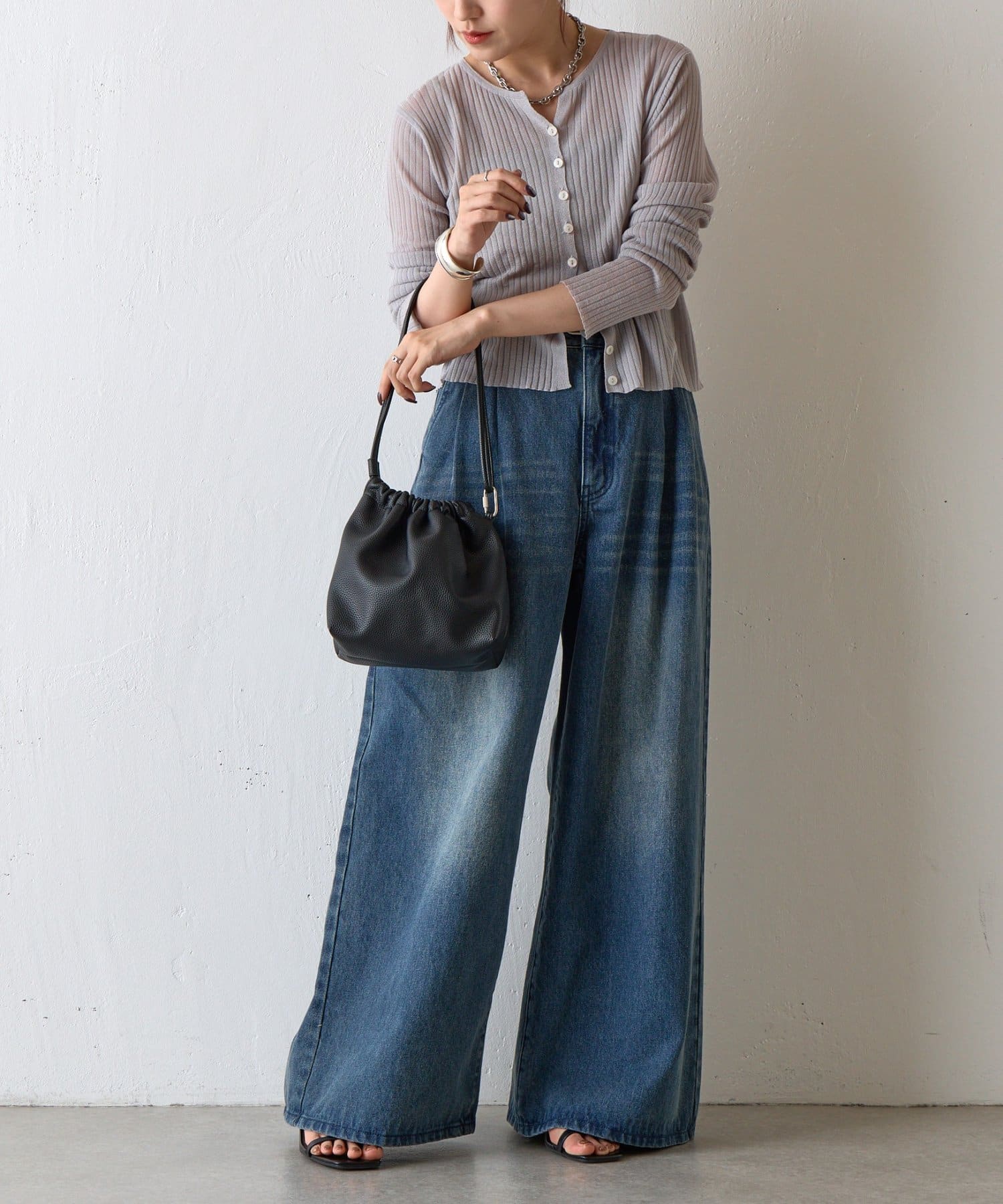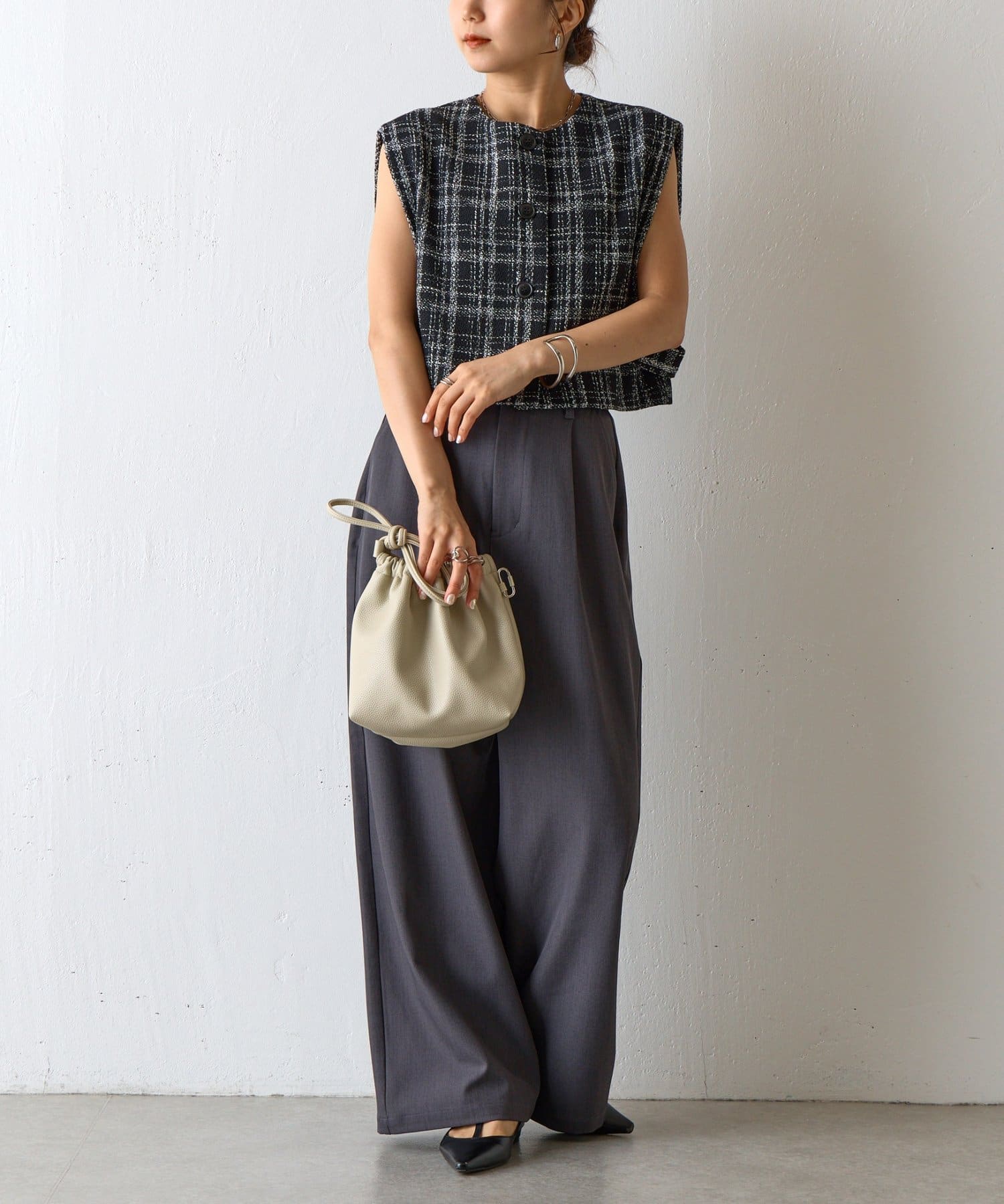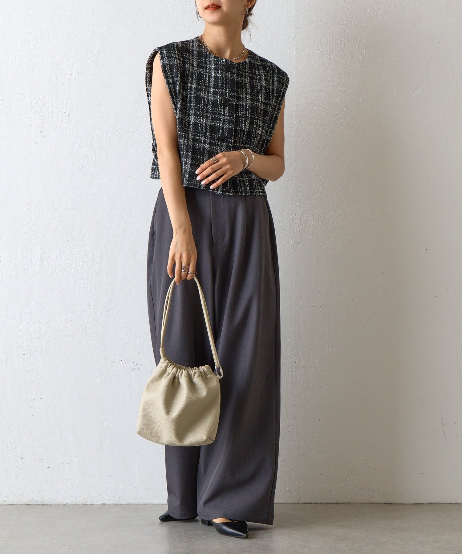 【くしゅっとしたフォルムが愛らしい、ドローストリングデザインのハンドバッグ】