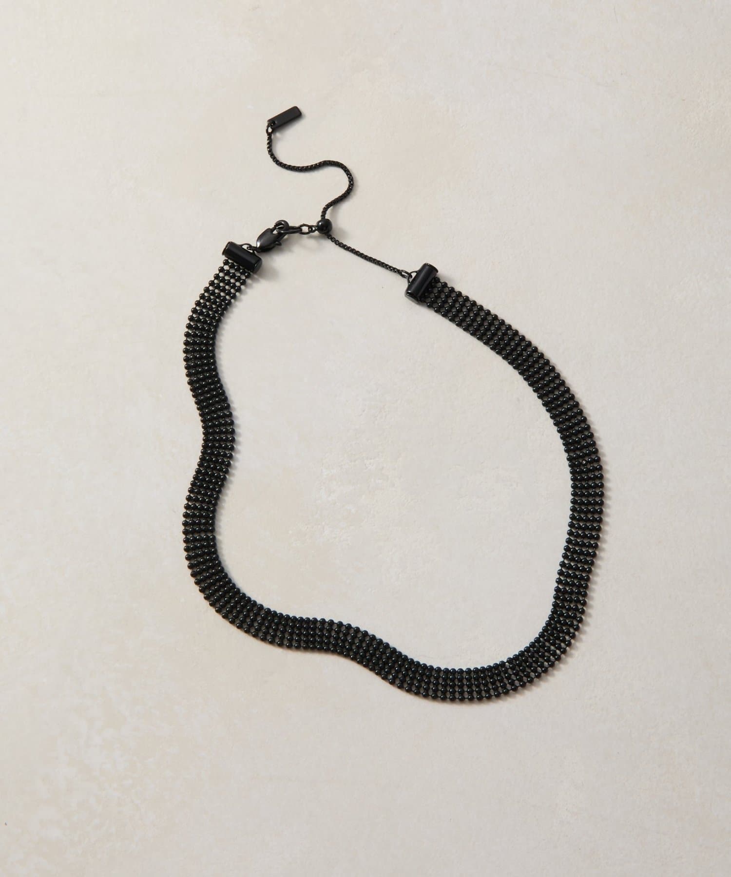 細いボールチェーンが連なった華奢なメタルチョーカーです。
