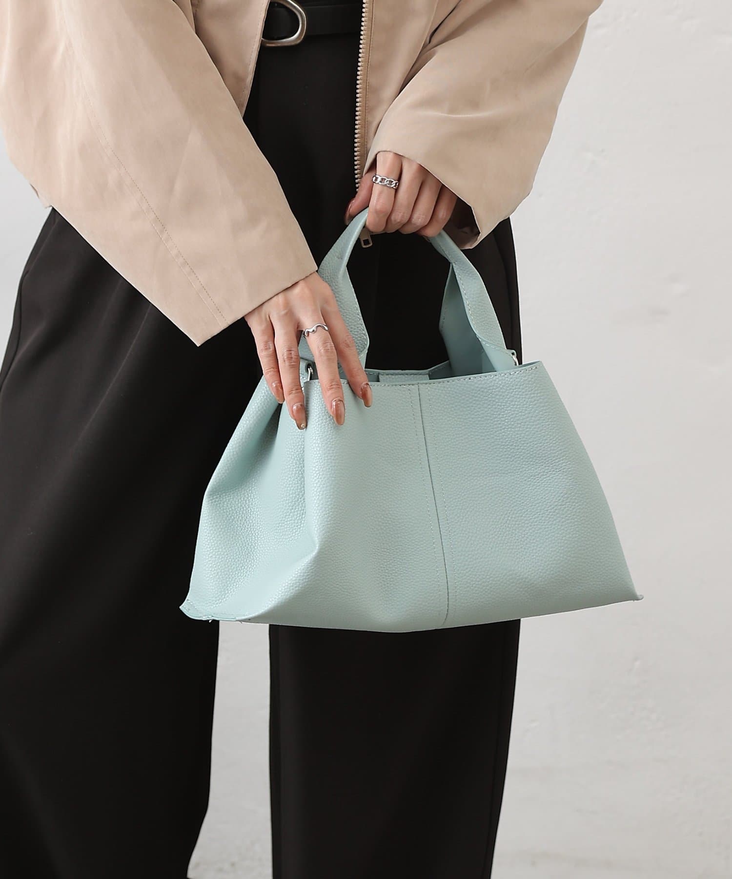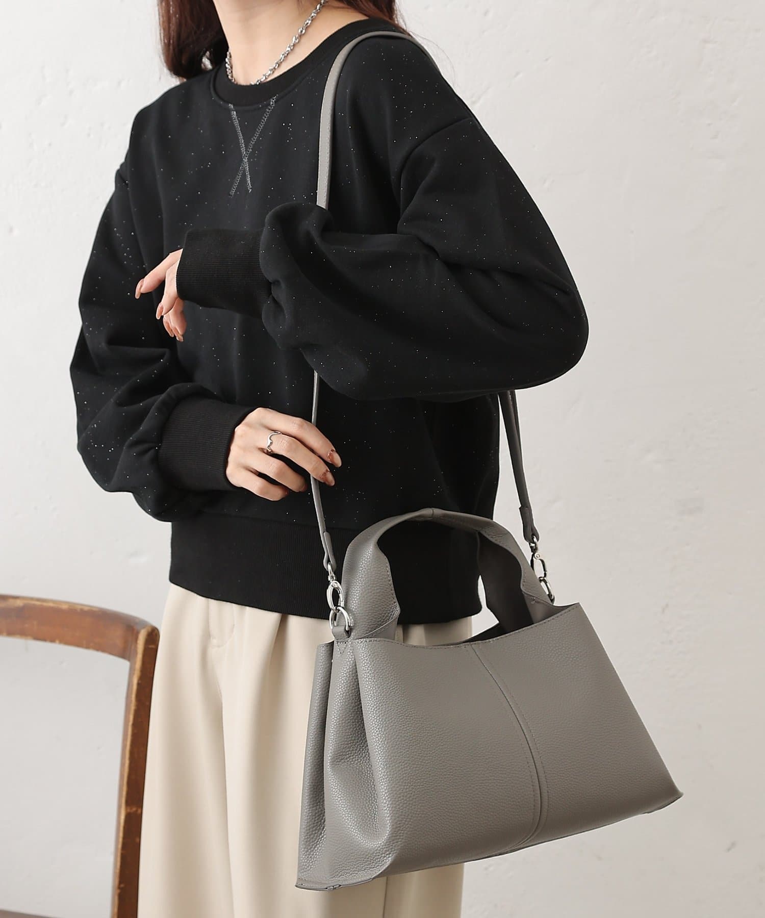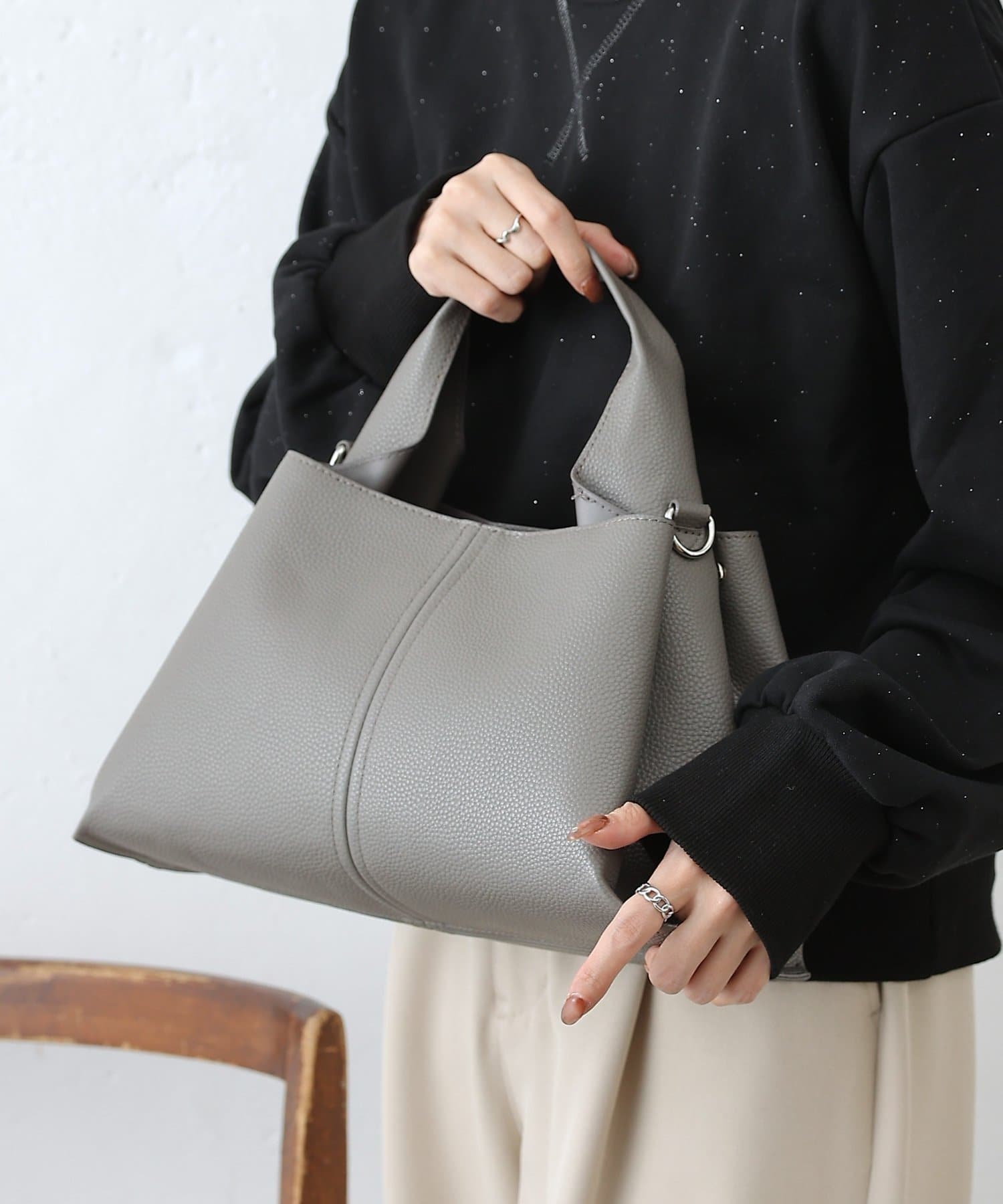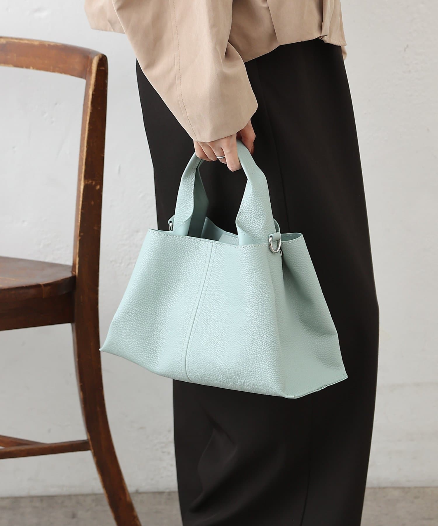 ショルダーストラップが取り外し可能なので、ショルダーバッグとしても、ハンドバッグとしても使用可能です。