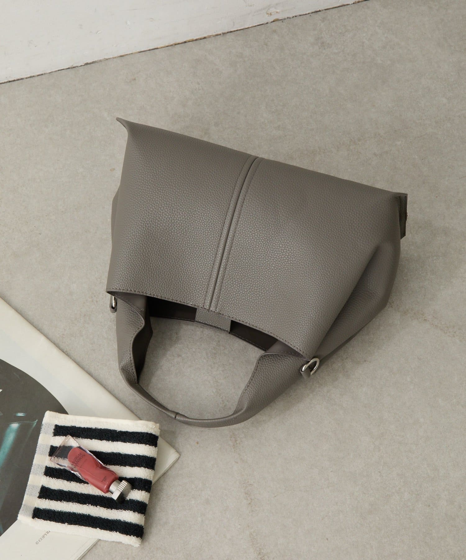 【シルエット自在、サイドスナップ付きトートバッグ】
