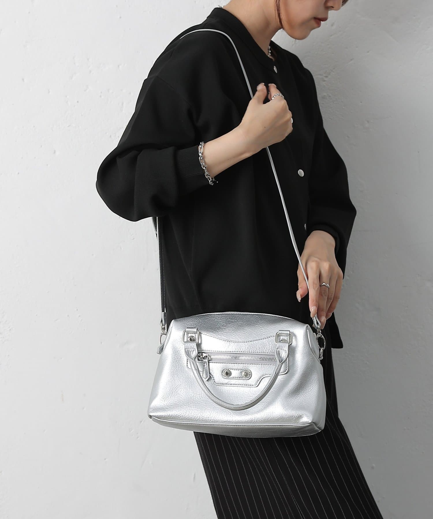 スタッズデザインがかわいい、コーデのアクセントになるバッグです。