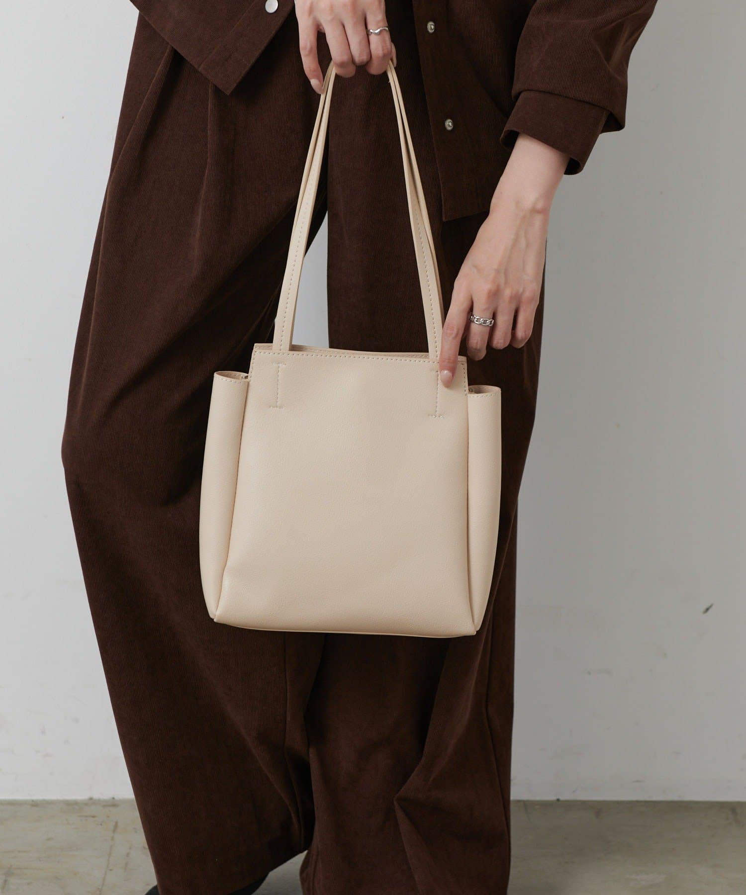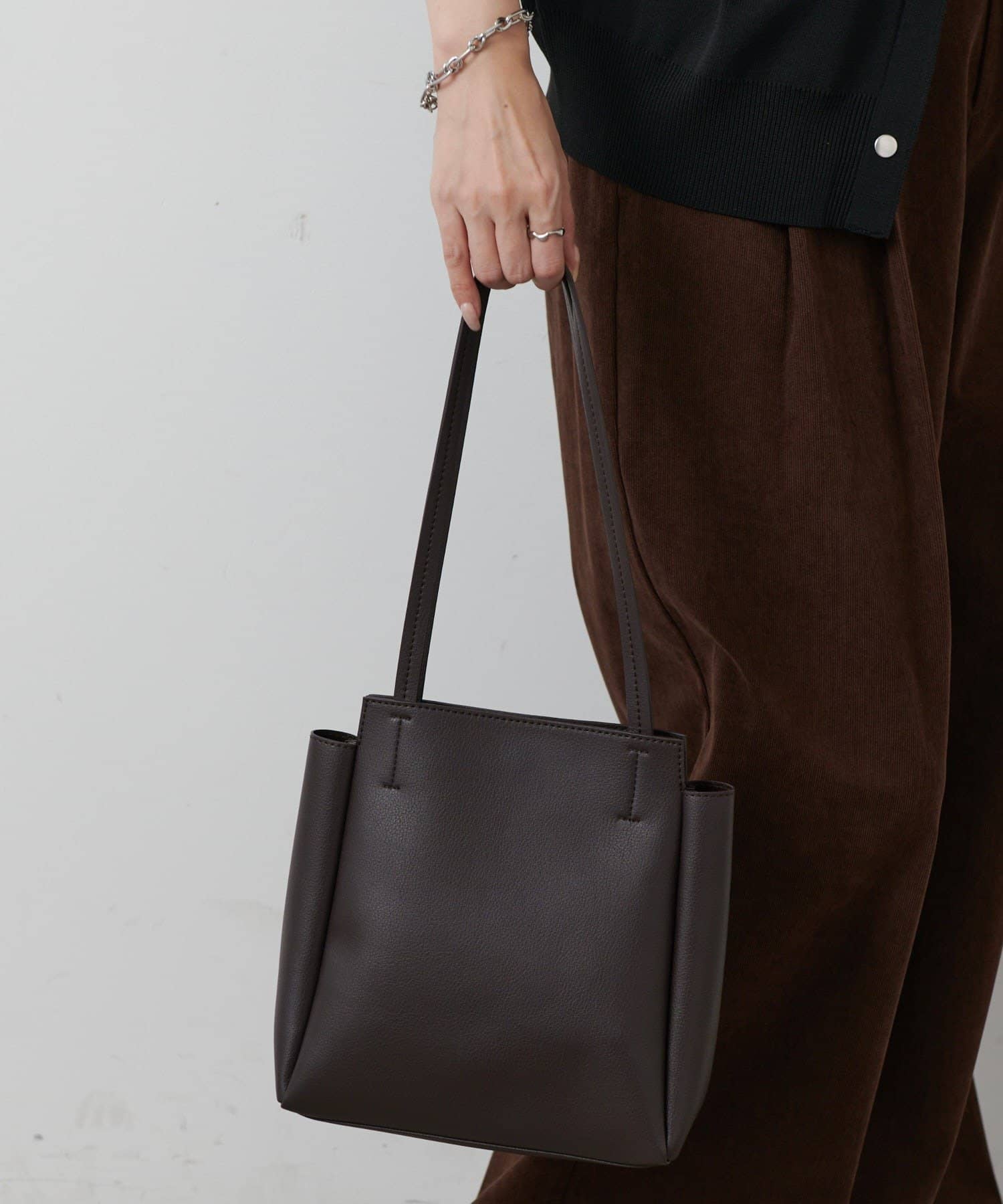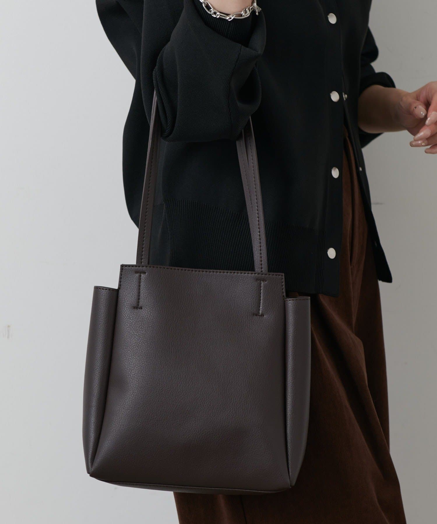 シャープなスクエアシルエットが印象的なトートバッグは、オンにもオフにもなじむシンプルで上品なデザインが魅力。