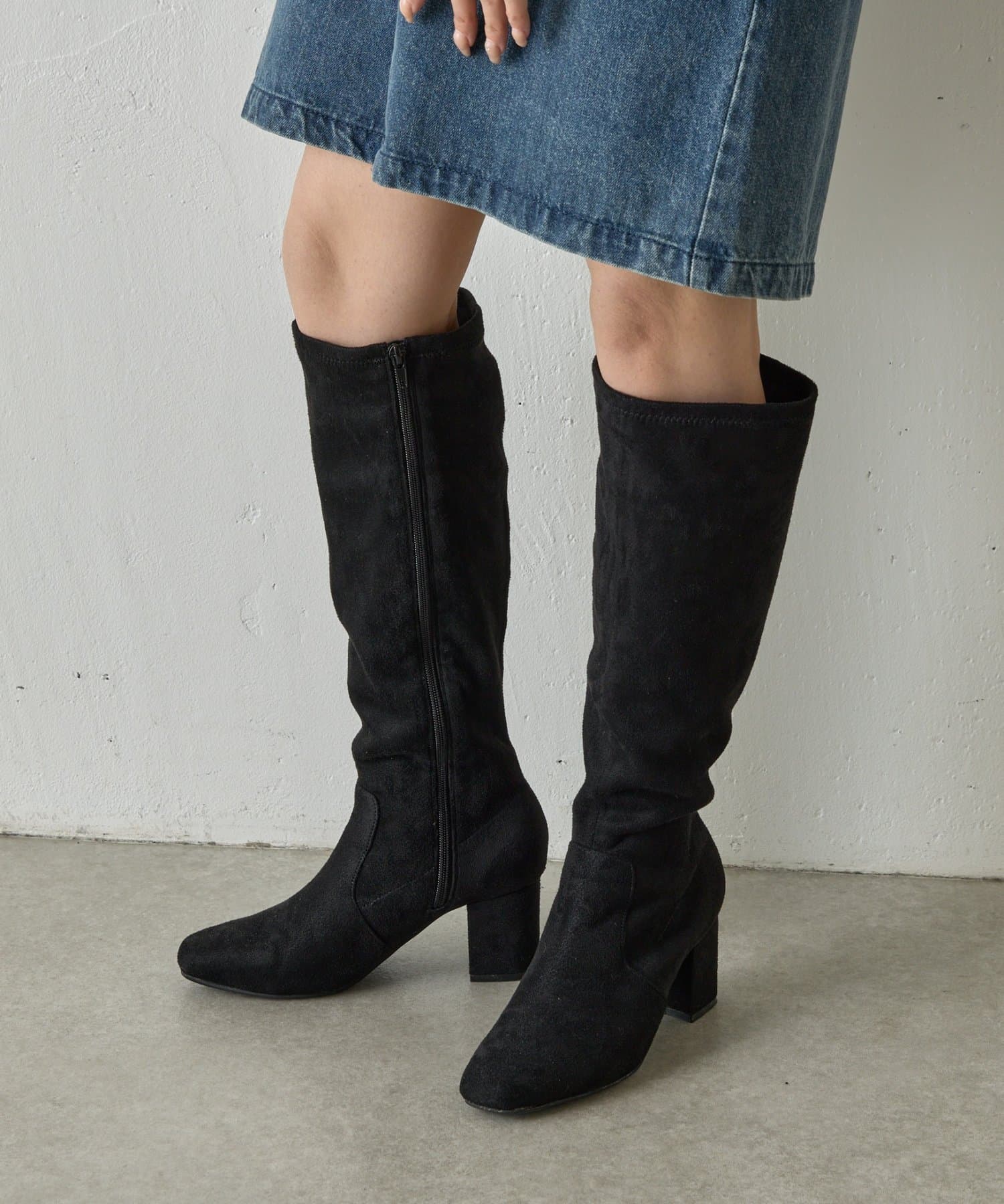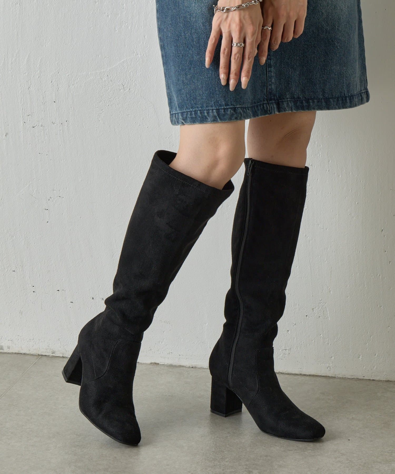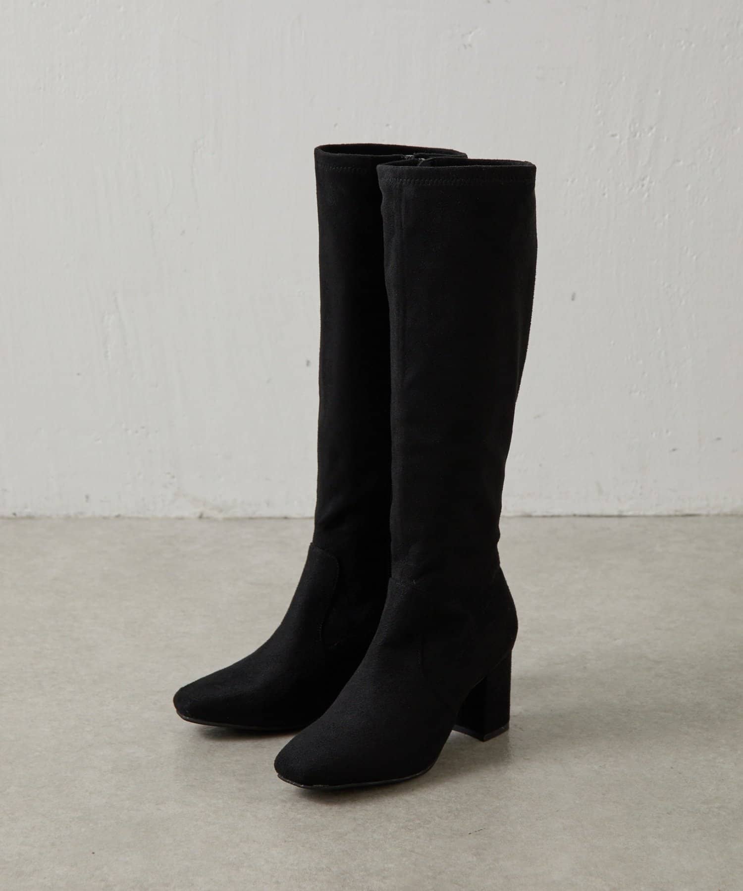 今季トレンドのスクエアヒールストレッチブーツが登場。