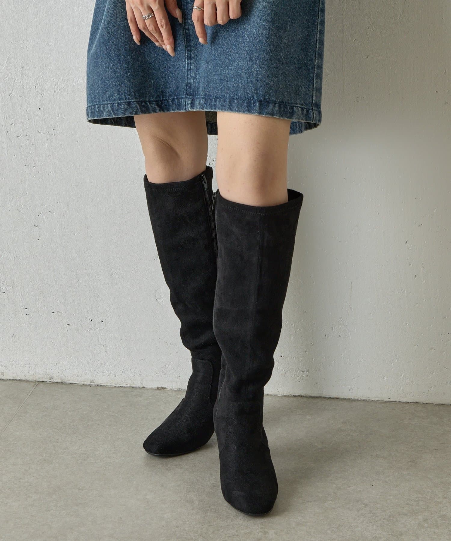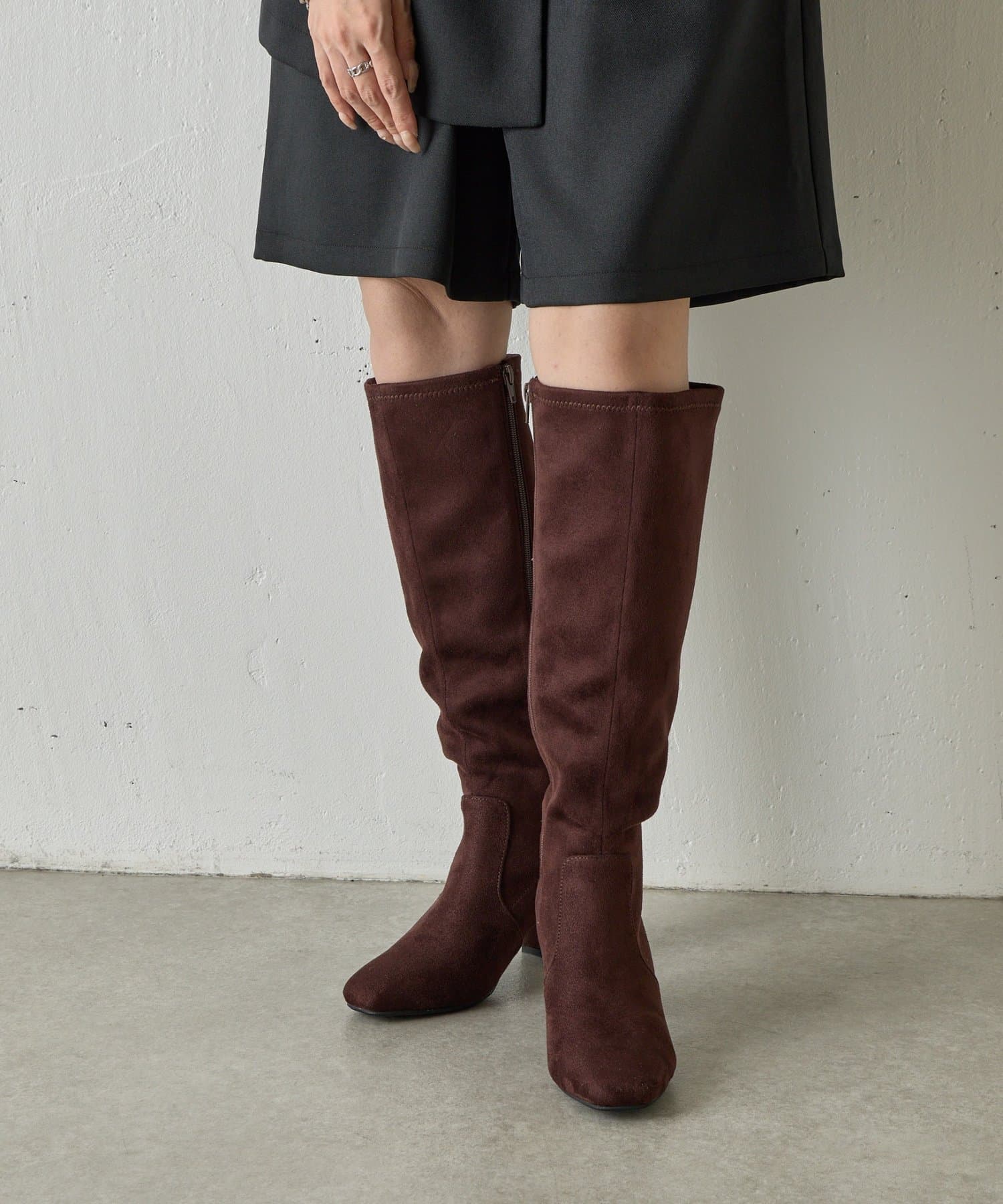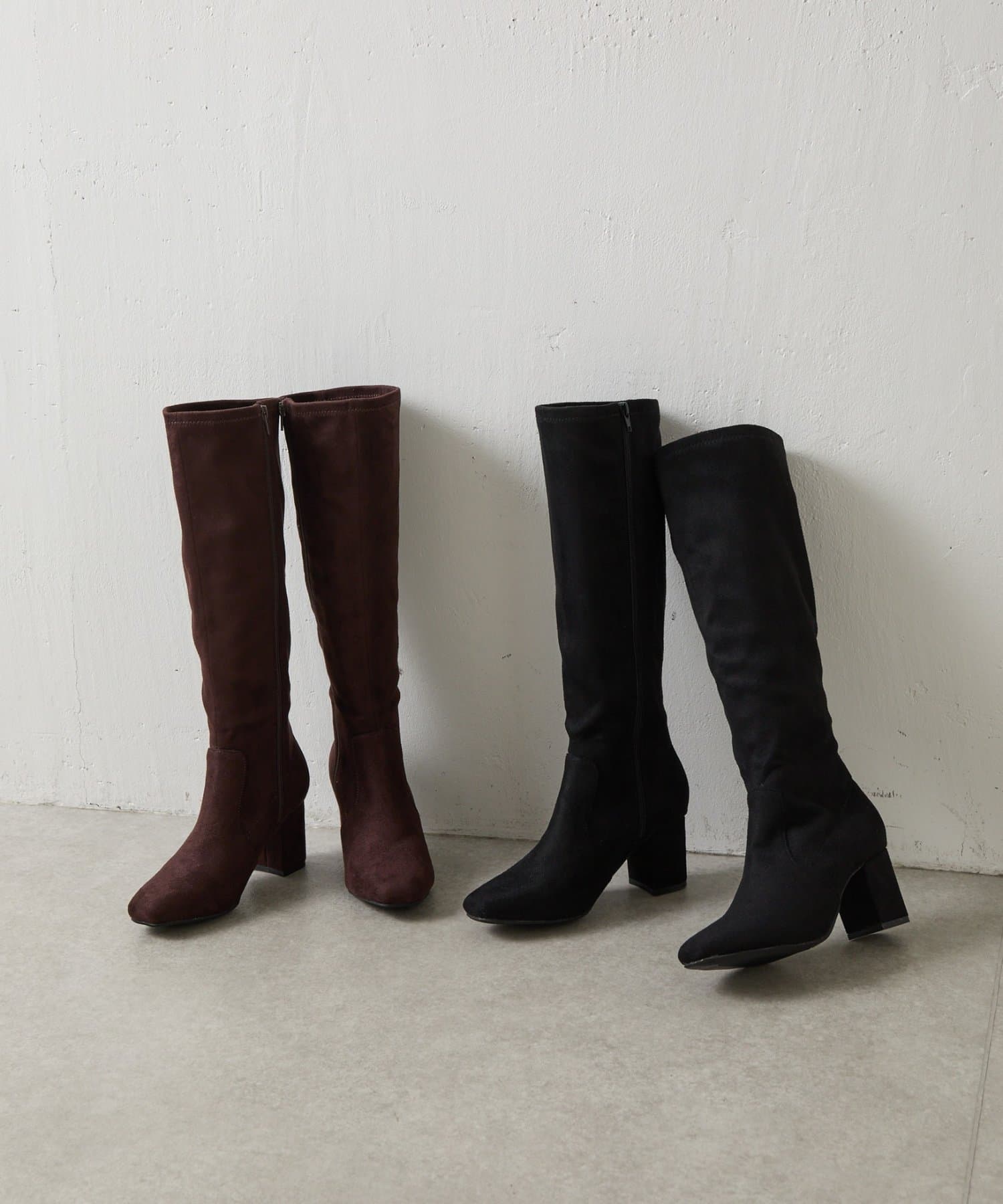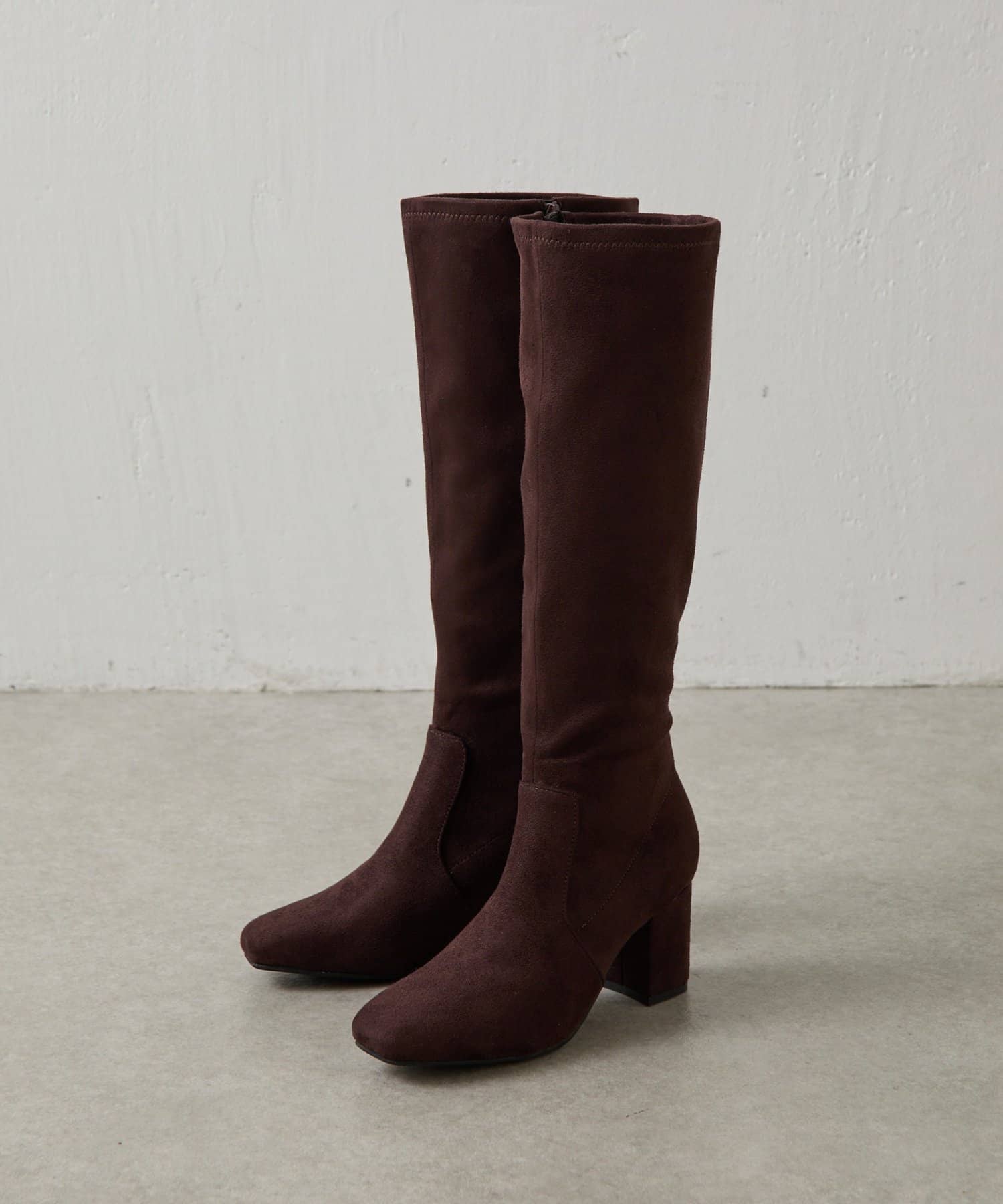 今季トレンドのスクエアヒールストレッチブーツが登場。