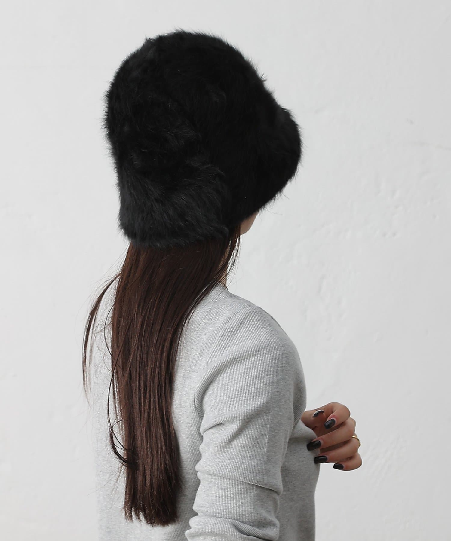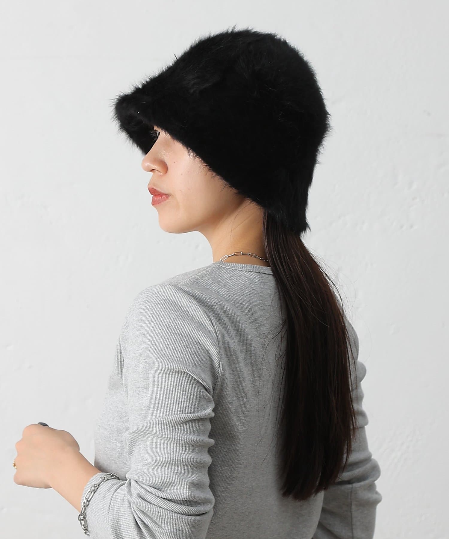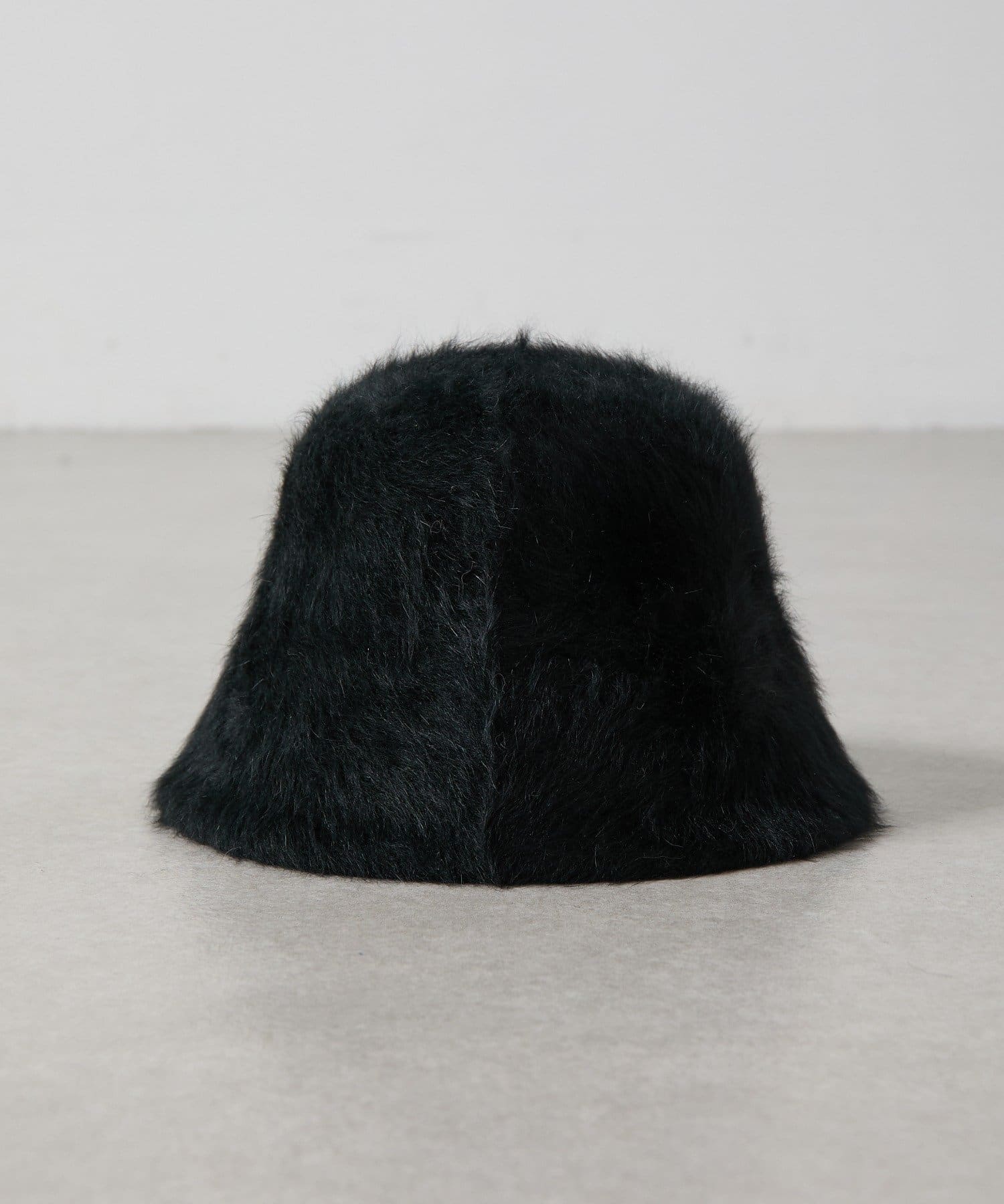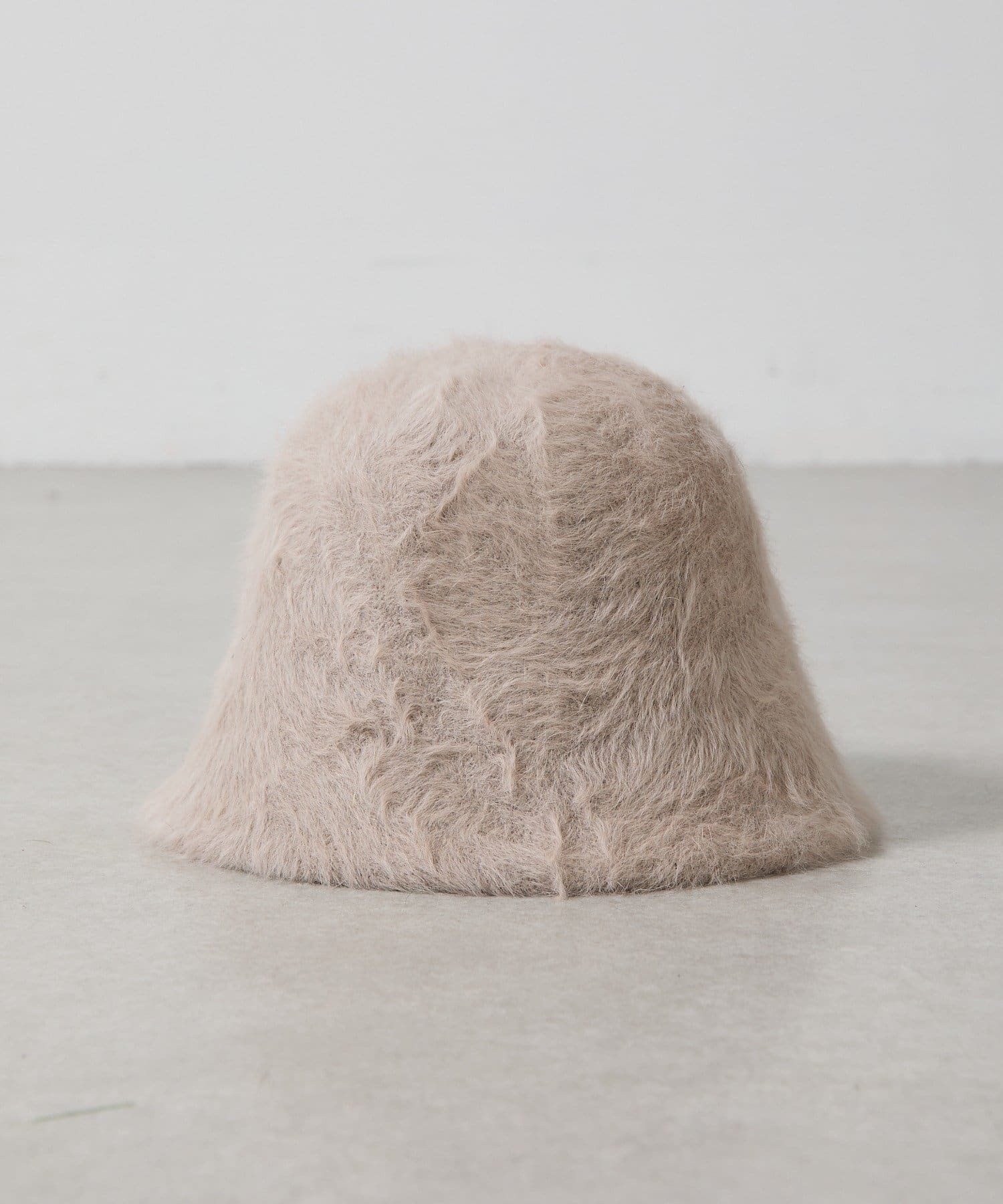 ふんわりとしたファーの様なシャギー素材のバケットハット。