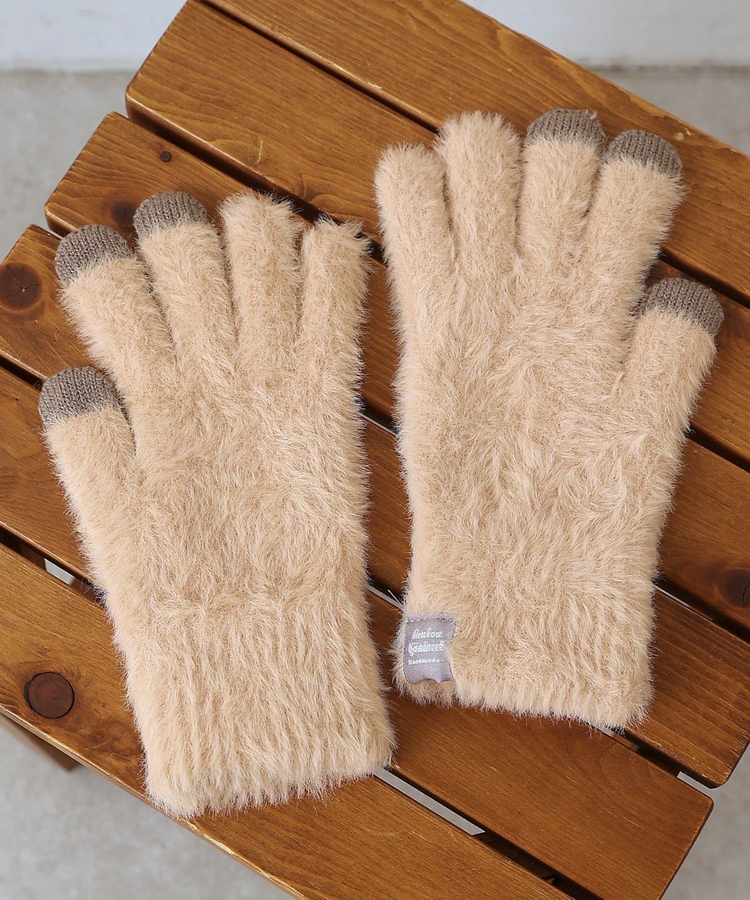やわらかいモヘア風素材で見た目もふんわりかわいい手袋です。
