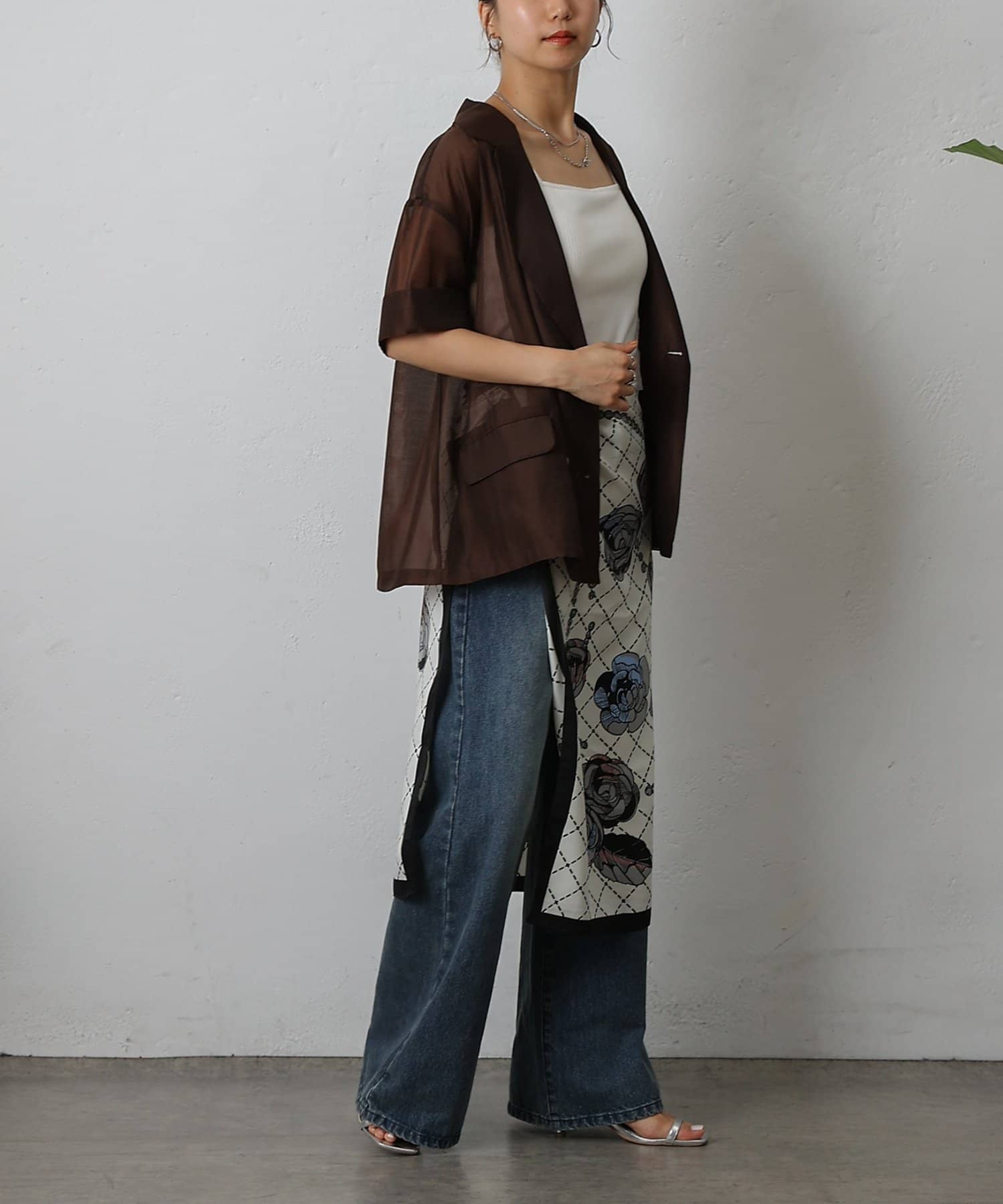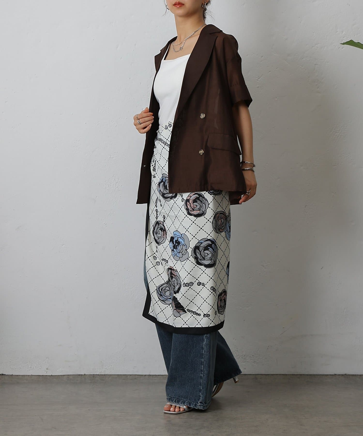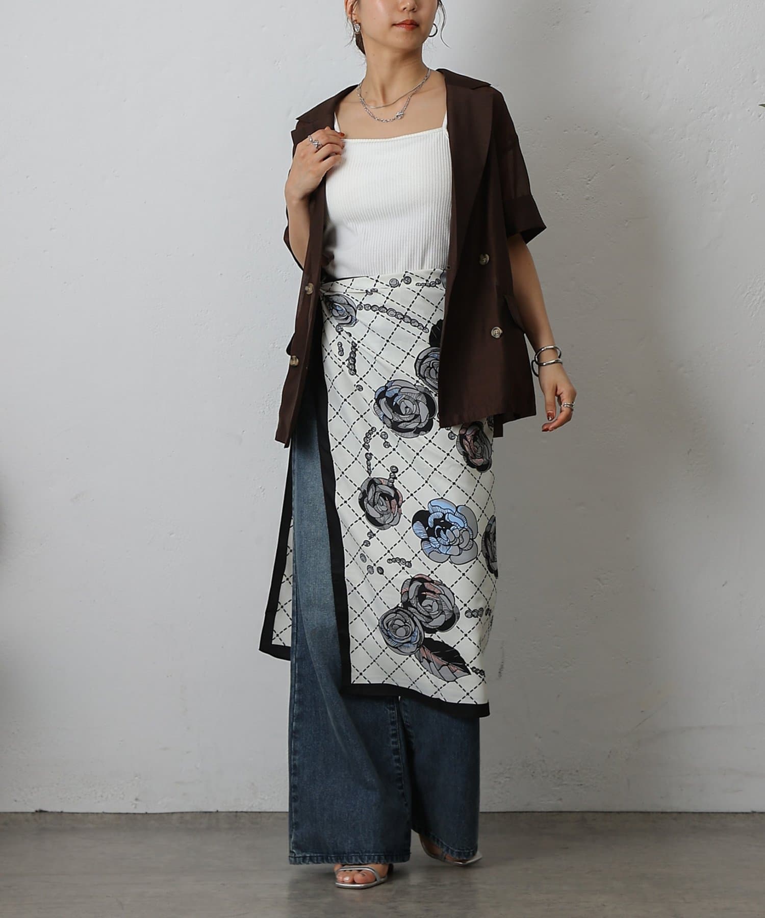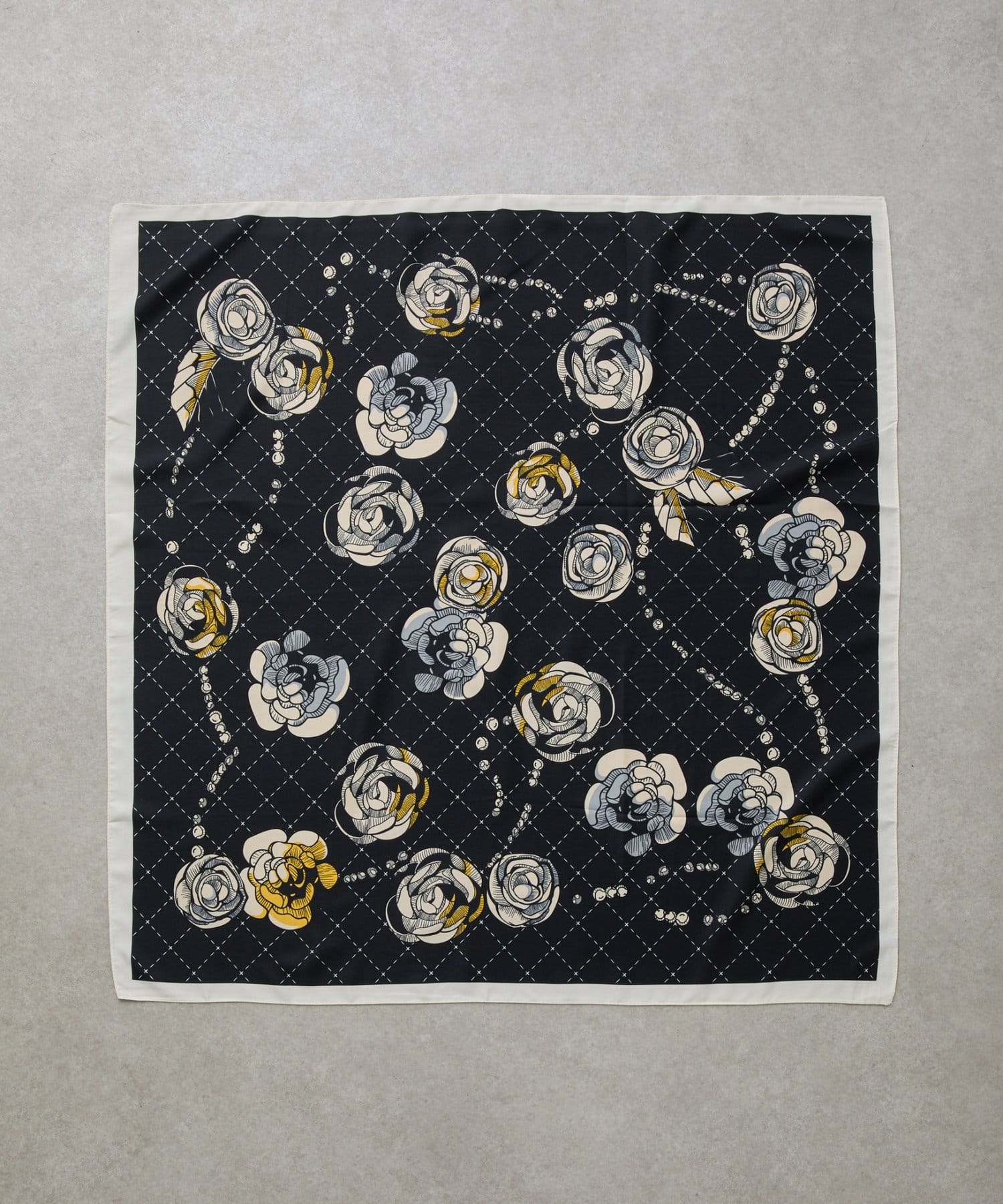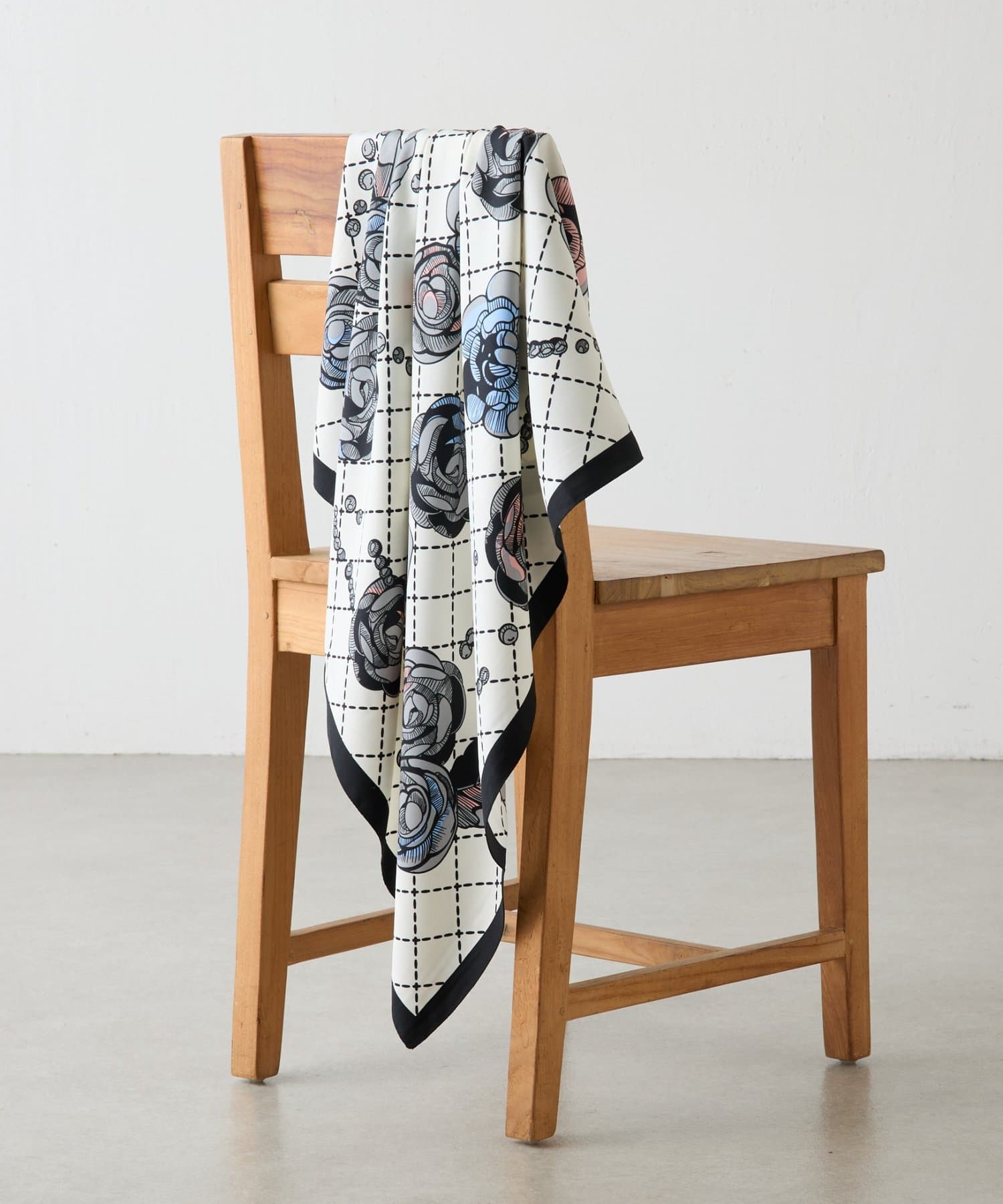 シックなモノトーンを基調に、繊細なタッチで描かれたローズモチーフが印象的な大判スカーフ。モノトーンの色使いが、上品で洗練された雰囲気を演出します。普段のコーディネートにプラスするだけで、ワンランク上のスタイルが完成します。美しい光沢感となめらかな肌触りが特徴で、いつものスタイルに上品なエッセンスをプラス。大判サイズなので、アレンジは自由自在。首元にふんわりと巻けば、顔まわりを華やかに、そして小顔効果も期待できます。シンプルなニットやシャツに合わせるだけで、トレンド感のある着こなしに。また、ヘアアレンジや頭巾取り入れれば、一気にこなれ感がアップします。広げて肩に羽織れば、ストールとしても活躍。冷房対策や日焼け防止にもなり、一年を通して重宝すること間違いなしです。今季マストのスカーフを楽しめる1枚。