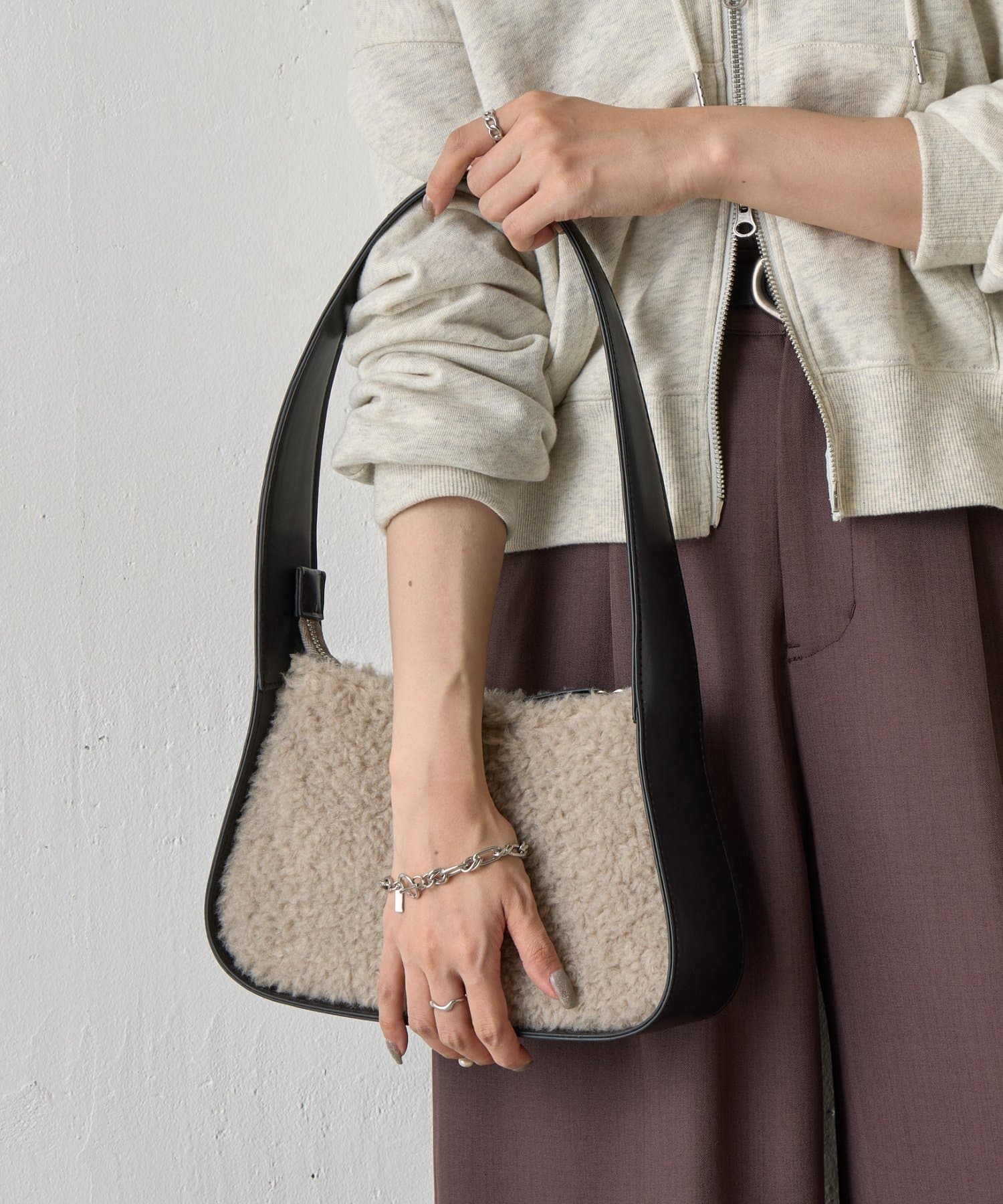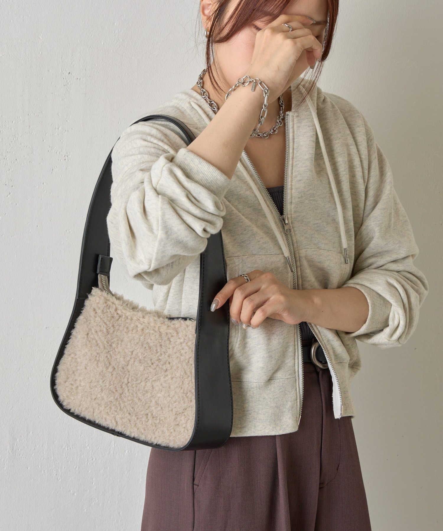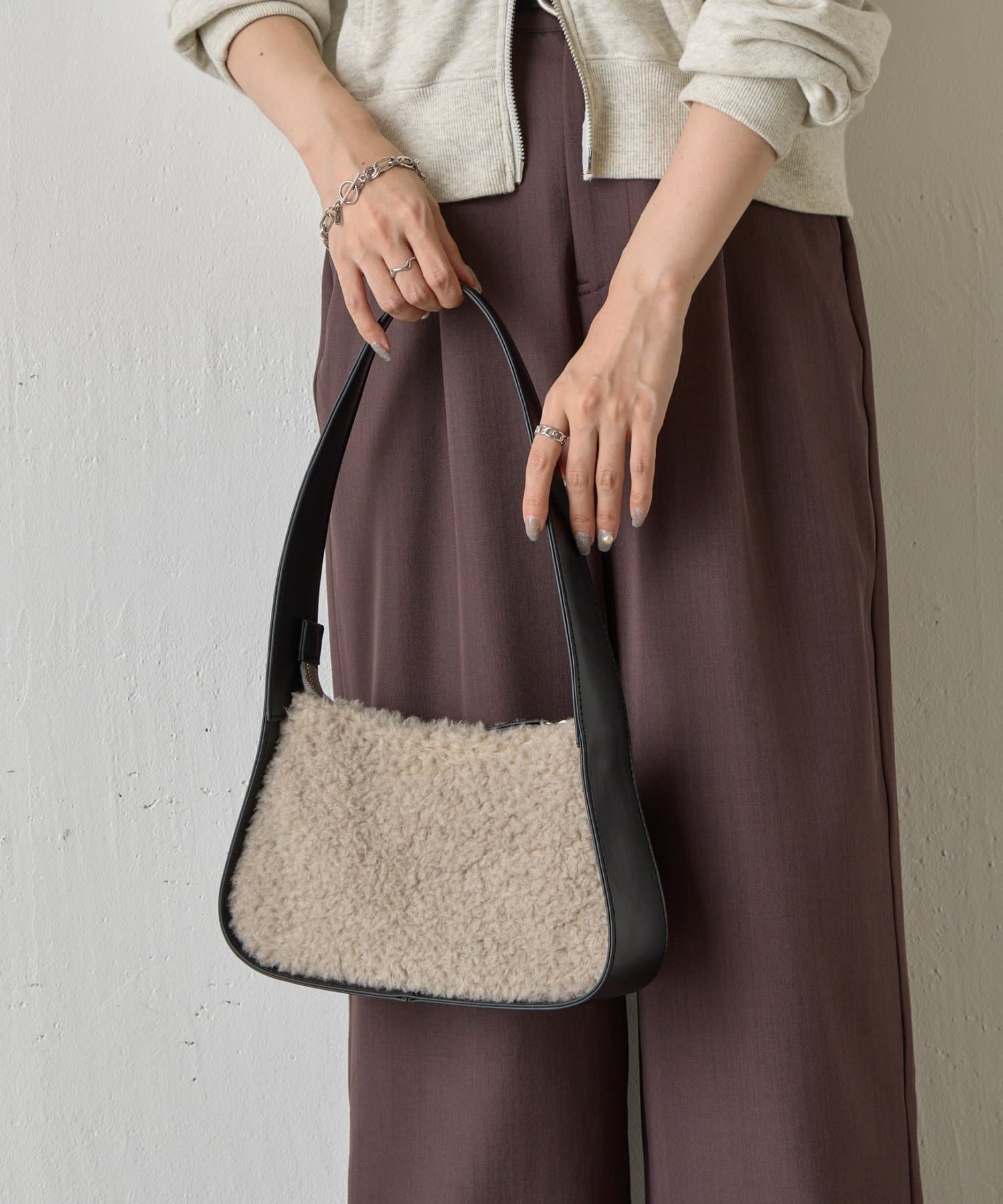 フェイクレザーとボアのコンビネーションが目を惹くボアハーフムーンバッグが登場。