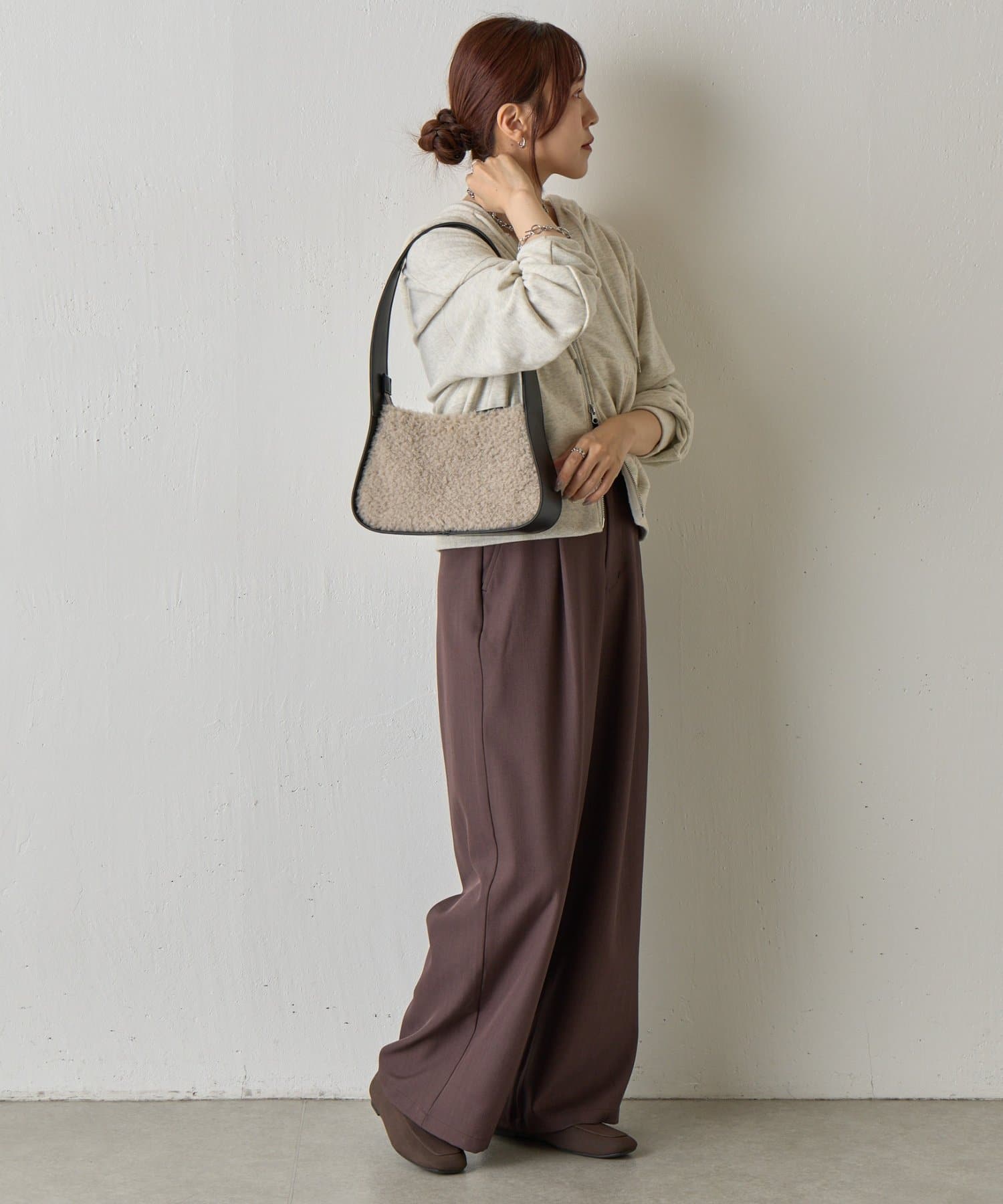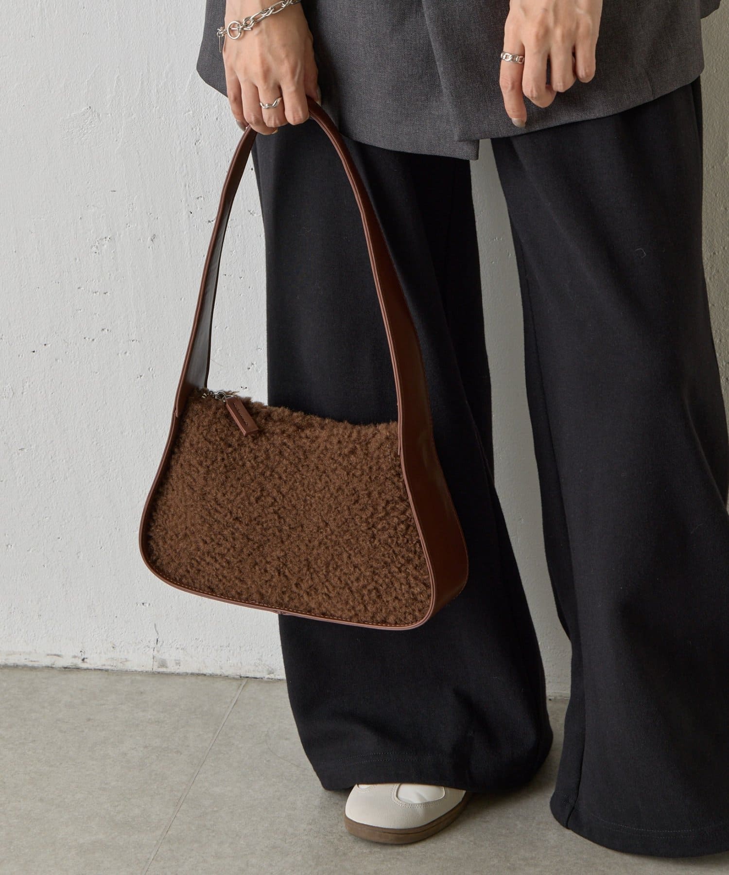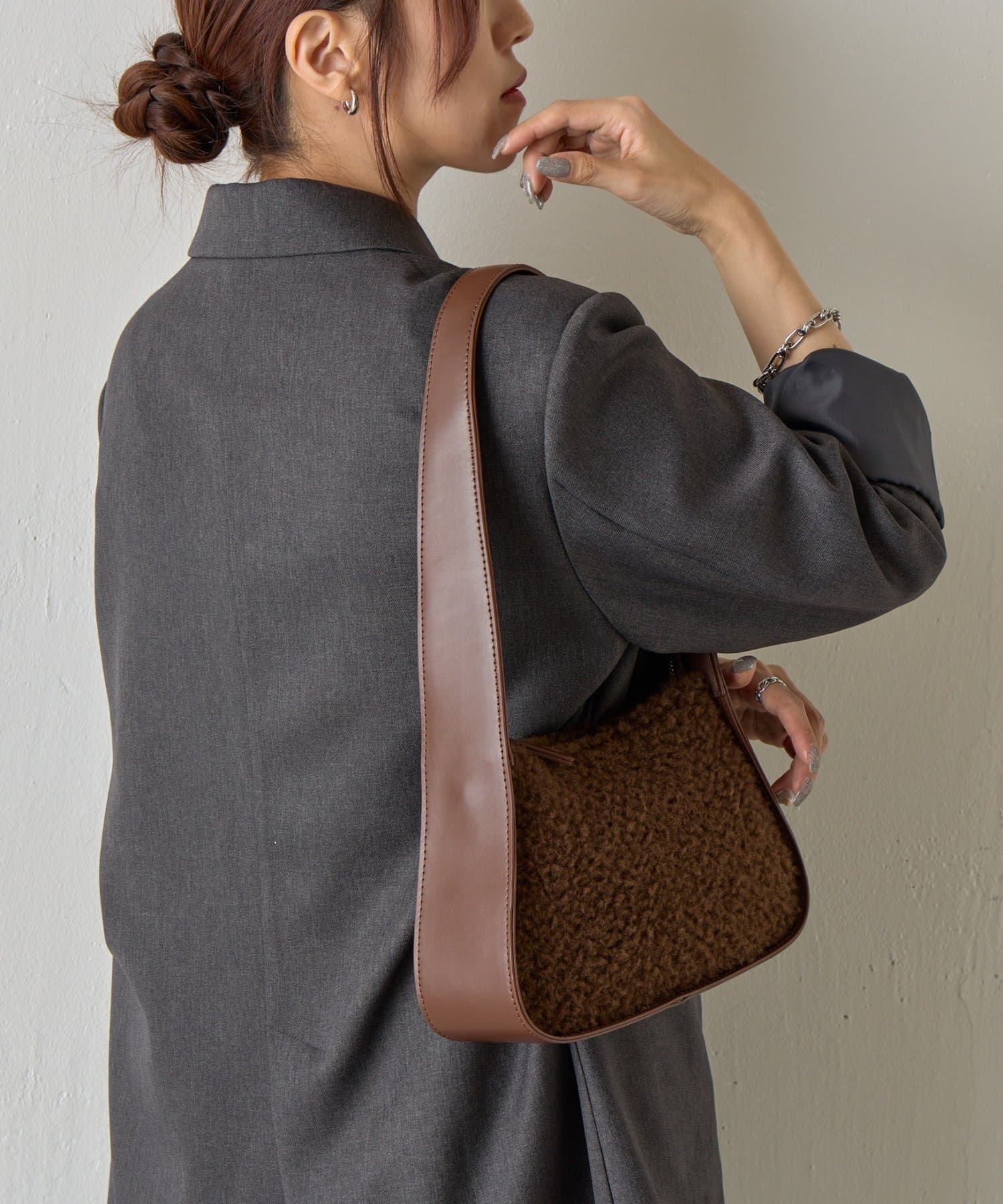 フェイクレザーとボアのコンビネーションが目を惹くボアハーフムーンバッグが登場。