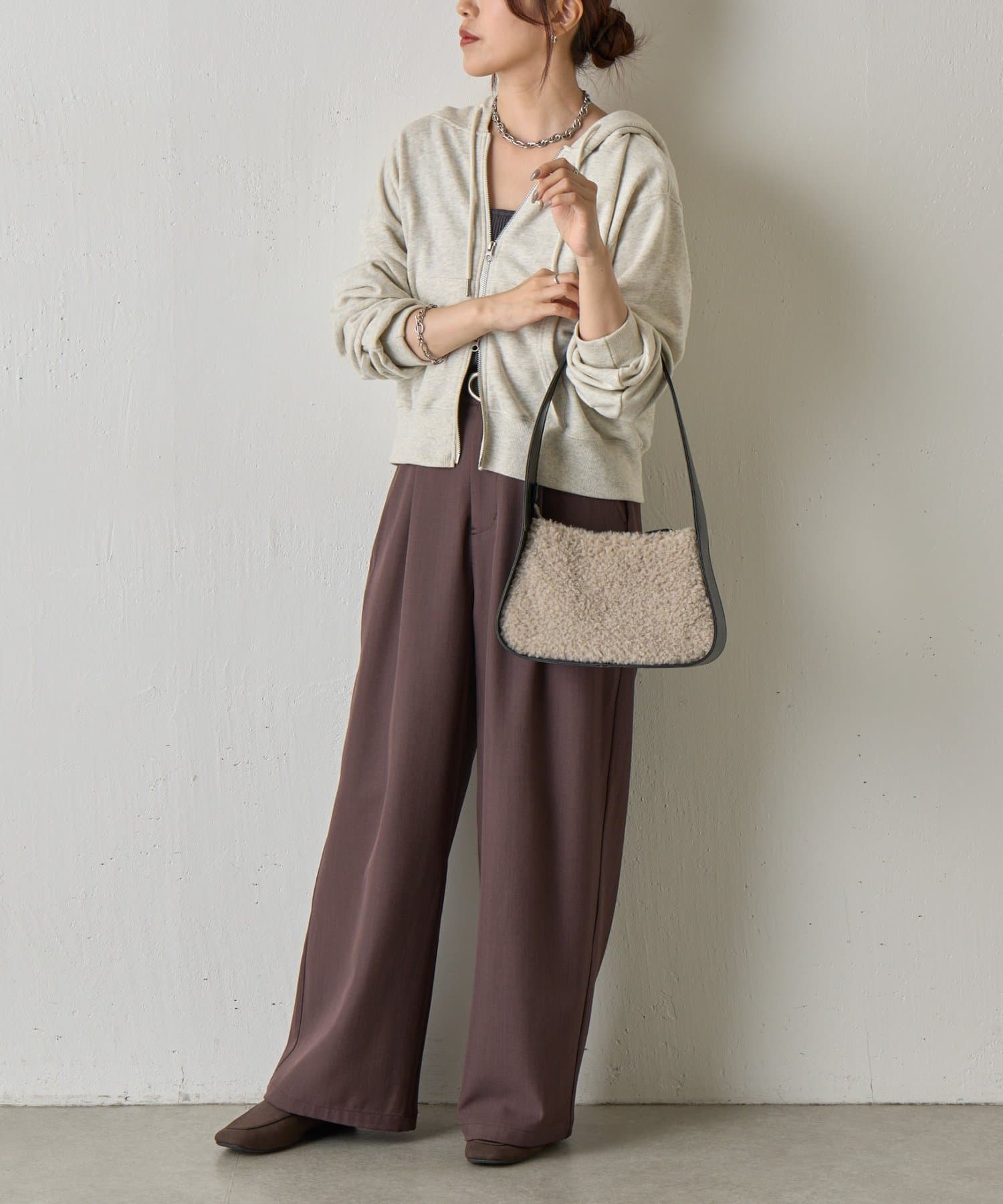 全体をピリッと引き締め、大人の女性にふさわしい洗練された雰囲気を演出してくれるのも嬉しいポイント◎休日のお出かけには、デニムやワンピースに合わせて、リラックス感のある大人カジュアルスタイルに、お仕事には、ジャケットやブラウスに合わせれば、程よい抜け感をプラスできます。シンプルなコーディネートにプラスするだけで、こなれ感のあるスタイルが完成。つい触りたくなるふわふわの質感は持つだけでシーズンムードを高めてくれる、コーディネートの主役級な1点。