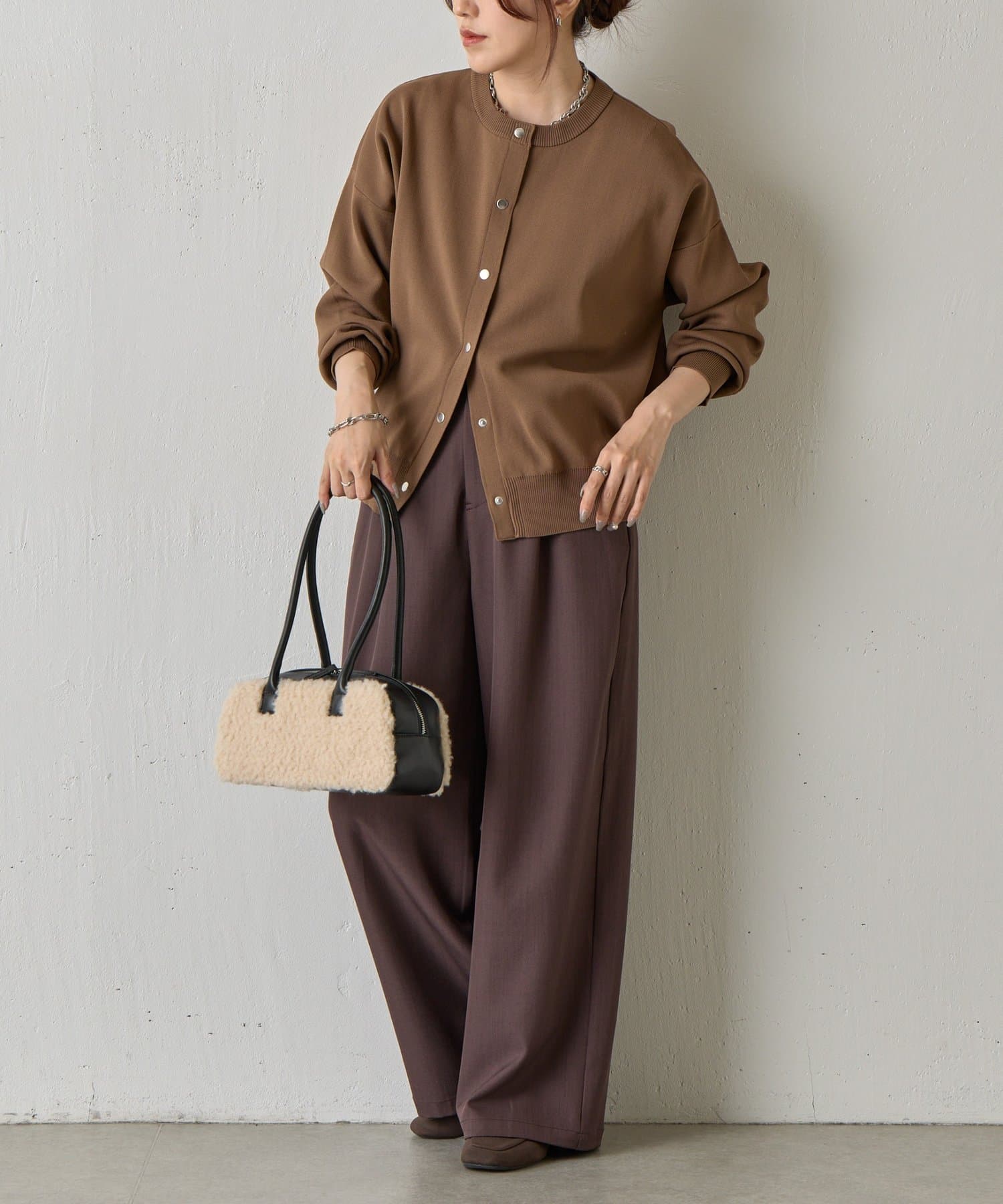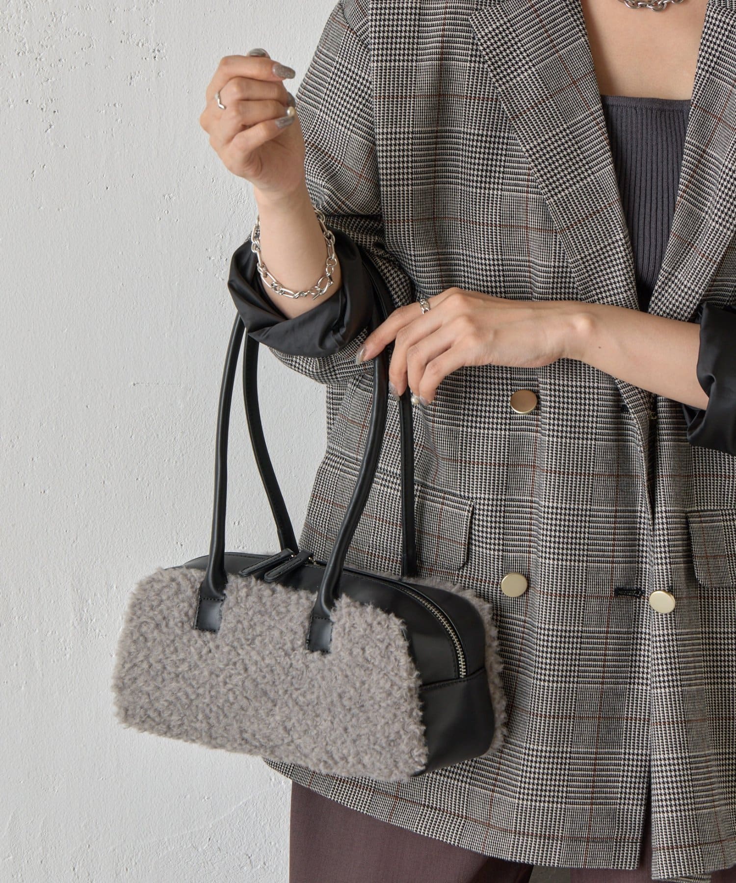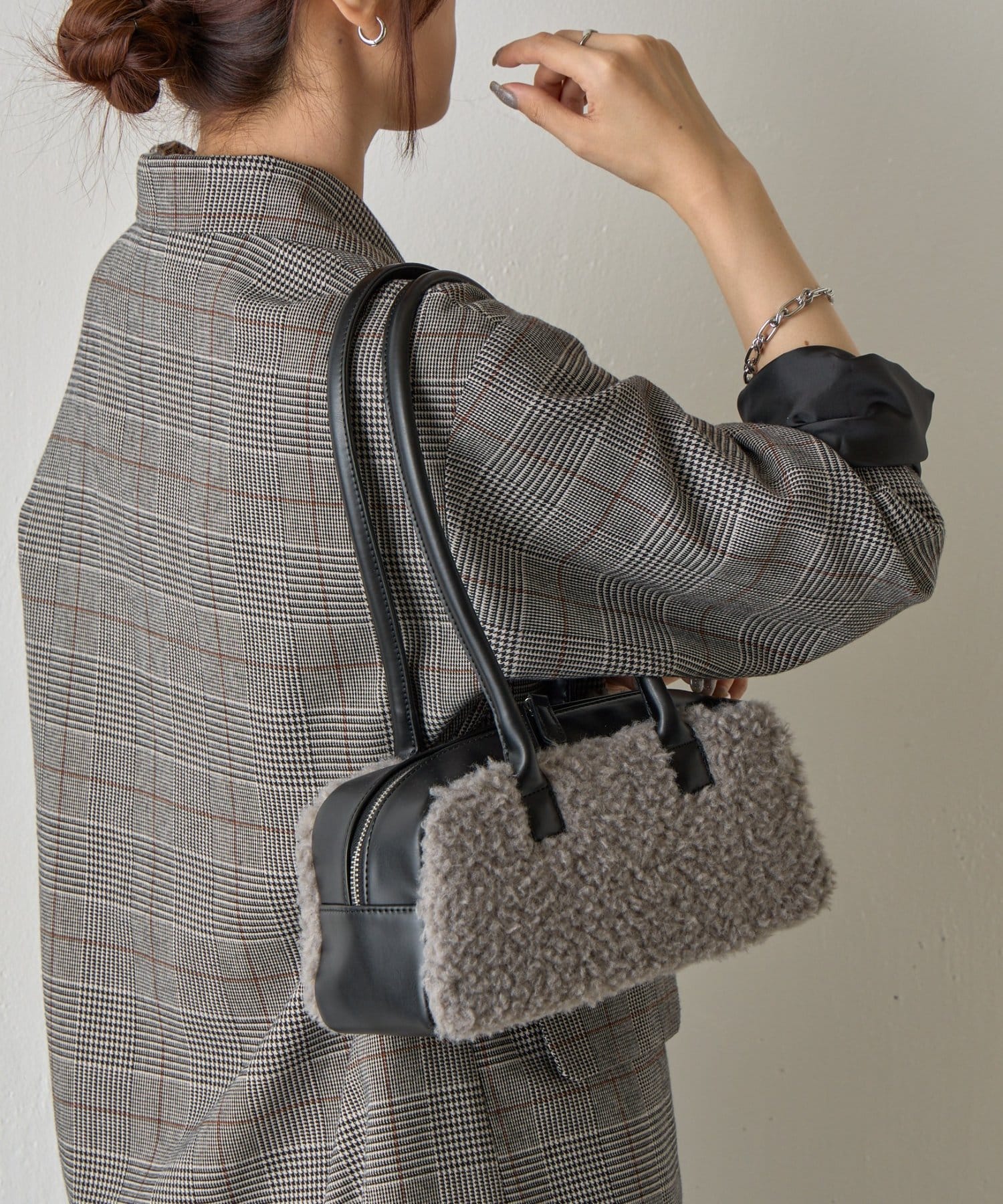 両面のふわふわのボア素材が可愛らしく、コーディネートのアクセントに。