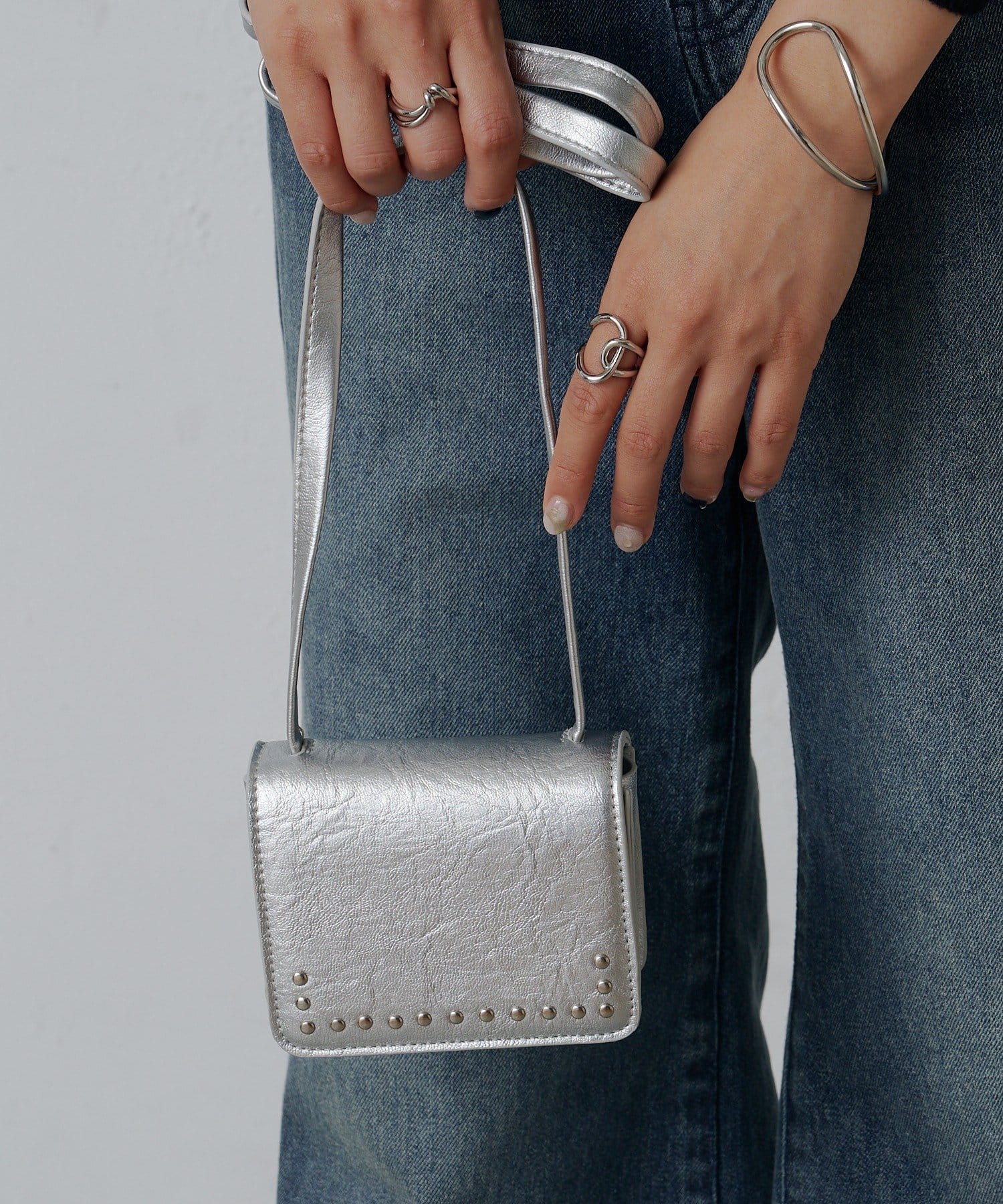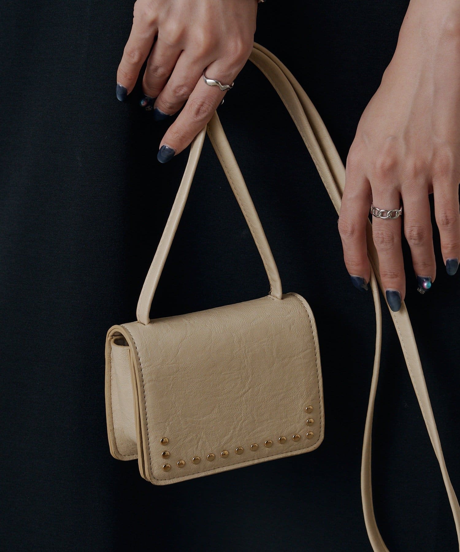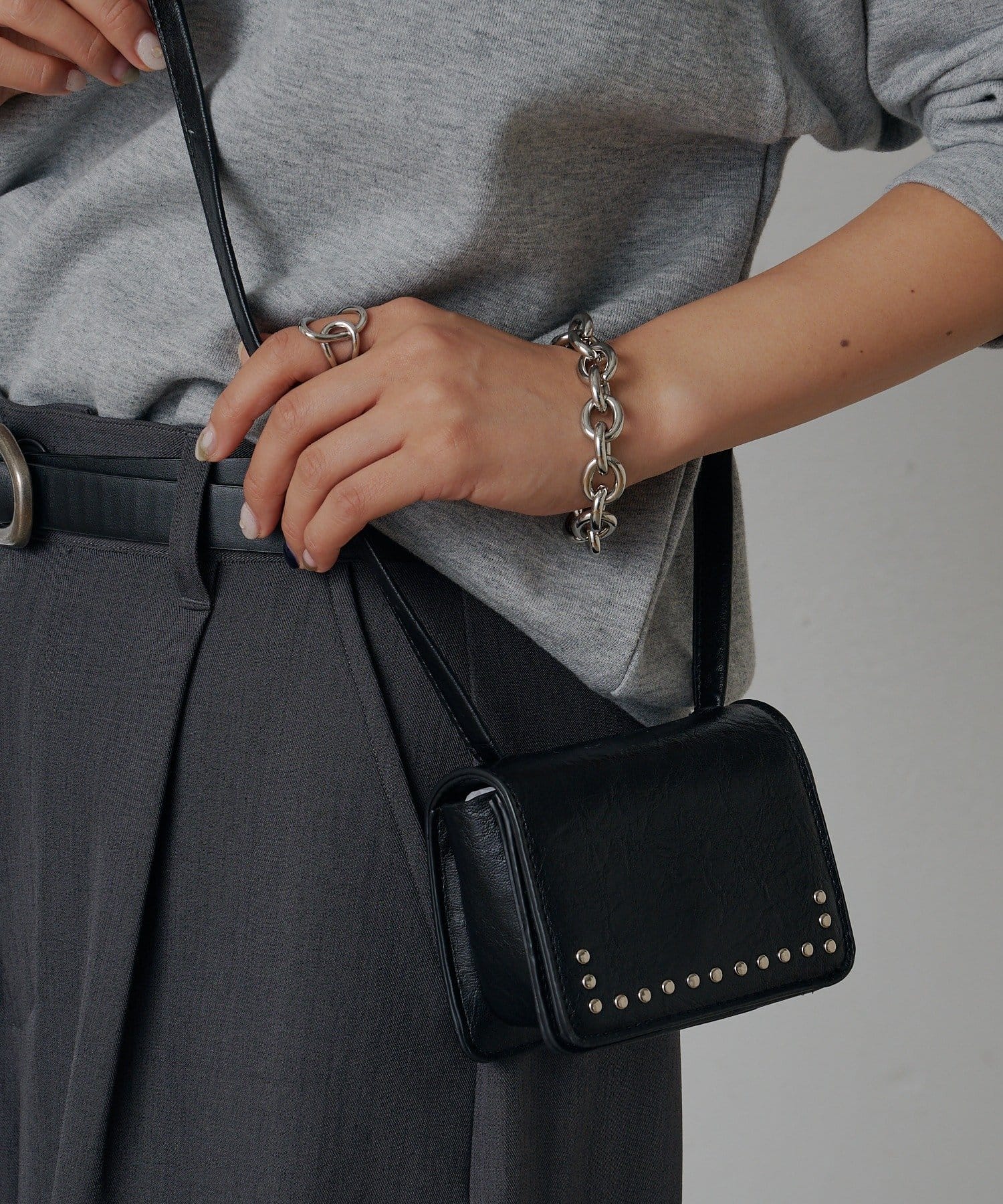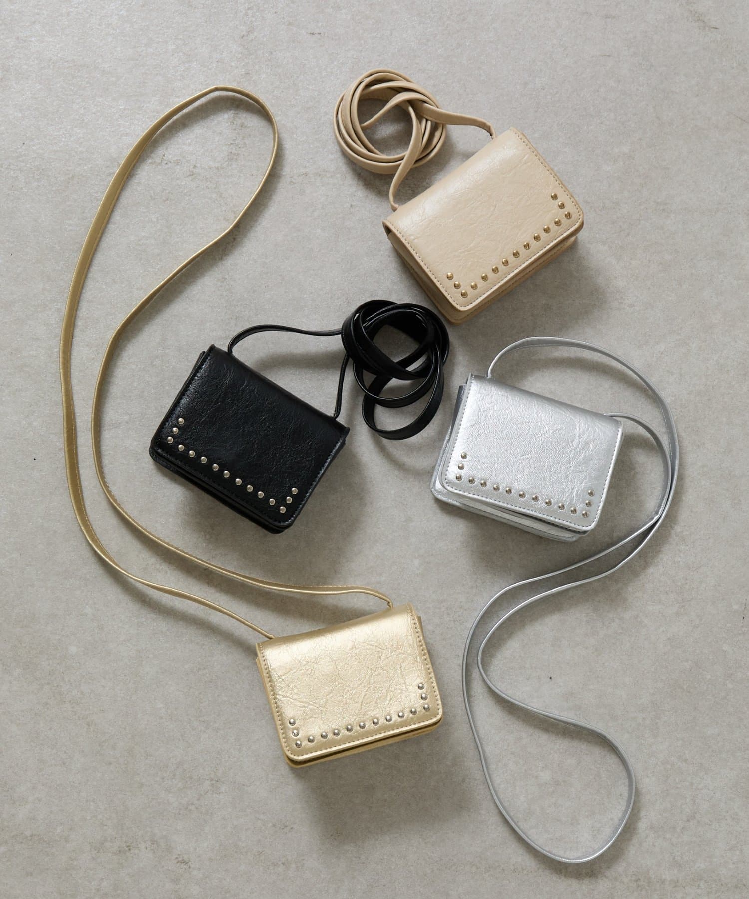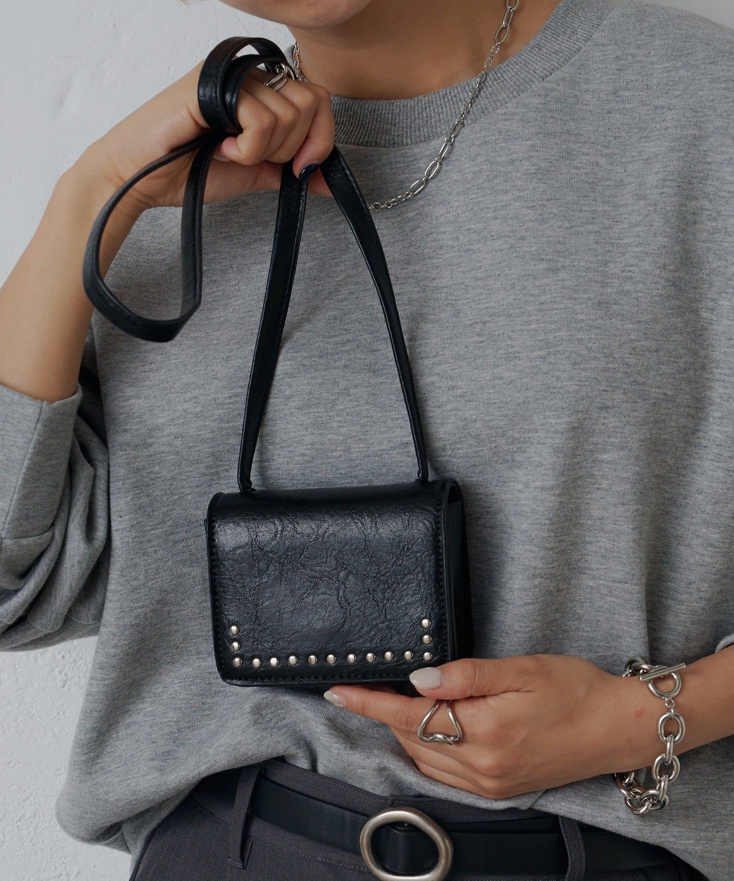 コンパクトなサイズ感にシルバーのスタッズがアクセントになったミニショルダーです。