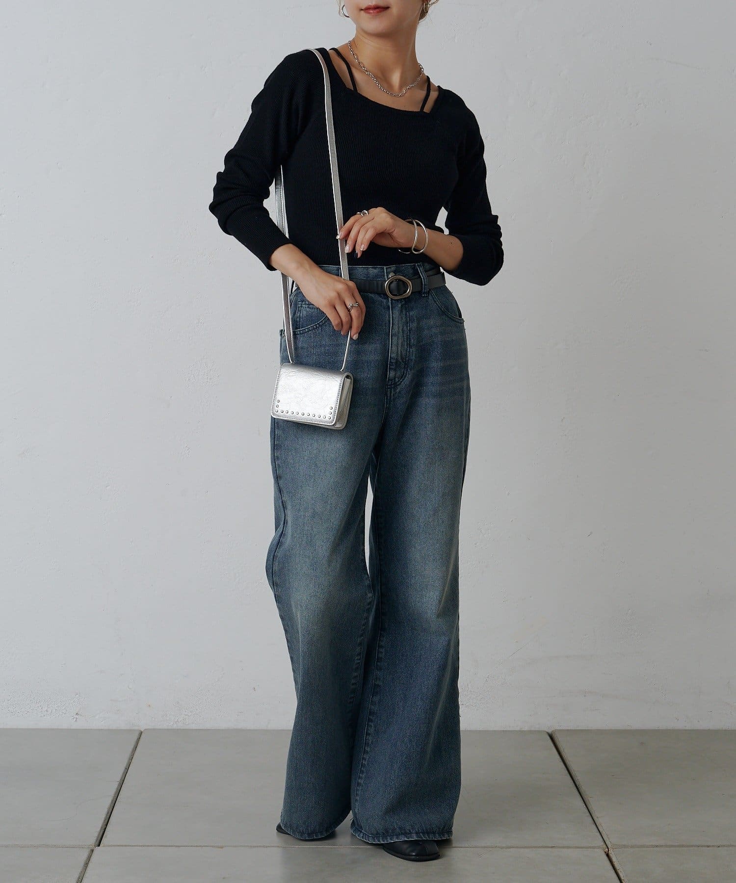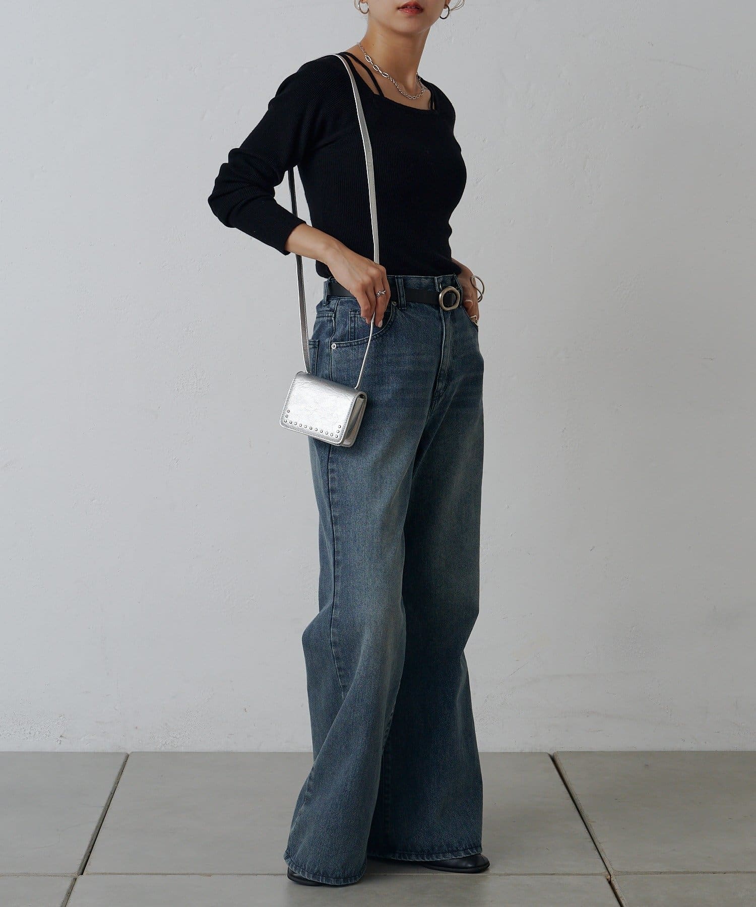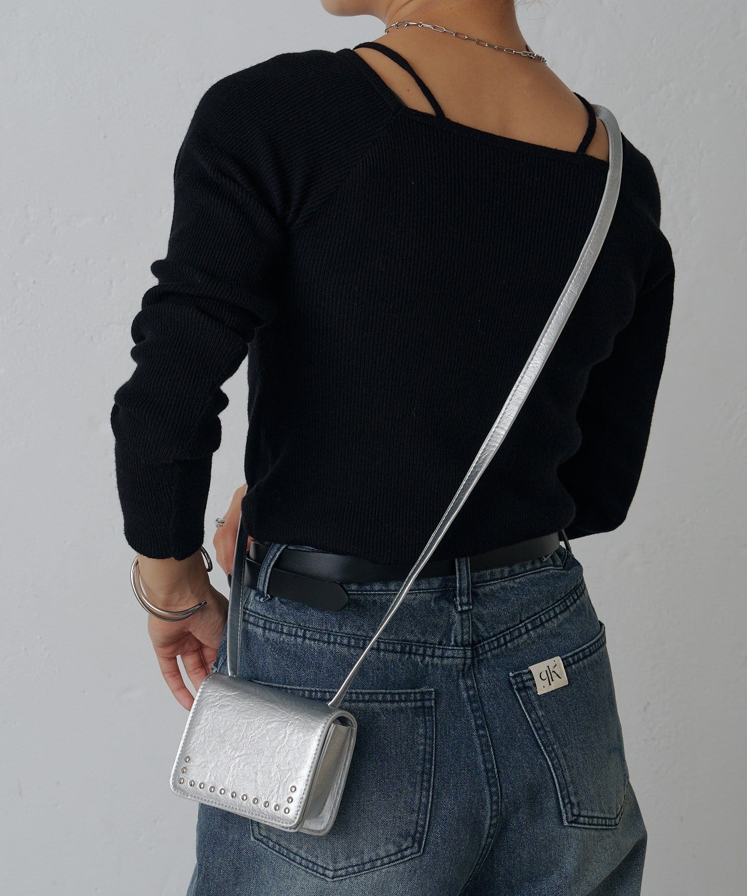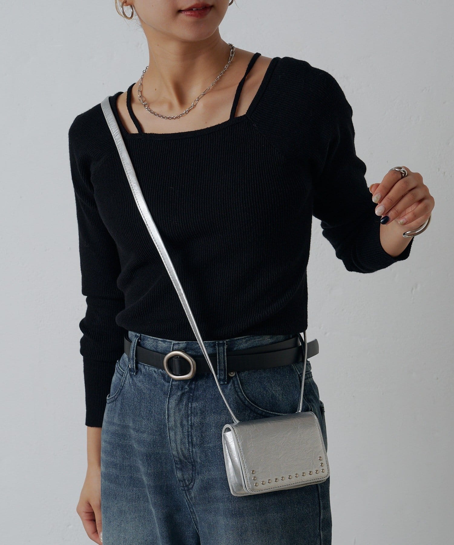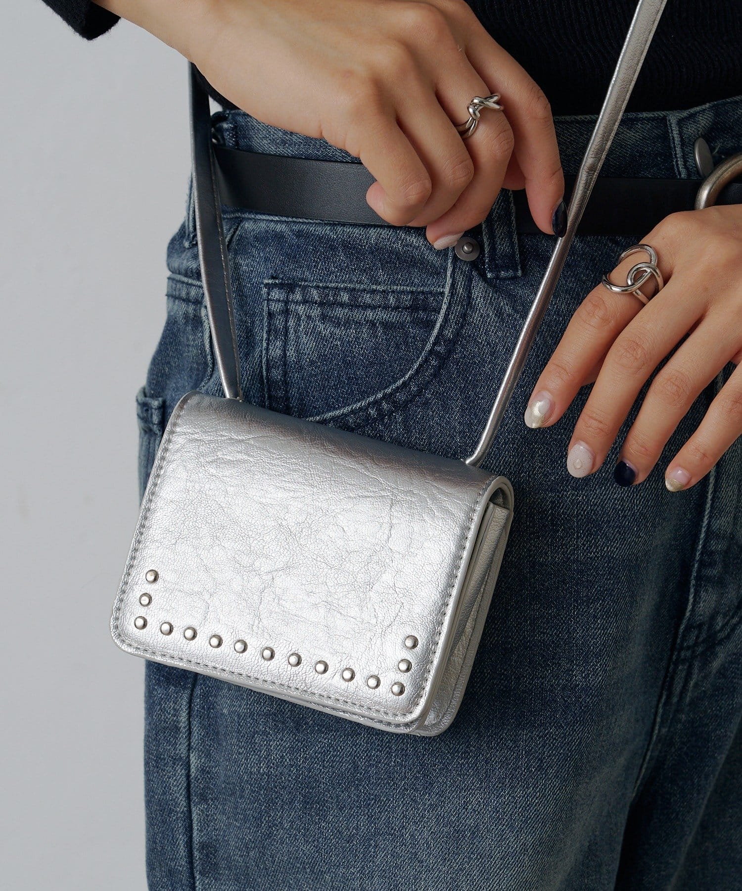 コンパクトなサイズ感にシルバーのスタッズがアクセントになったミニショルダーです。