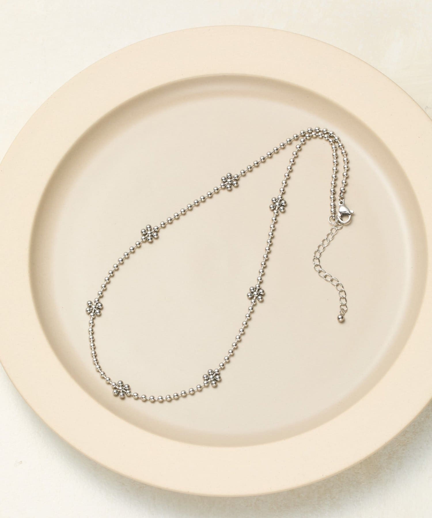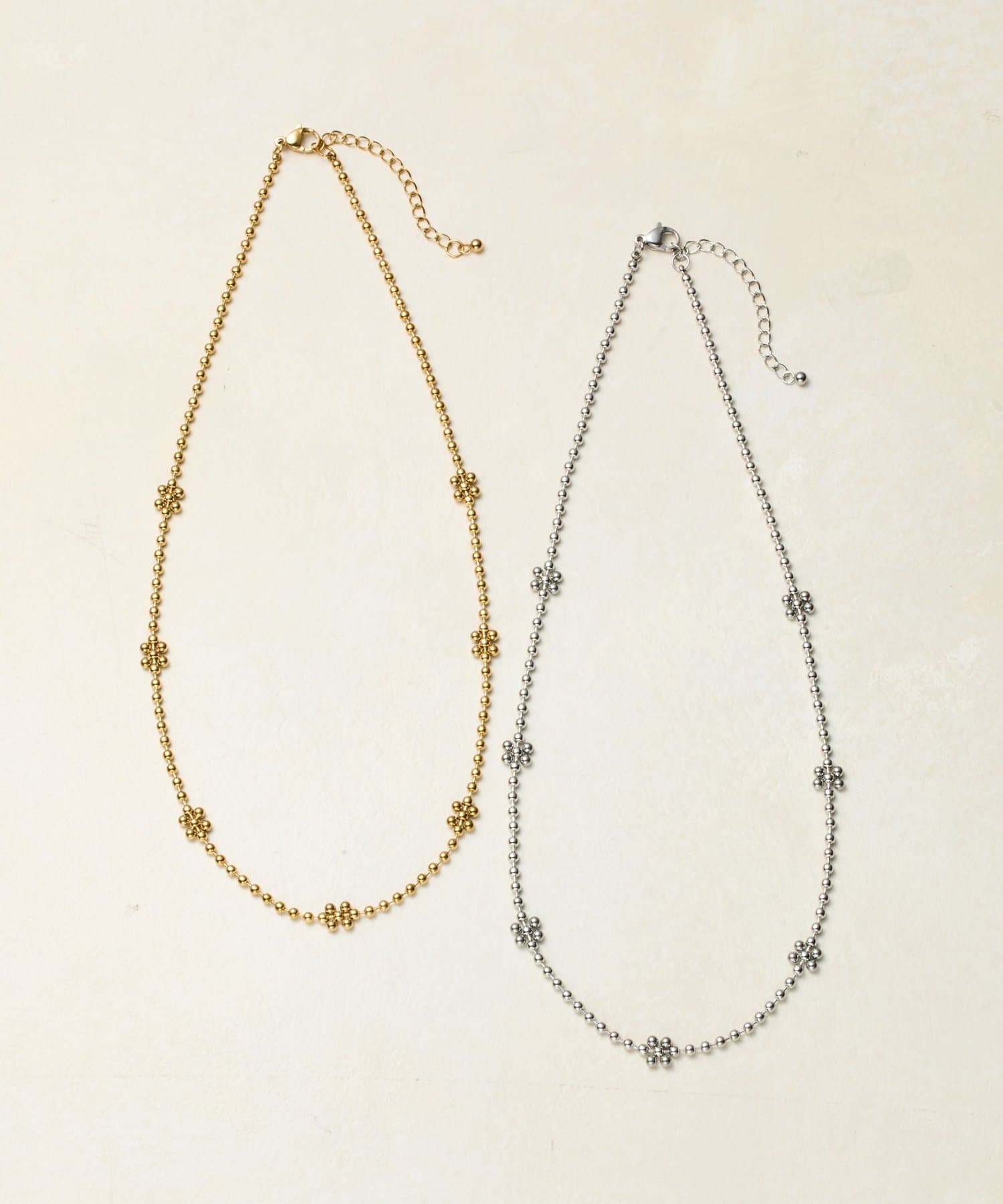 華奢なフラワーのように見えるボールチェーンネックレスは、どんなファッションにも合わせやすく、1本は持っておきたいマストアイテム。