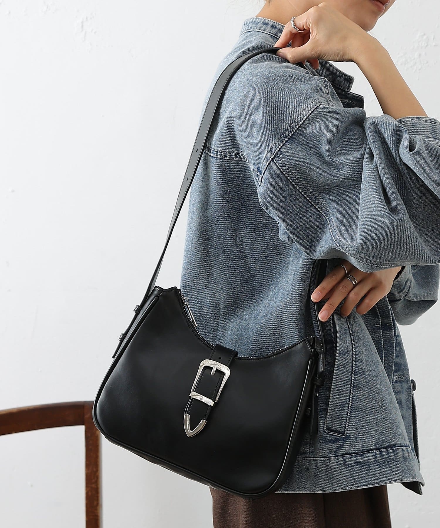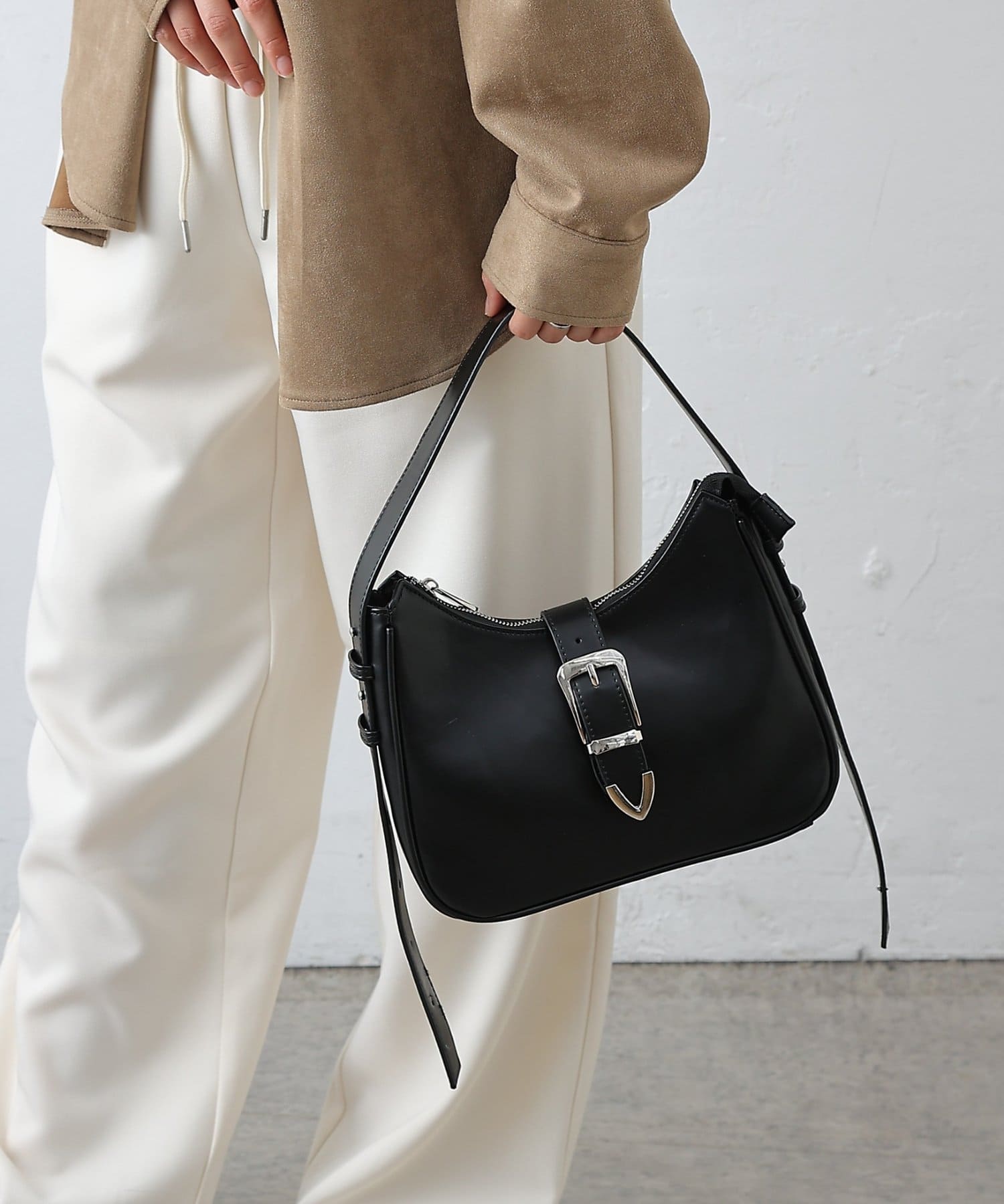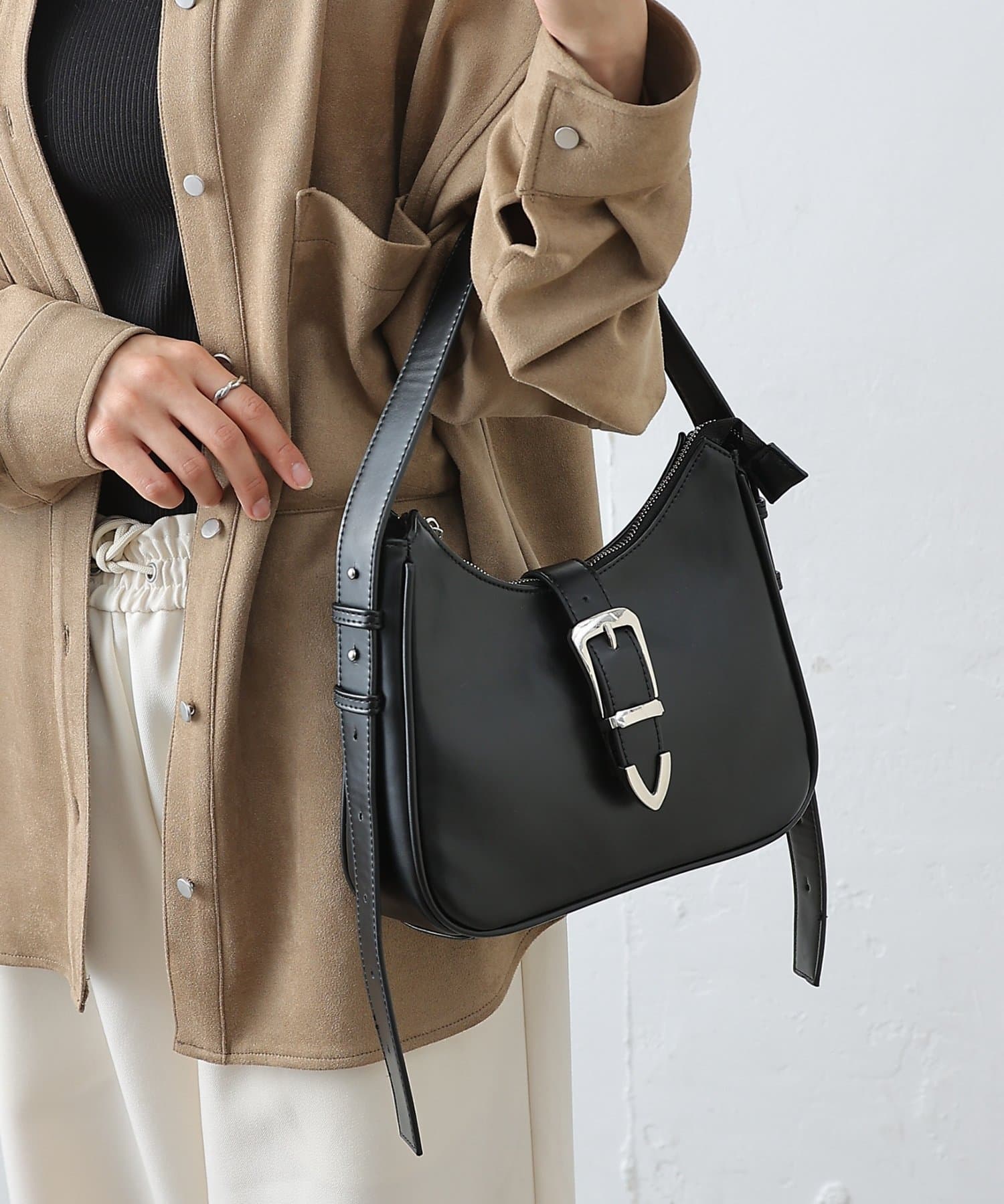 日々のスタイリングにエッジを効かせる、バックルベルトデザインのフェイクレザーバッグが登場。