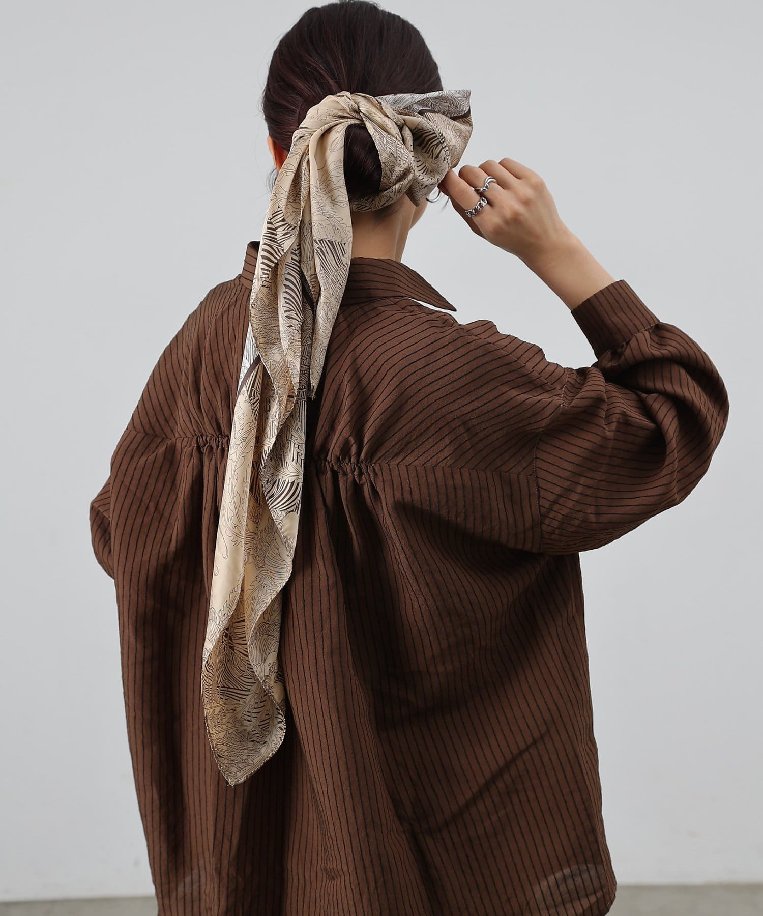 首元だけでなく、バッグに巻いてアクセントとして取り入れたり、ヘアアレンジとして頭に巻いたりと、幅広いアレンジを楽しめます。