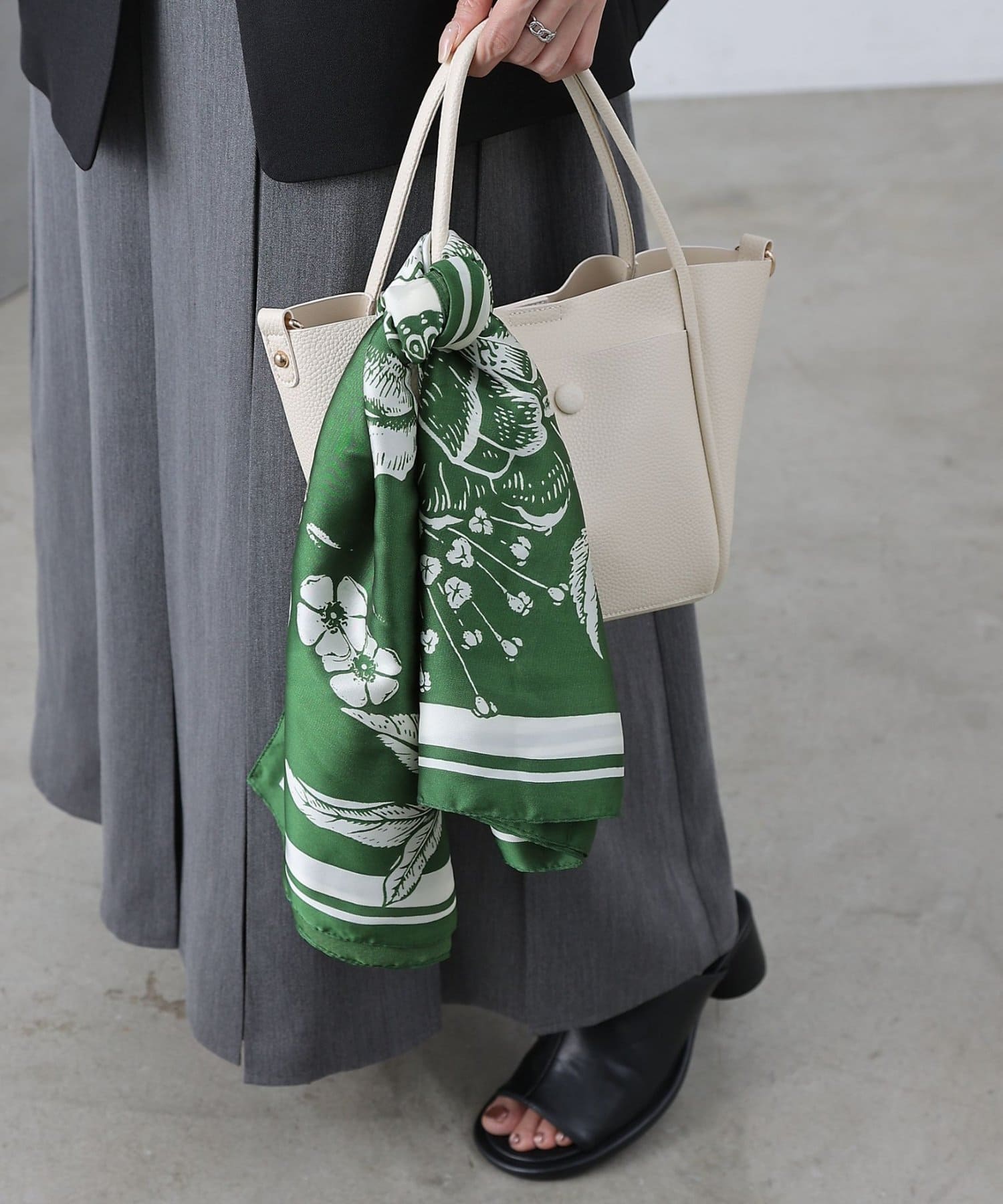 首元だけでなく、バッグに巻いてアクセントとして取り入れたり、ヘアアレンジとして頭に巻いたりと、幅広いアレンジを楽しめます。