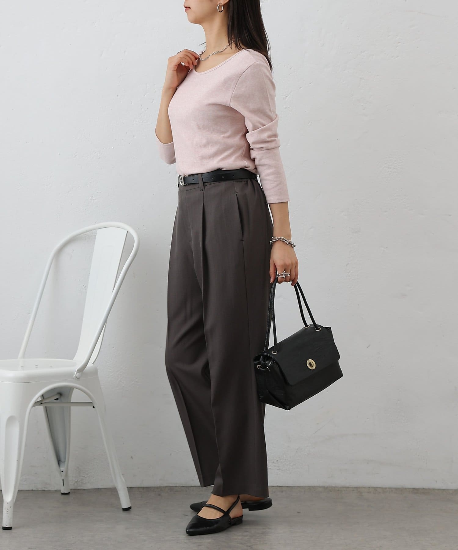 ツヤを抑えた素材感なのでコーデに自然に馴染みつつ上品さをプラスしてくれます。