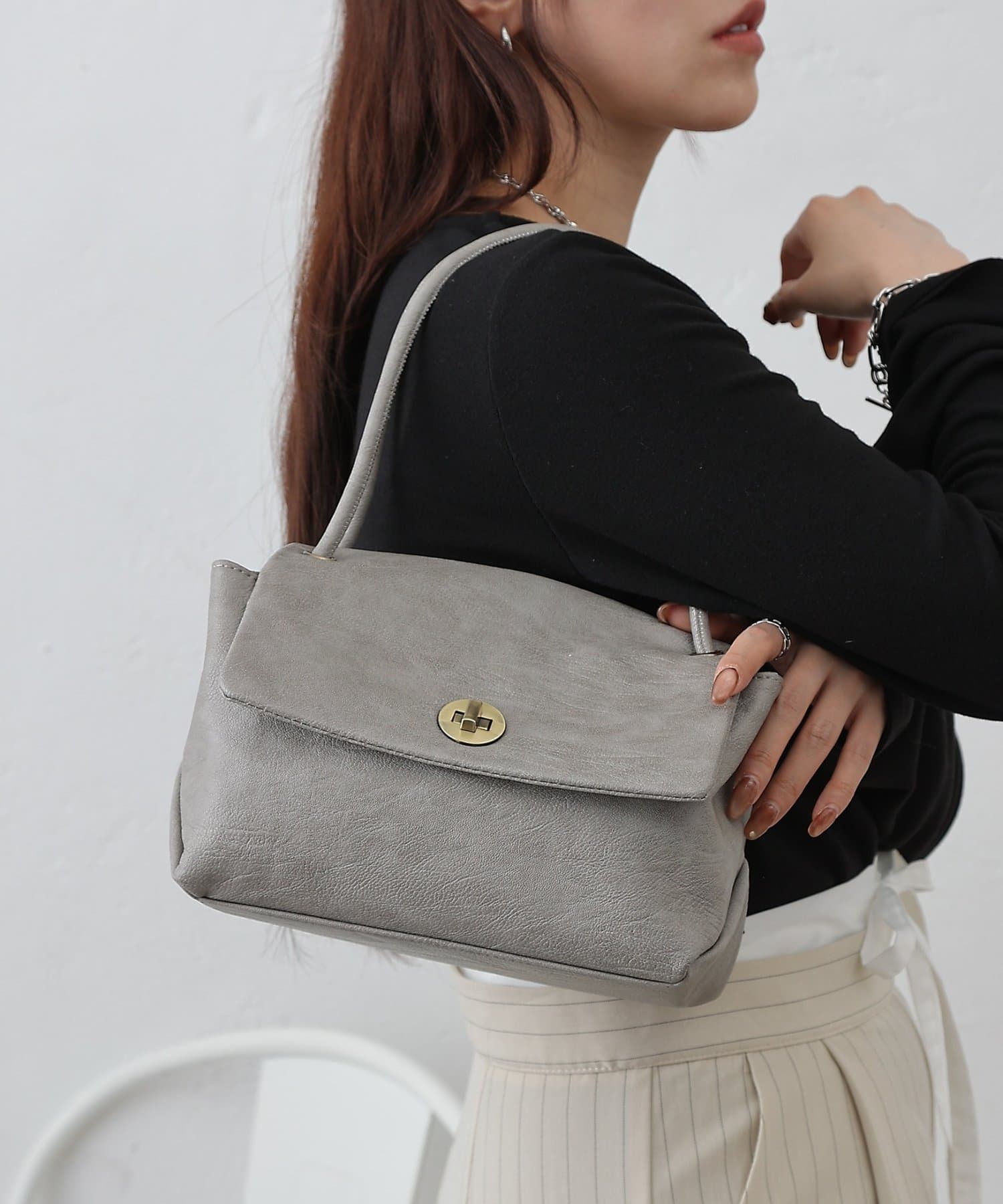 しっとりと柔らかい合皮の質感と、マットな見た目が魅力のフラップバッグ。