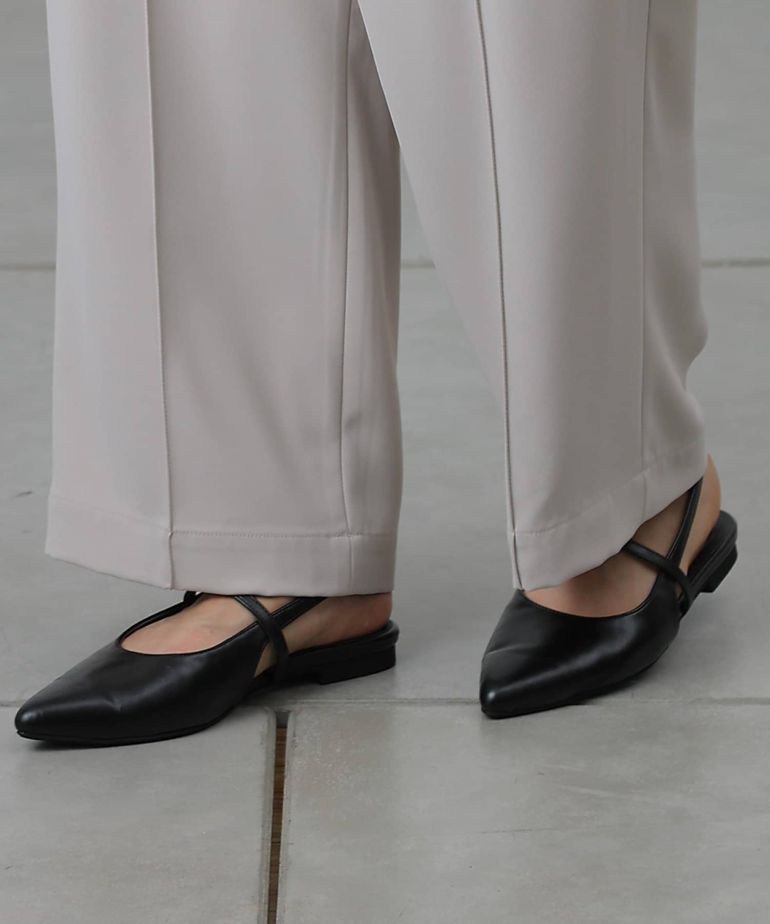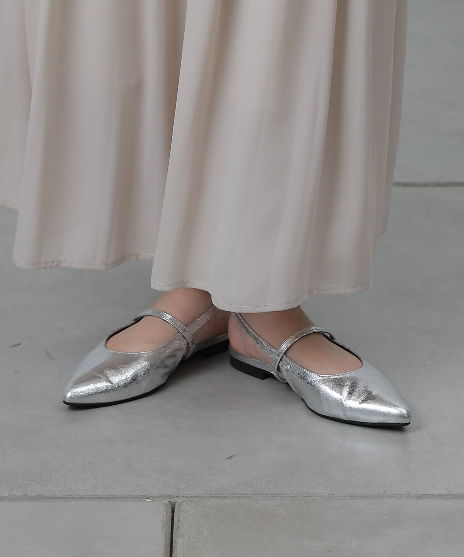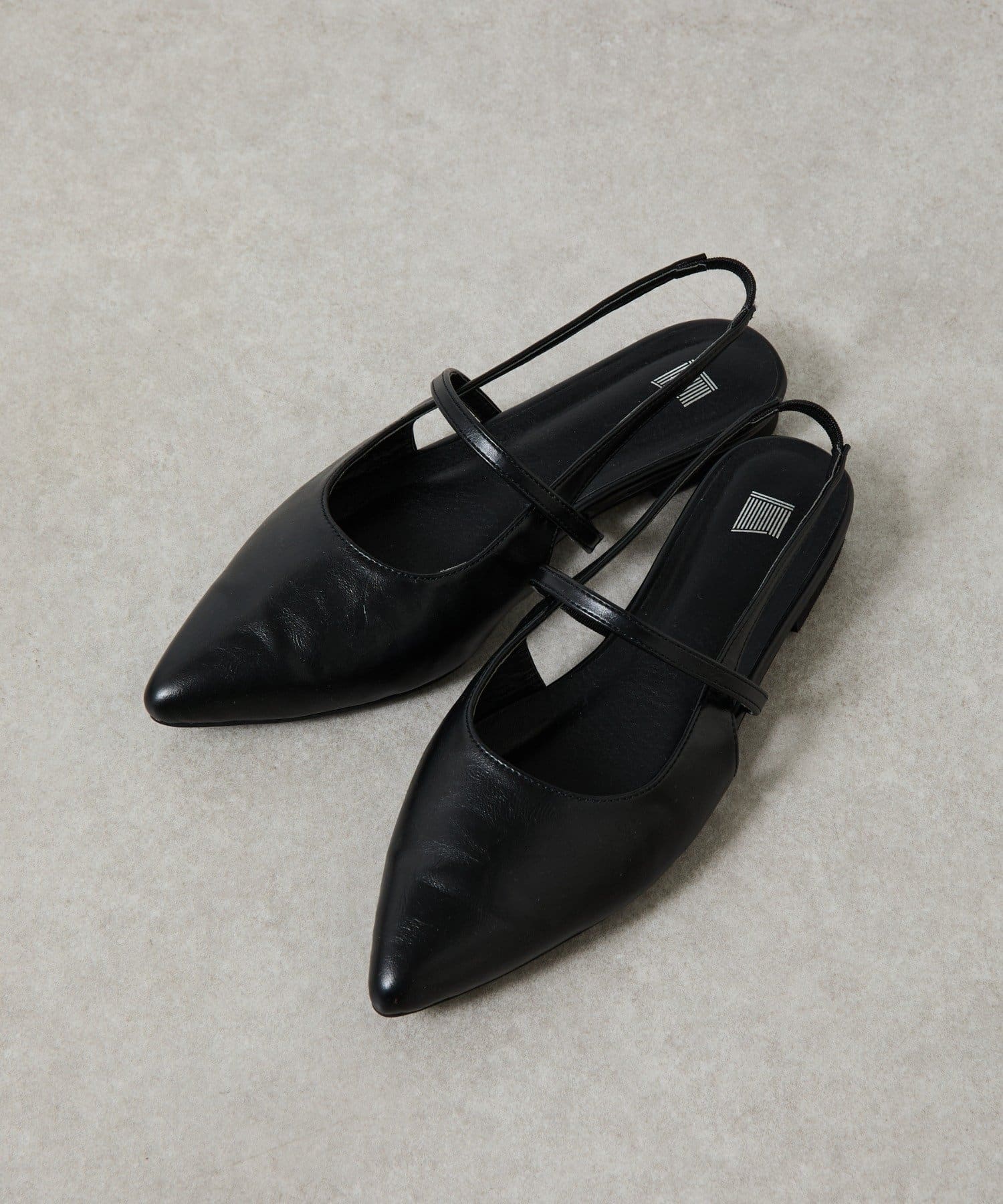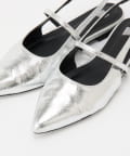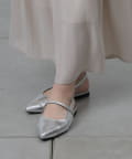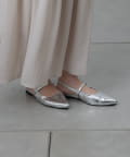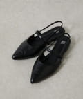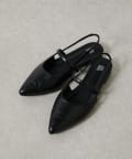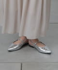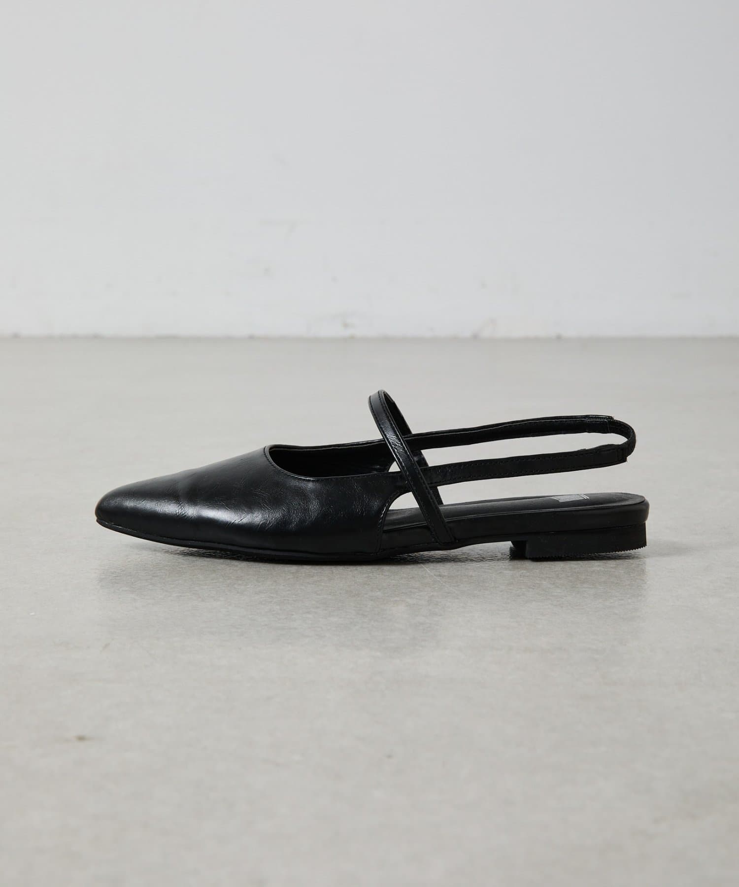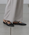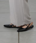 スッキリとした印象のポインテッドトゥのワンストラップミュール。