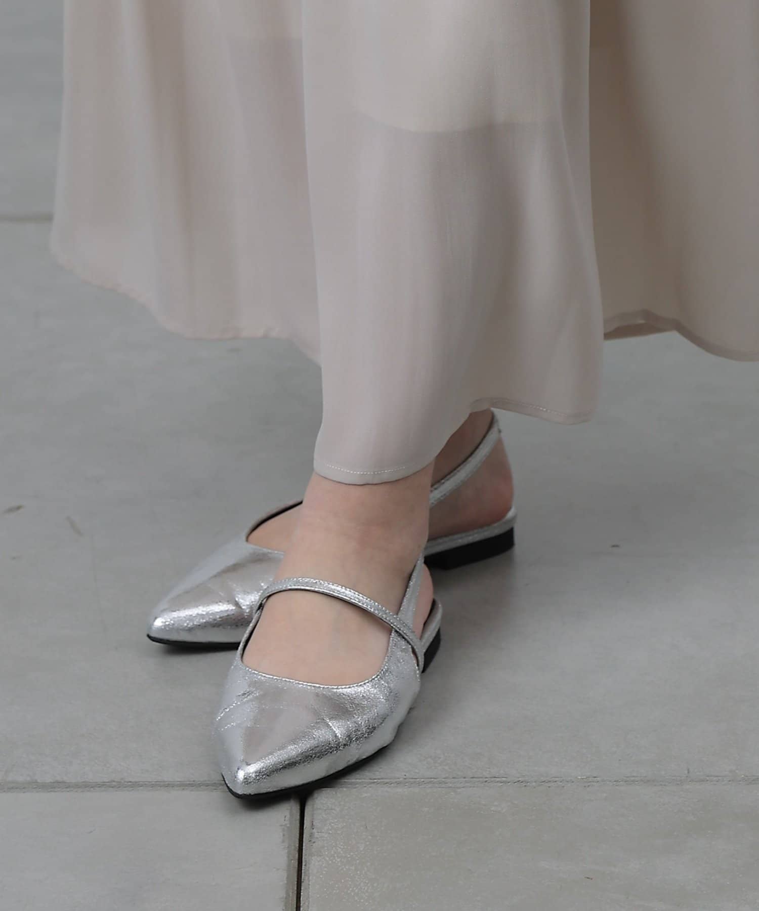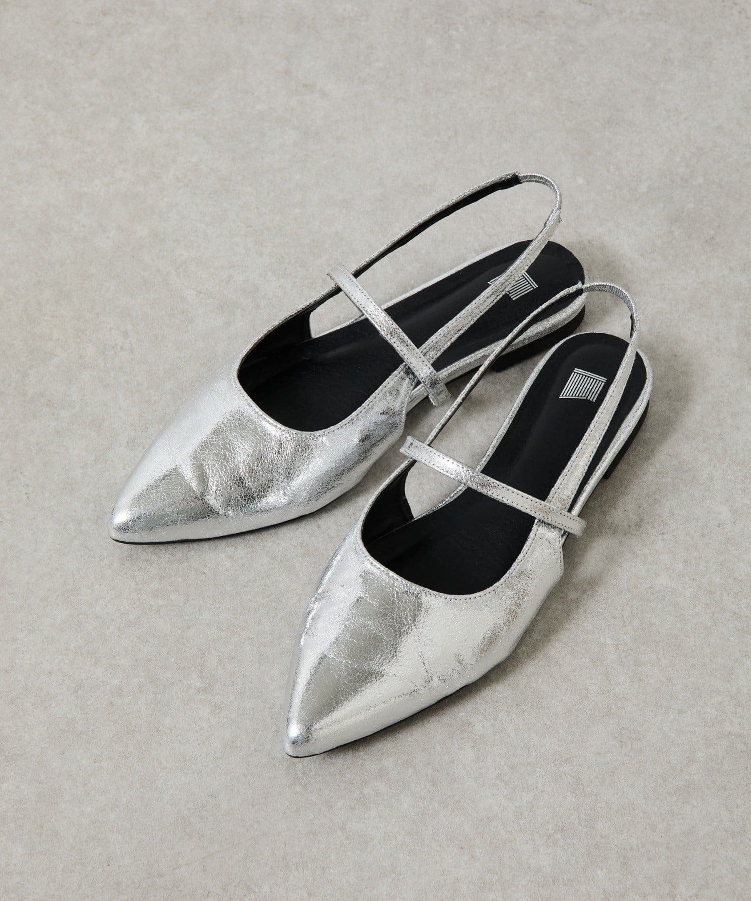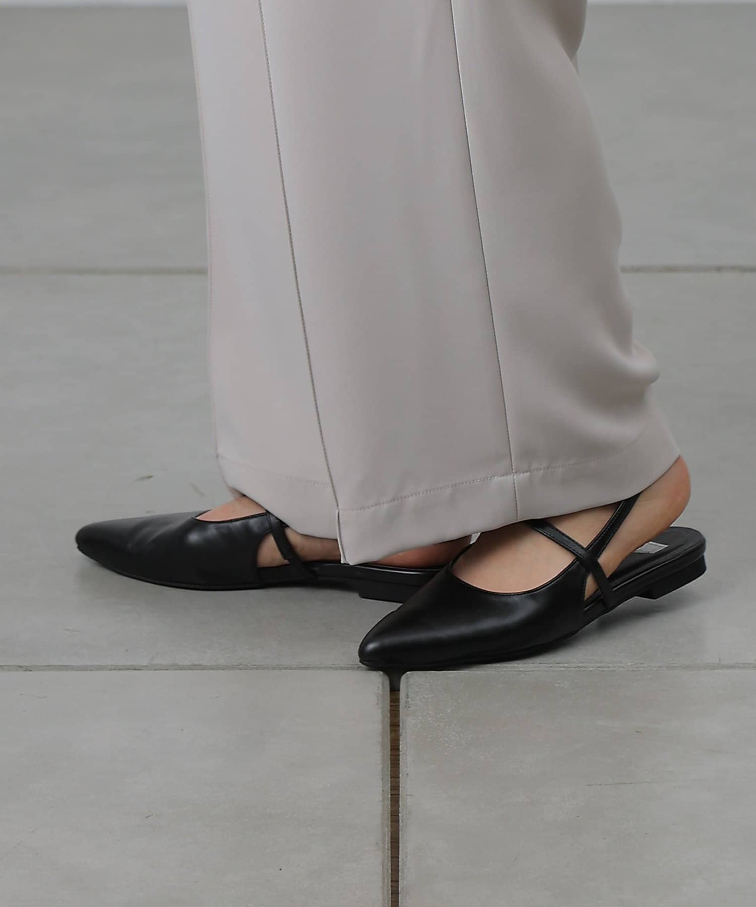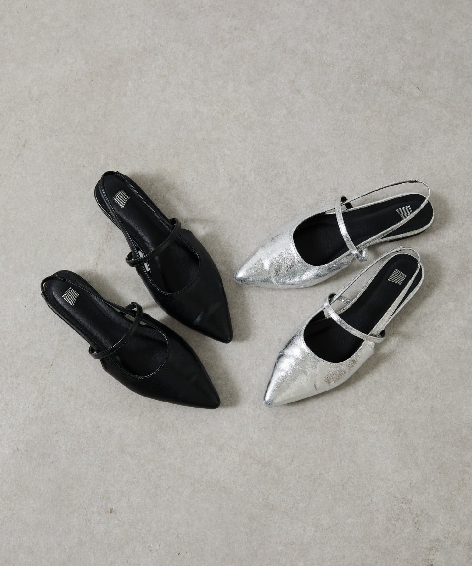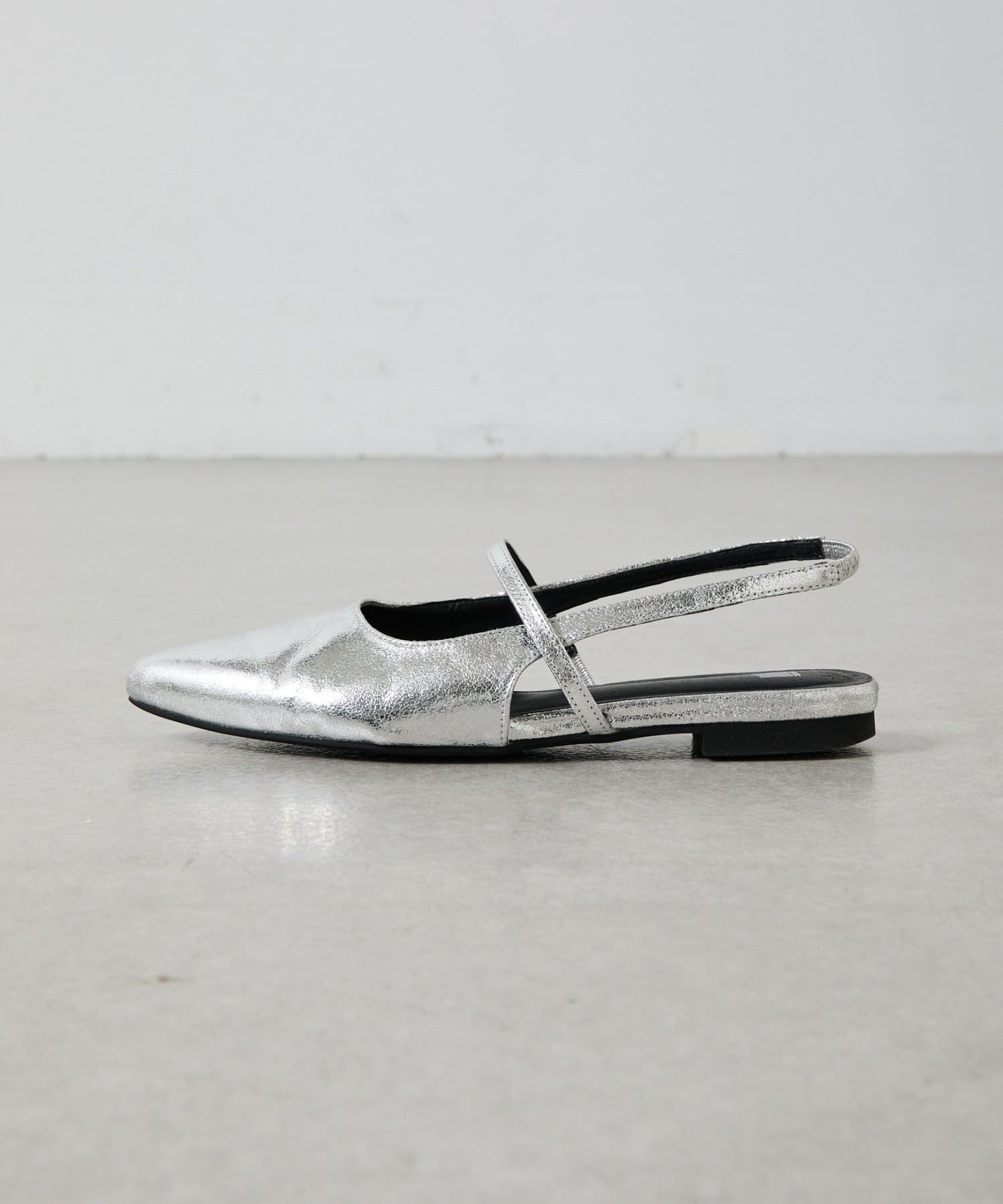 スッキリとした印象のポインテッドトゥのワンストラップミュール。