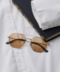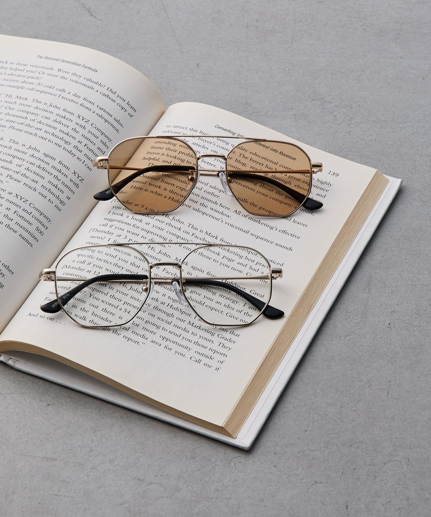 華奢なメタルフレームと落ち着いたカラーレンズで、スタイリングに抜け感を演出◎