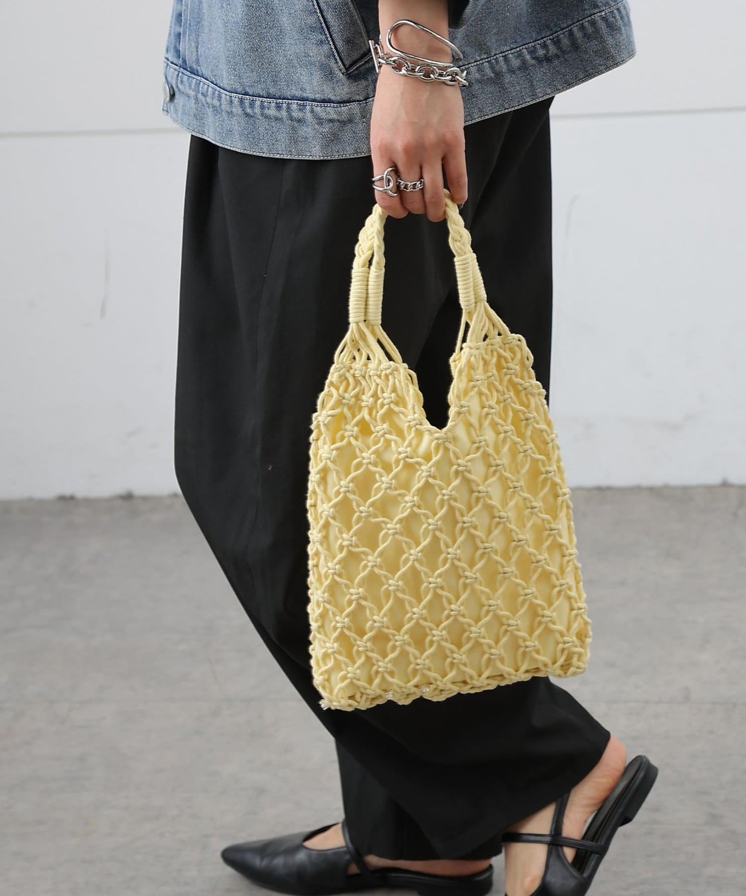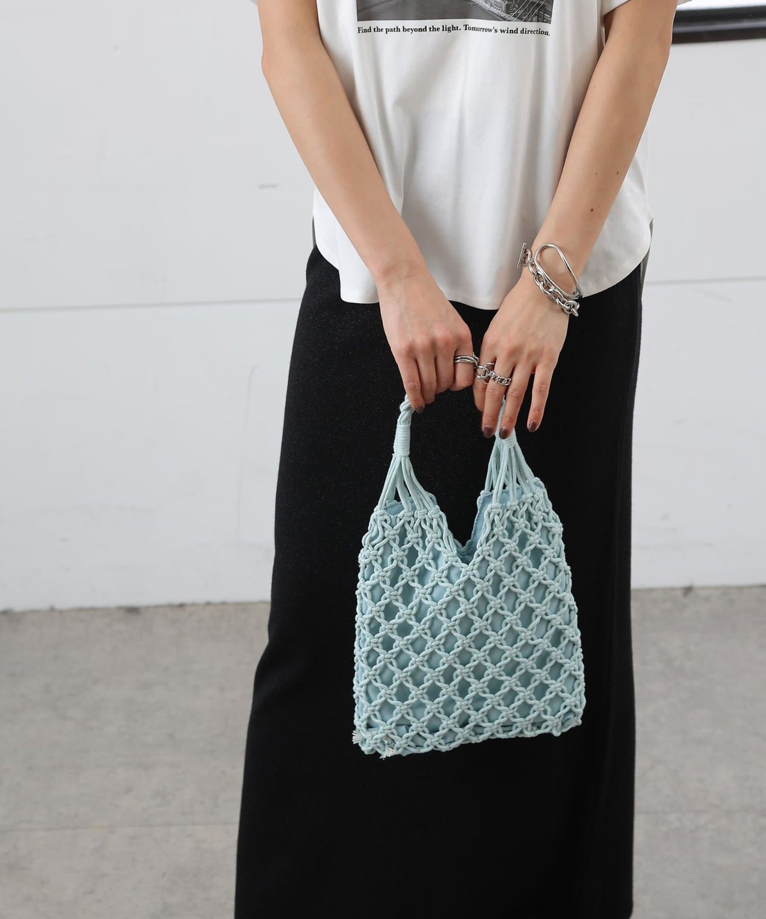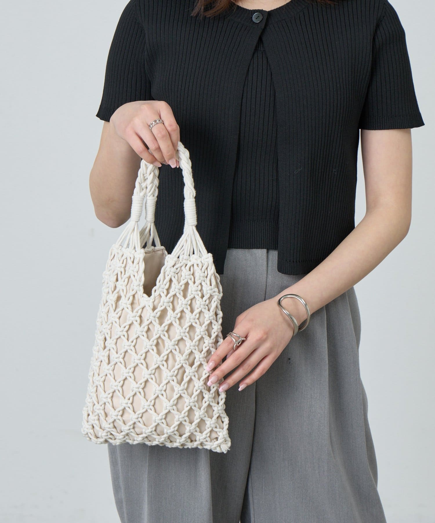 繊細に編み上げたデザインがコーディネートに抜け感をプラスし、持つだけでぐっと春夏らしいスタイリングに仕上がります。
