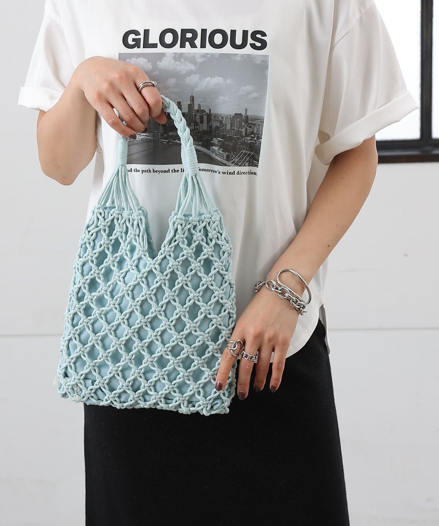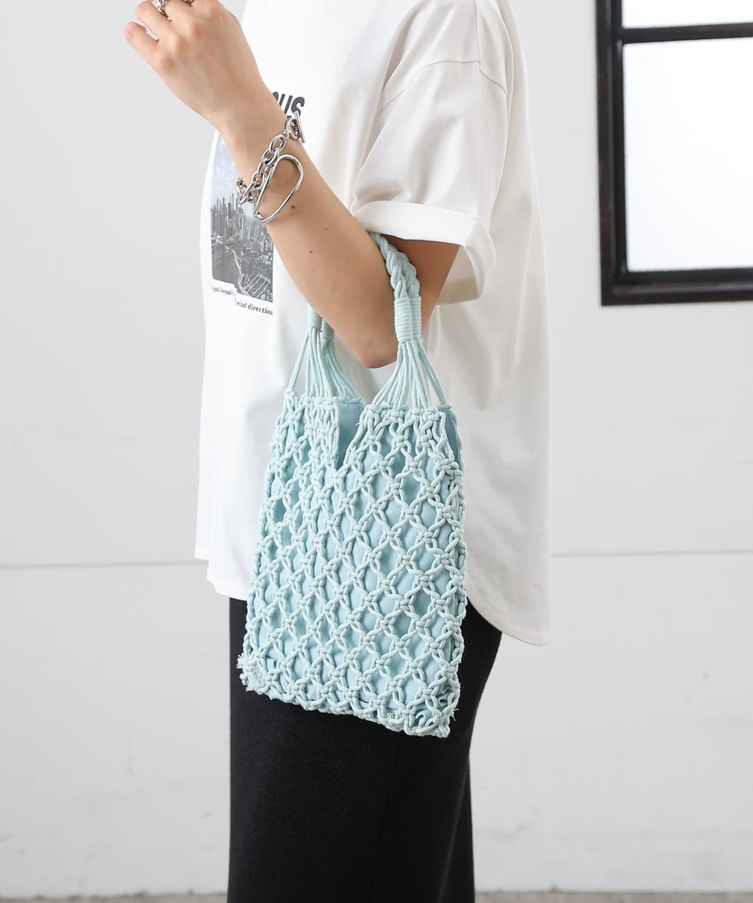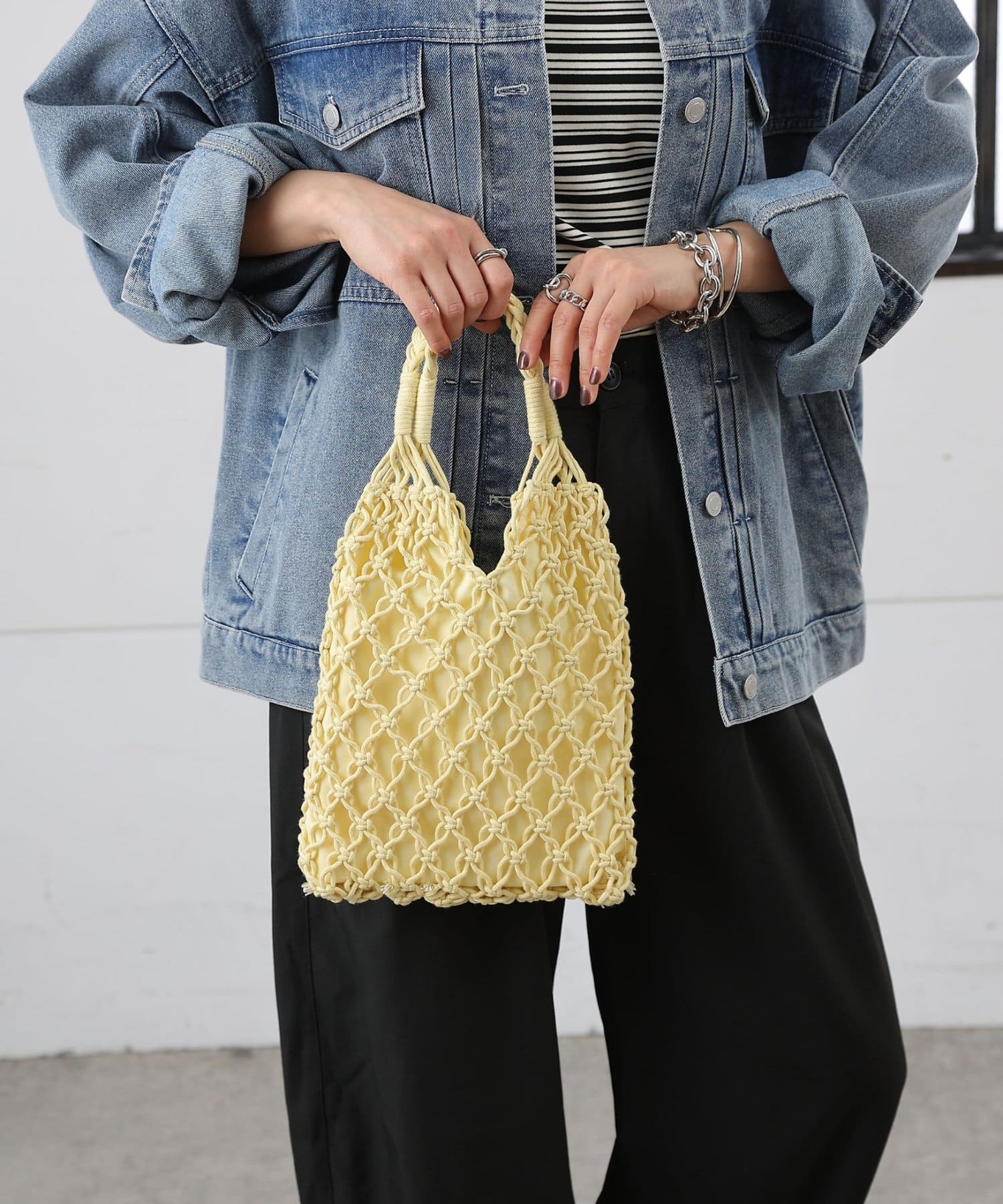 繊細に編み上げたデザインがコーディネートに抜け感をプラスし、持つだけでぐっと春夏らしいスタイリングに仕上がります。