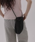 コンパクトながら、スマホやミニ財布に加えてペットボトルも縦横どちらでも収納可能。