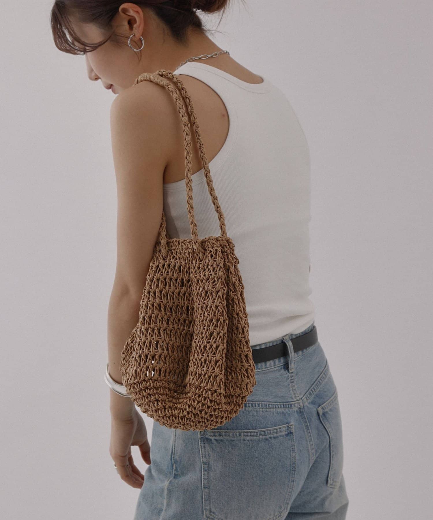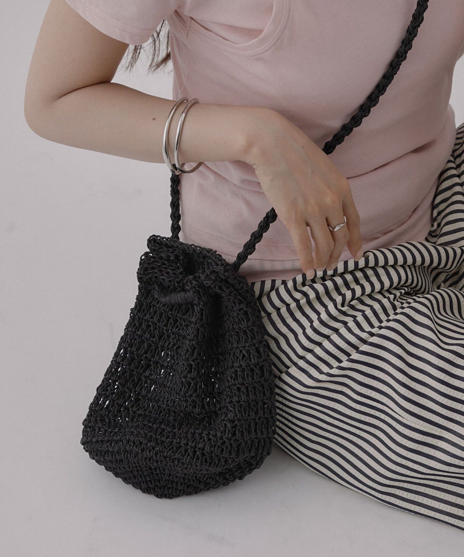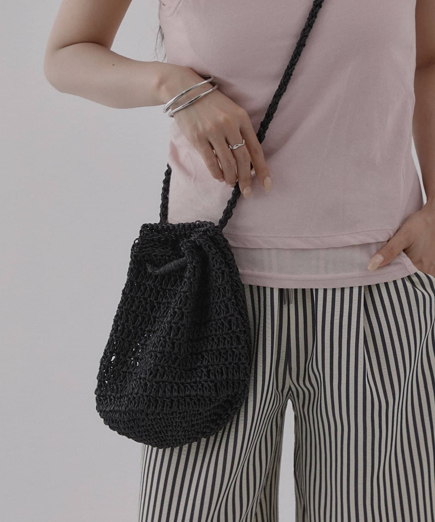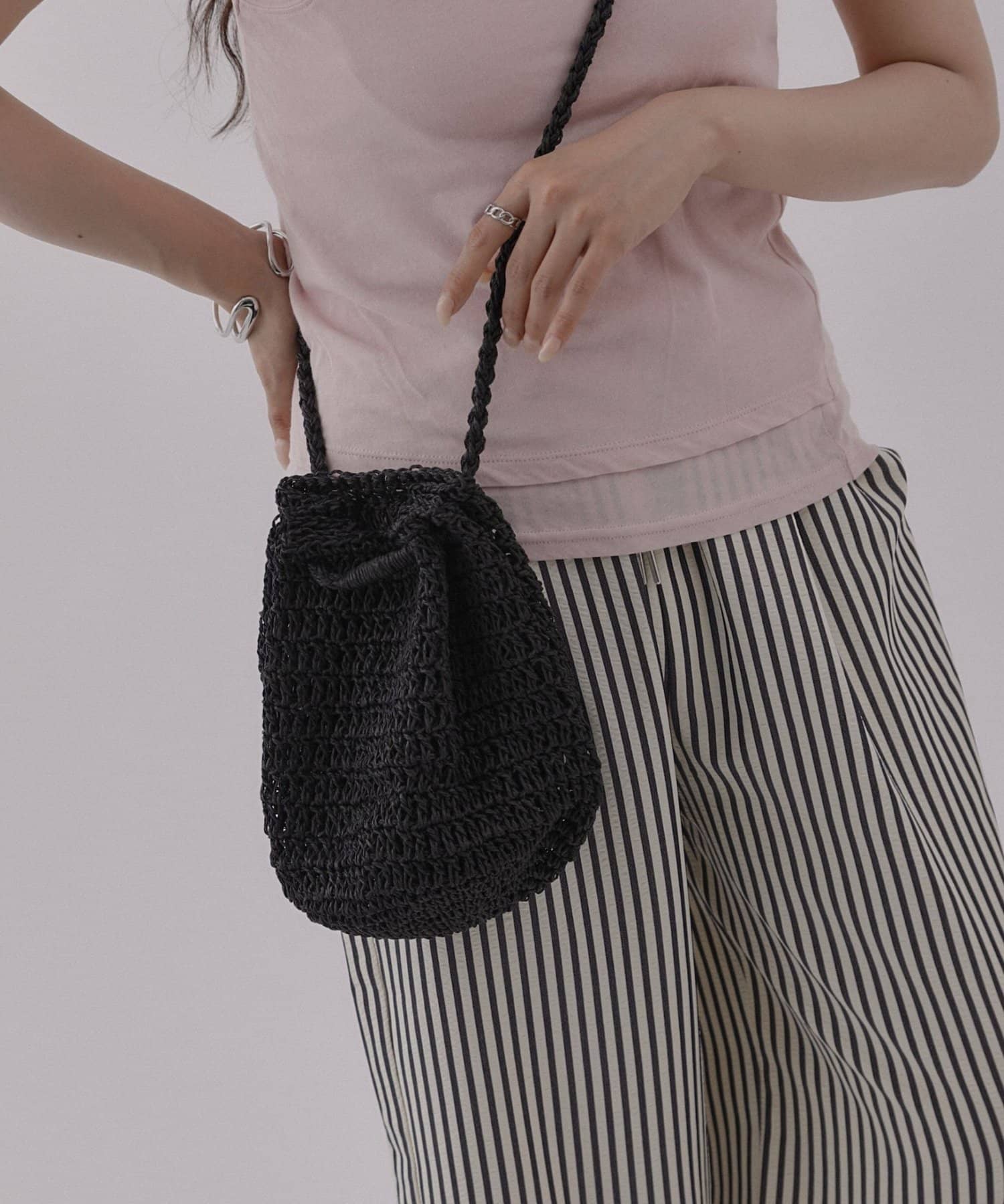 軽やかなペーパー素材で仕上げた、シーズンムード高まるミニ巾着バッグ。