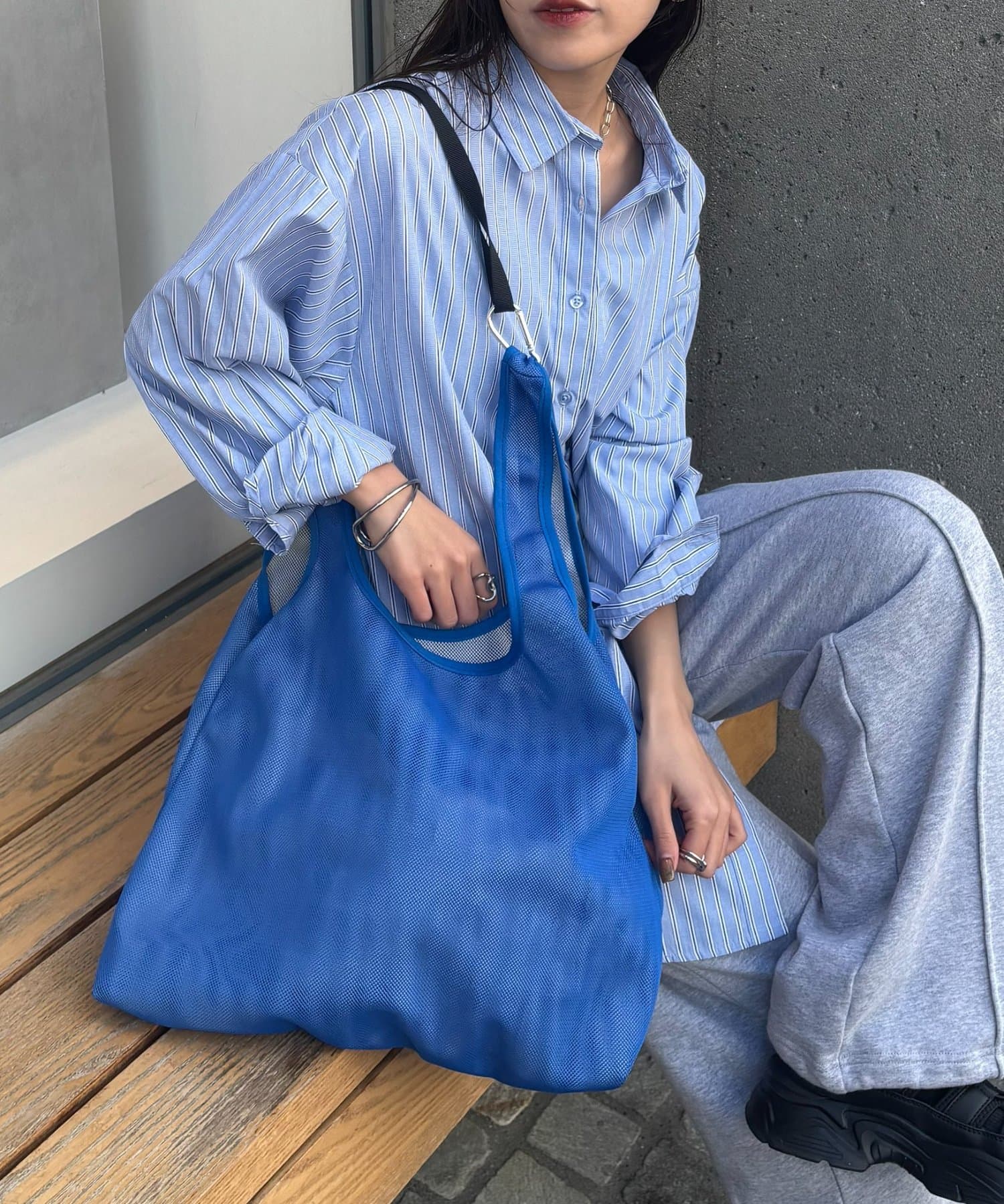 軽やかなメッシュ素材が春夏のコーデに爽やかさをプラス。スポーティーな印象でアクティブにも持てます。