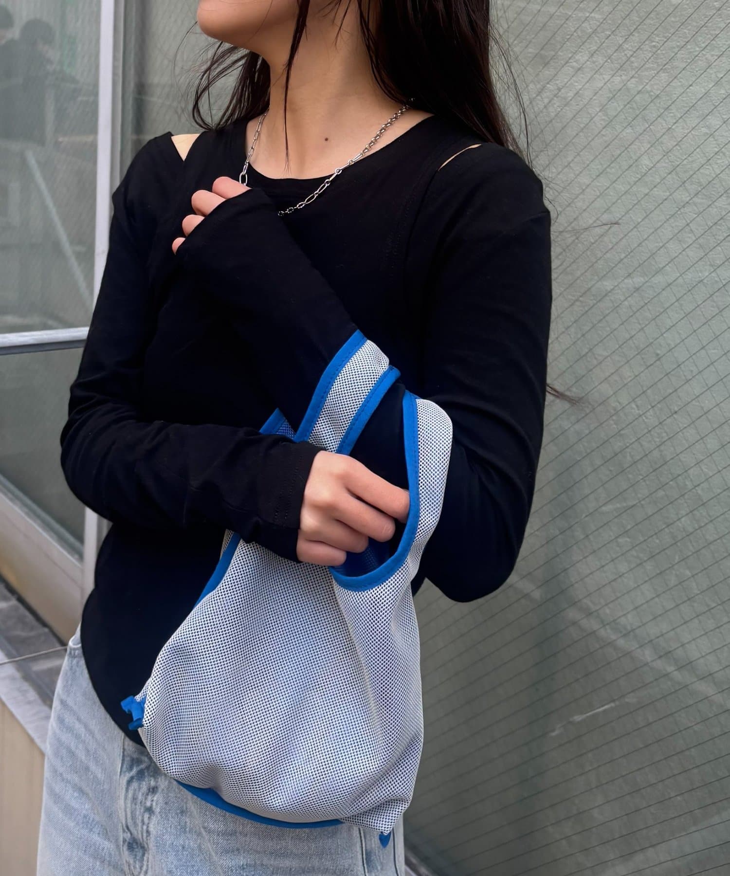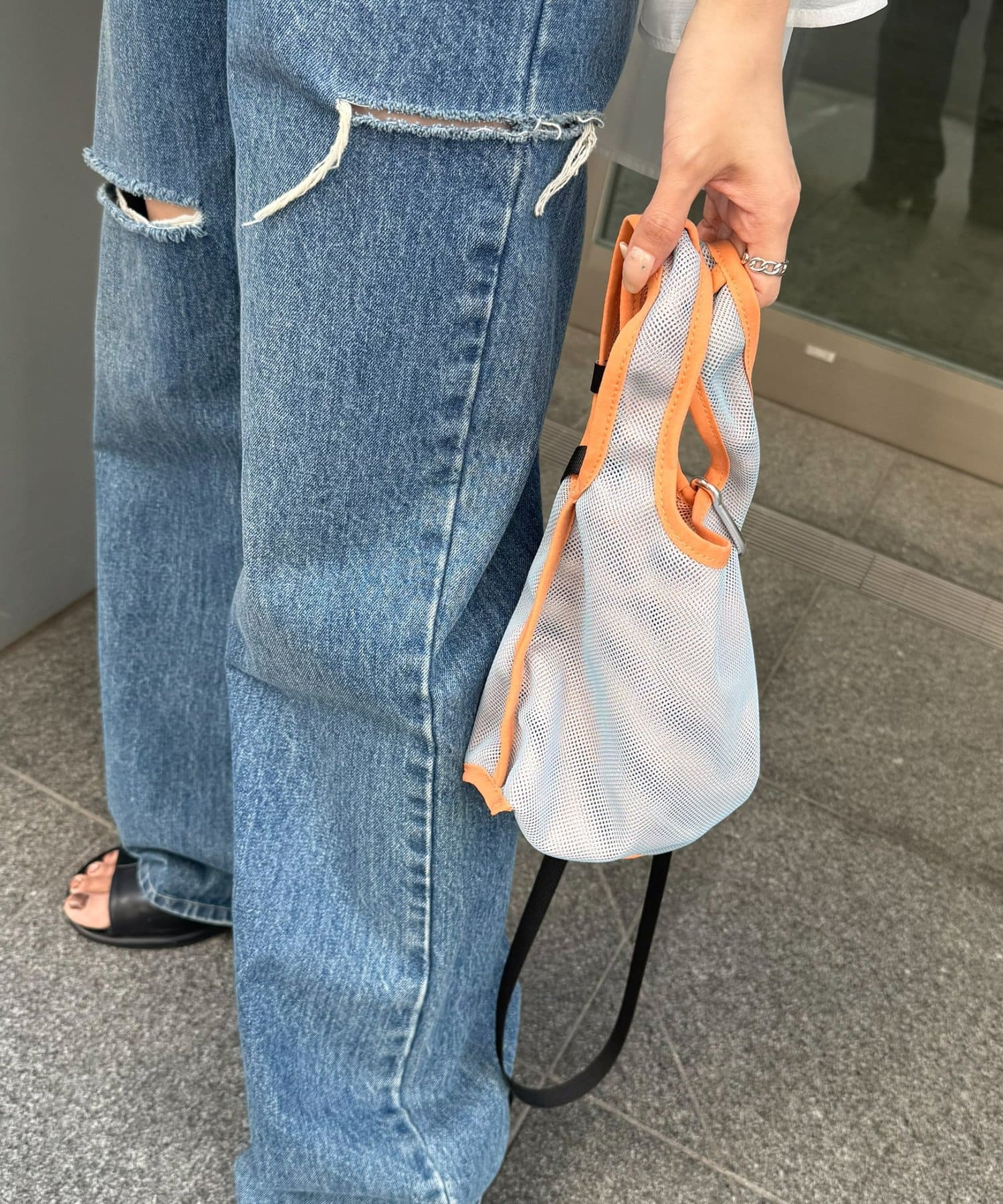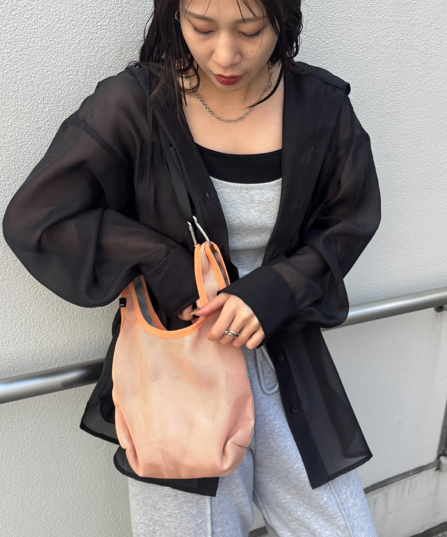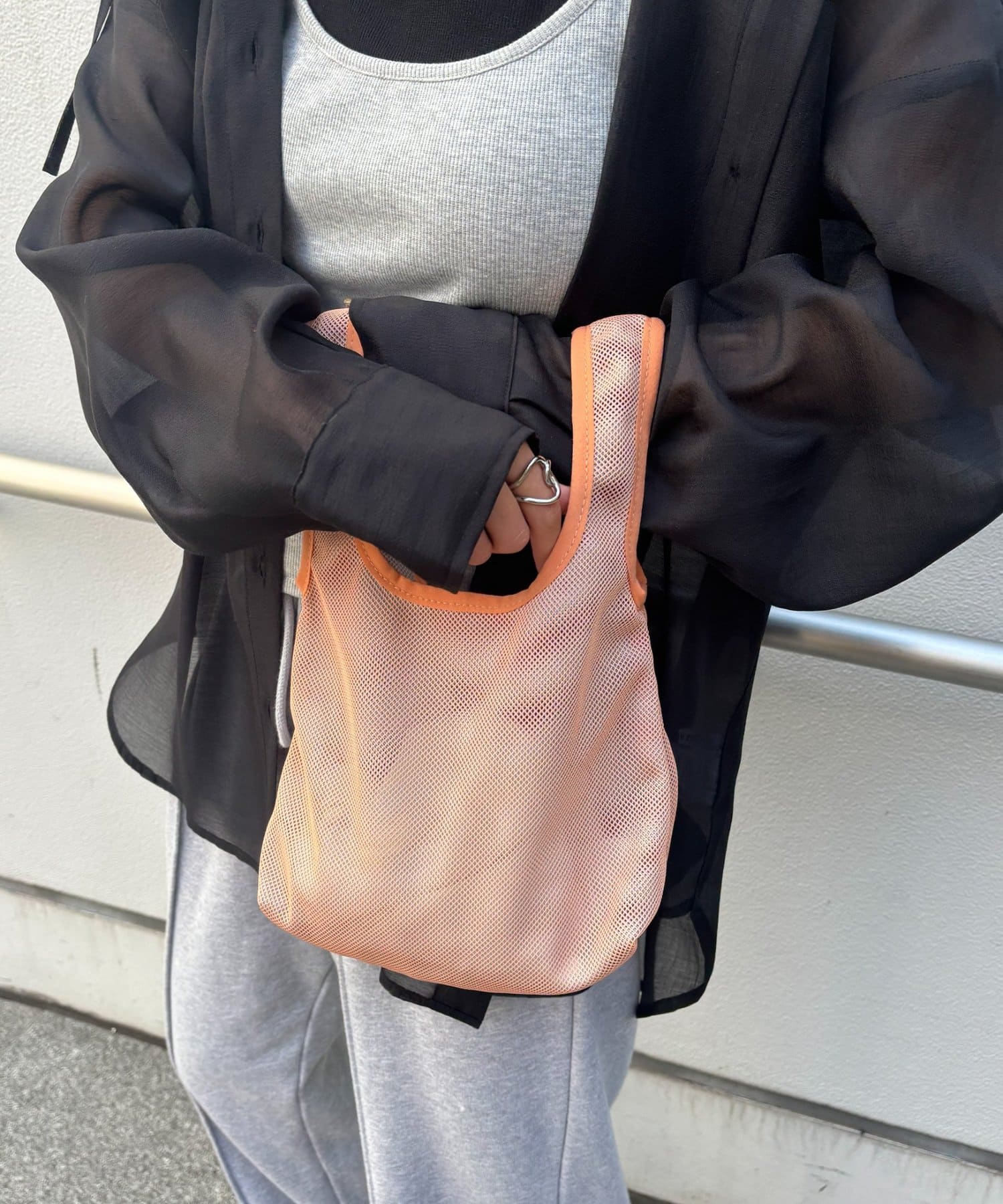 軽やかなメッシュ素材がシーズンムードを引き立てる、ミニショッピングバッグ。