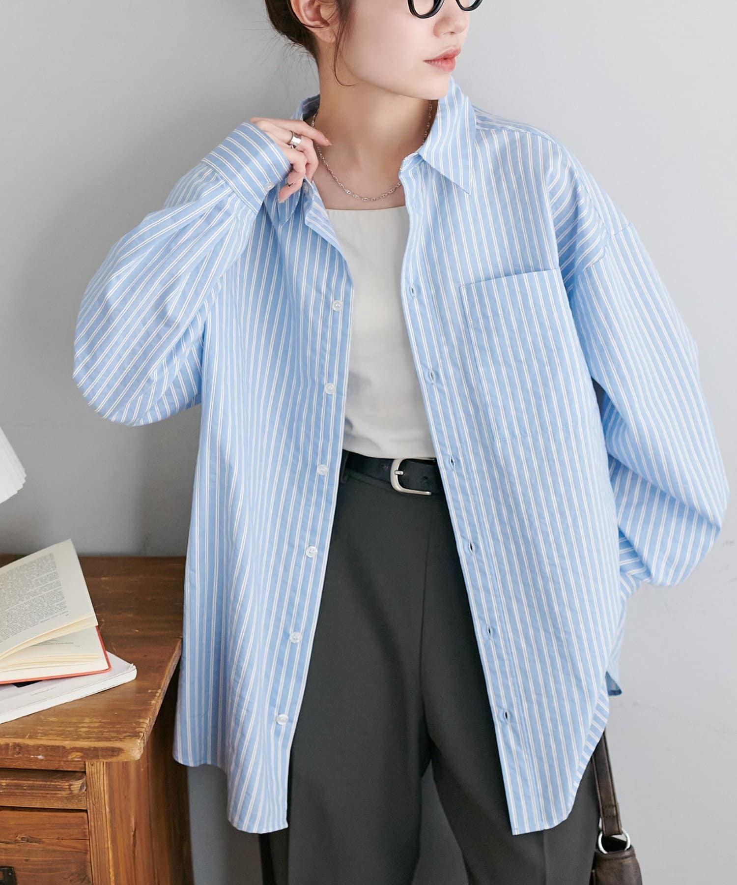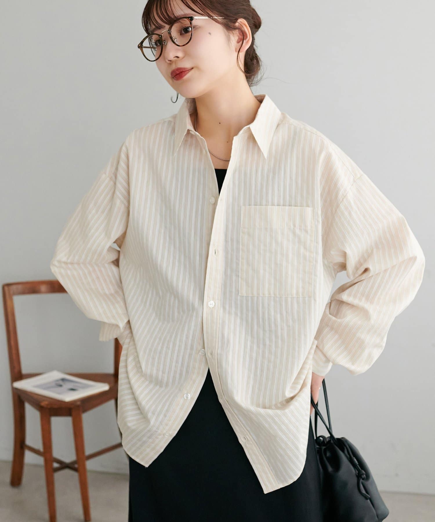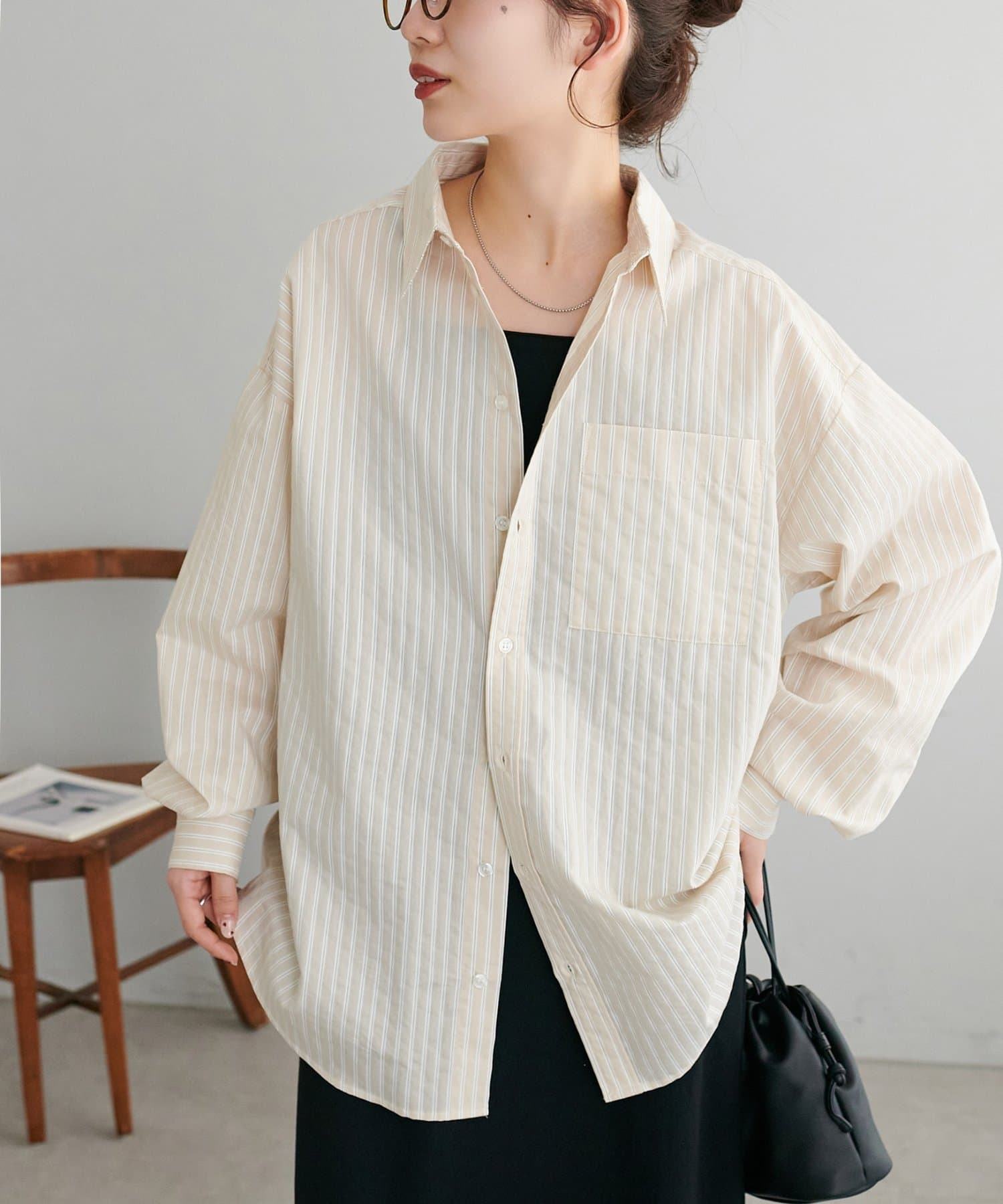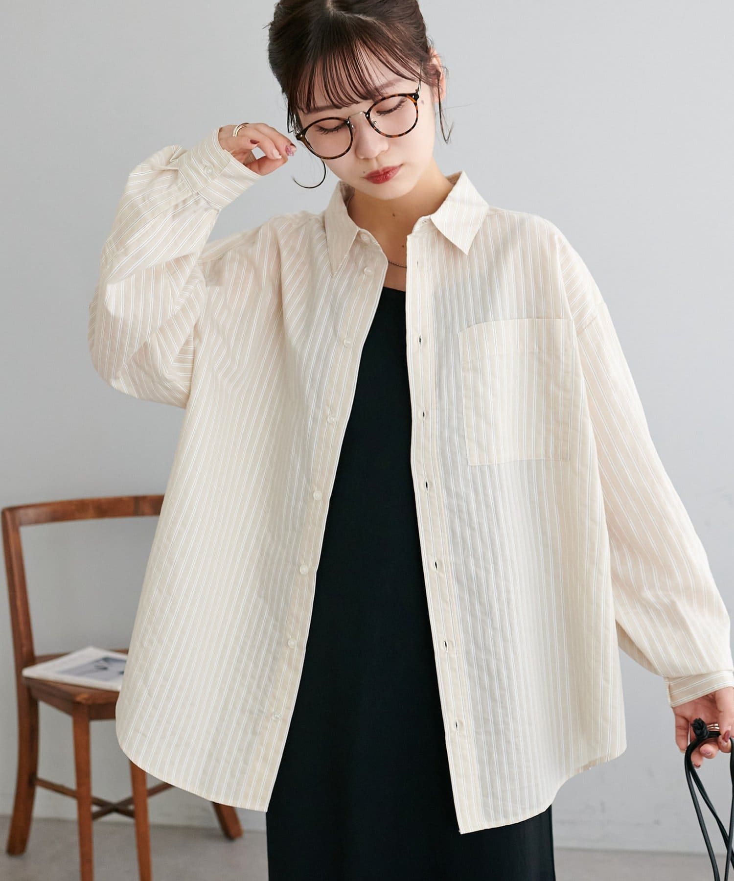 【Enlude/ユニセックス】シアーストライプシャツ