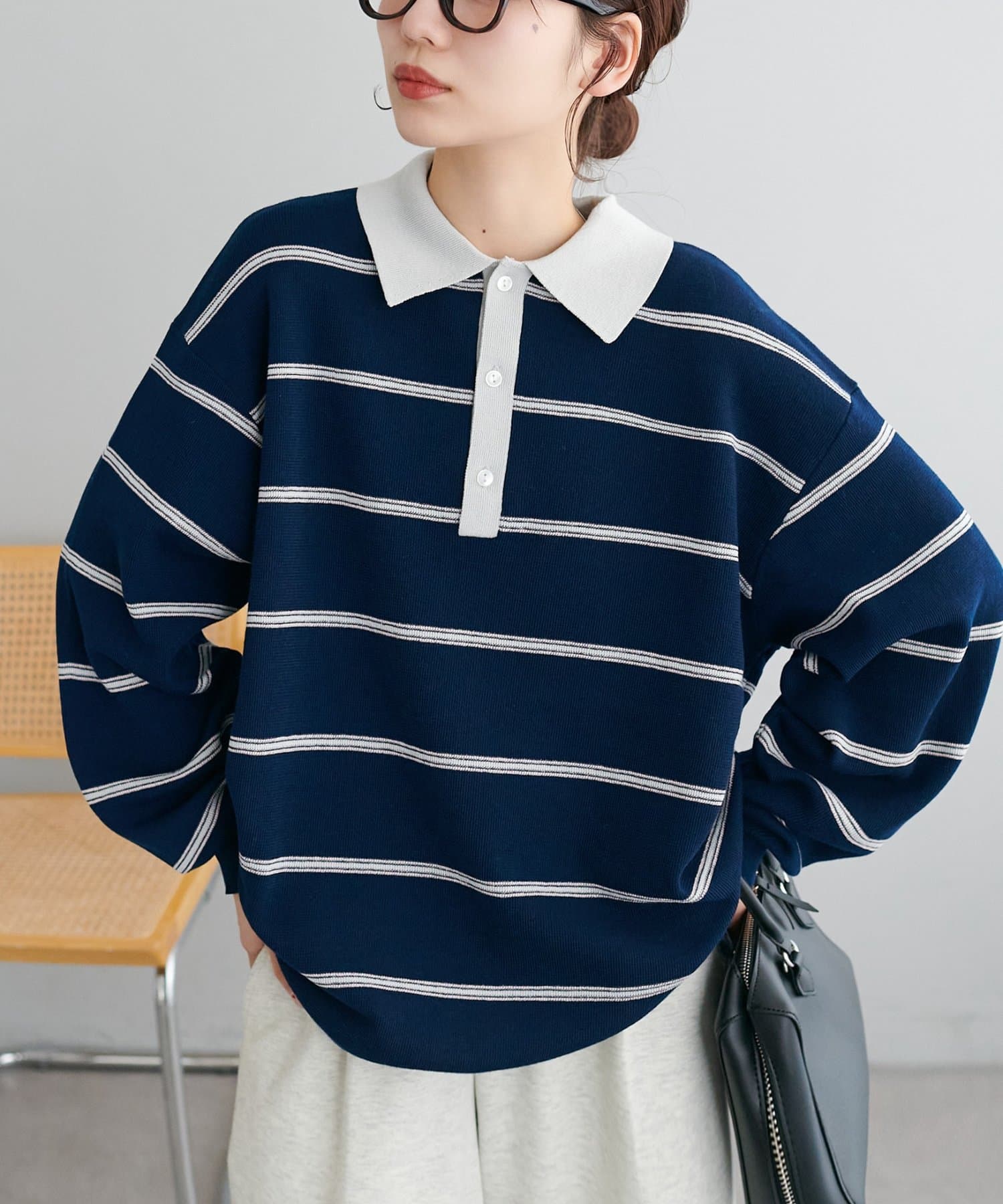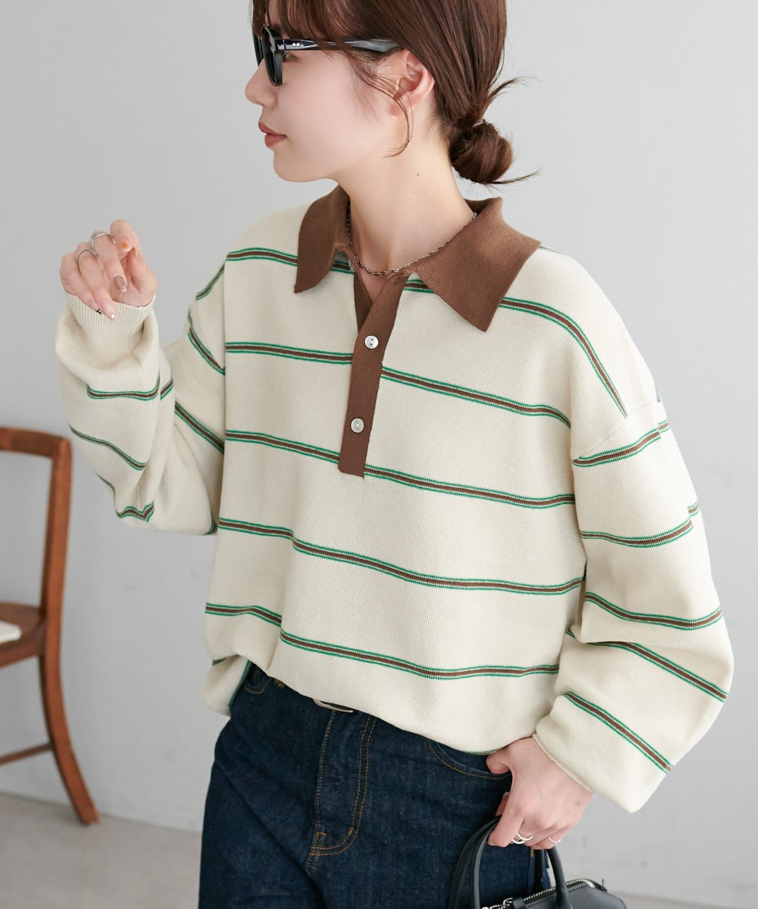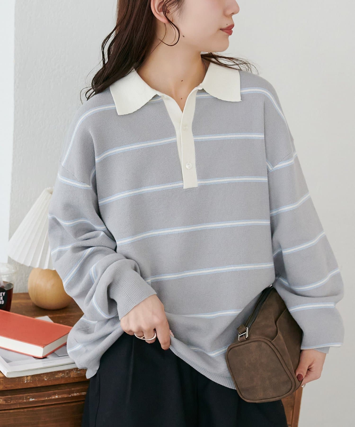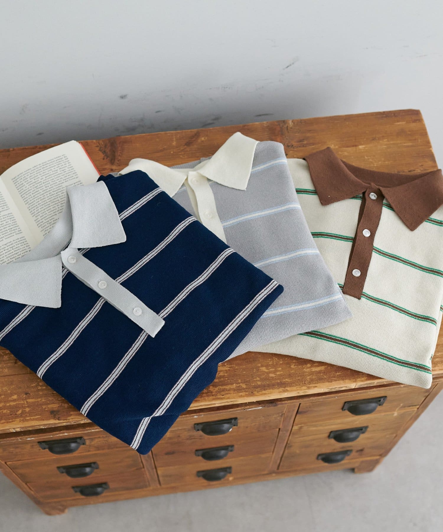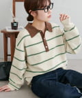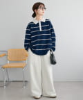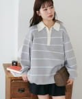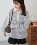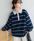 【Enlude/ユニセックス】ランダムボーダーニットポロ