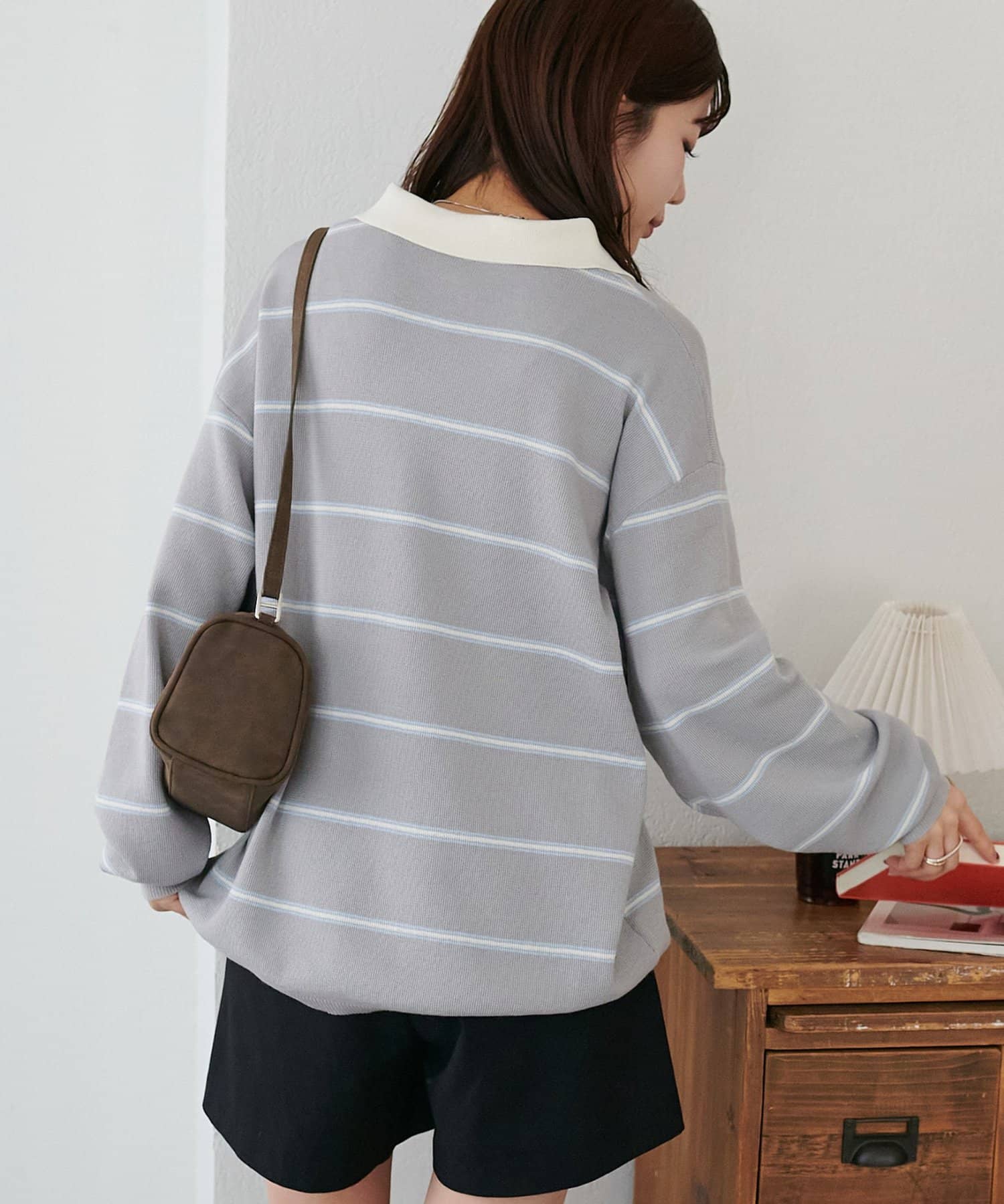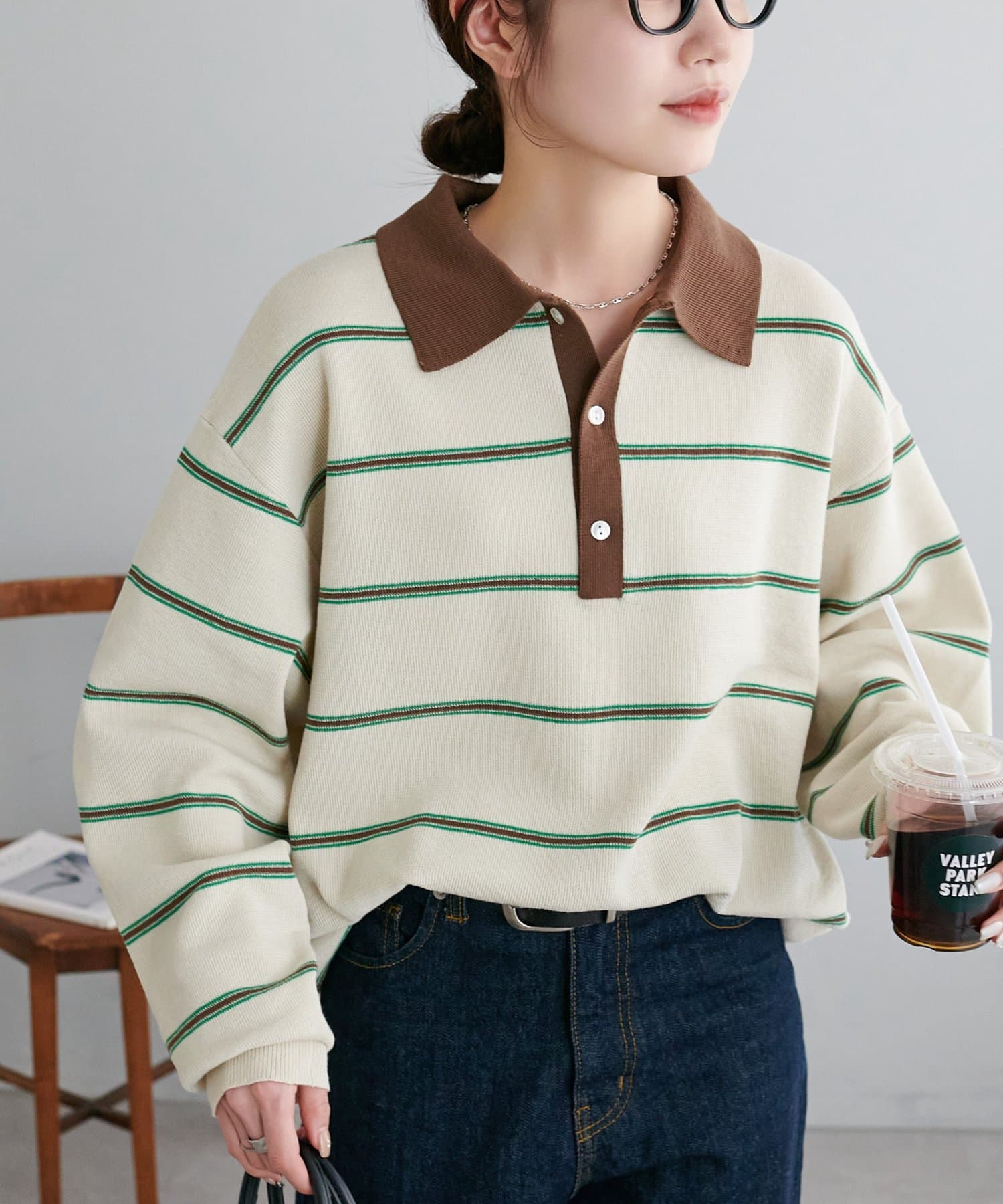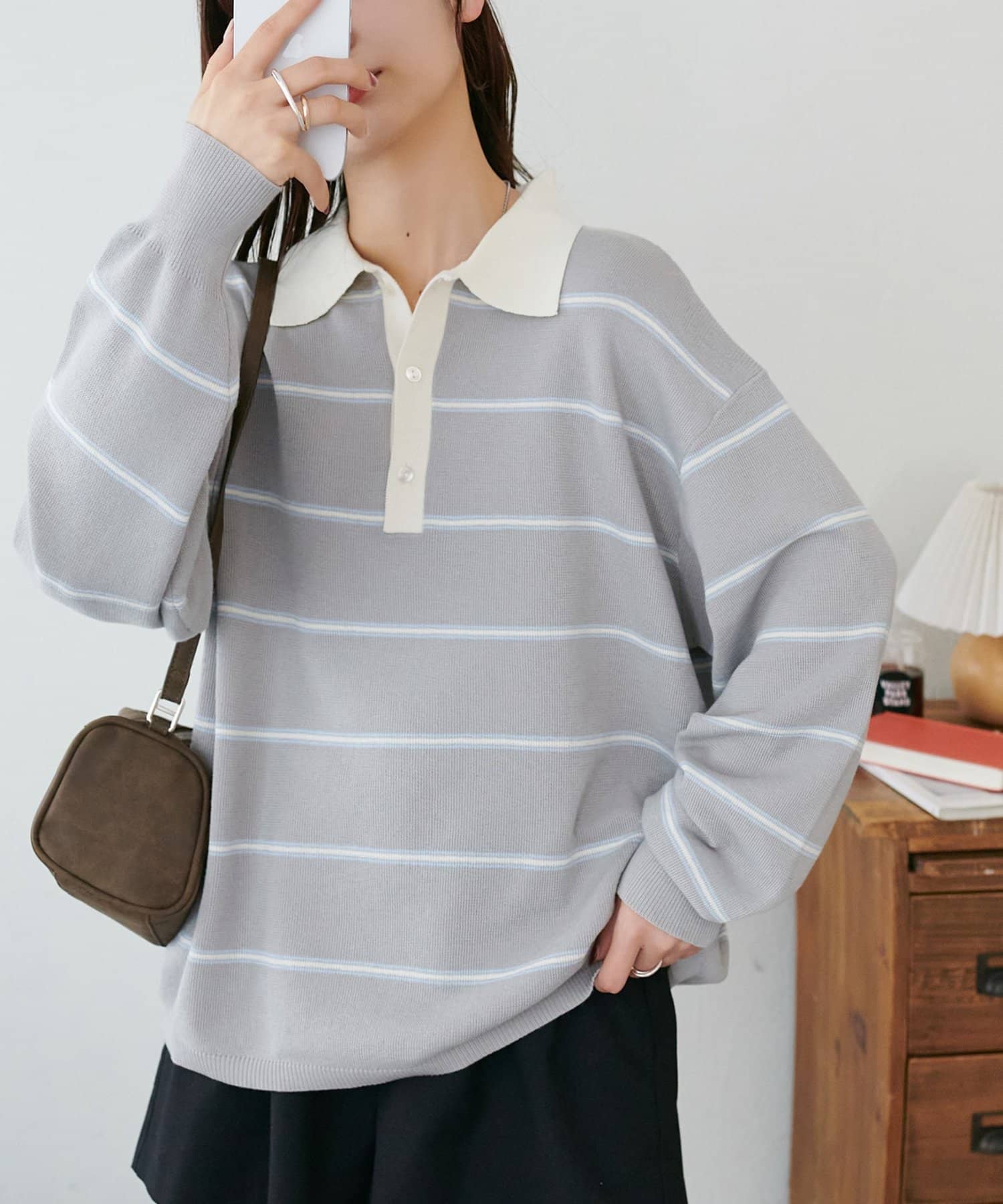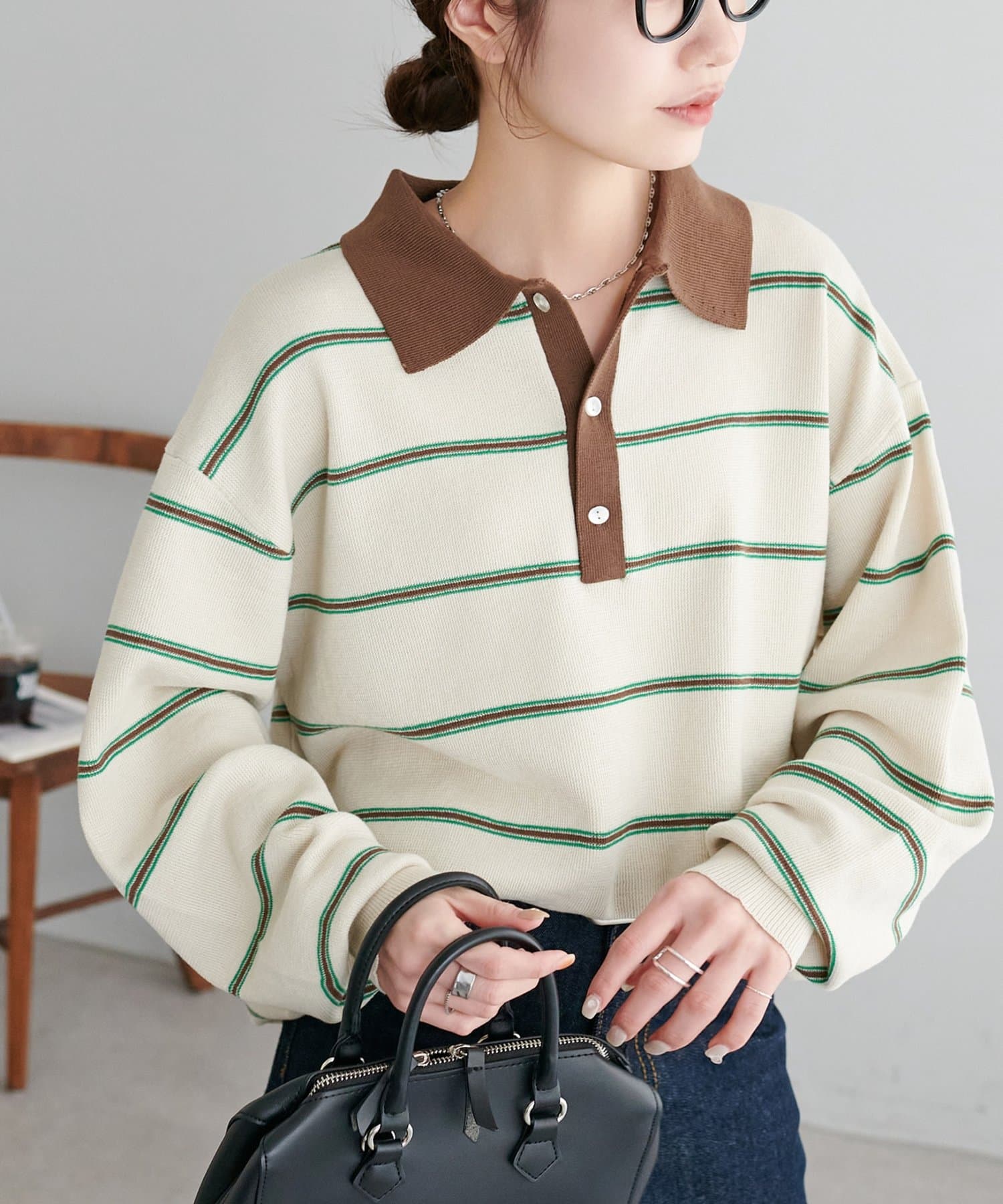 【Enlude/ユニセックス】ランダムボーダーニットポロ