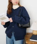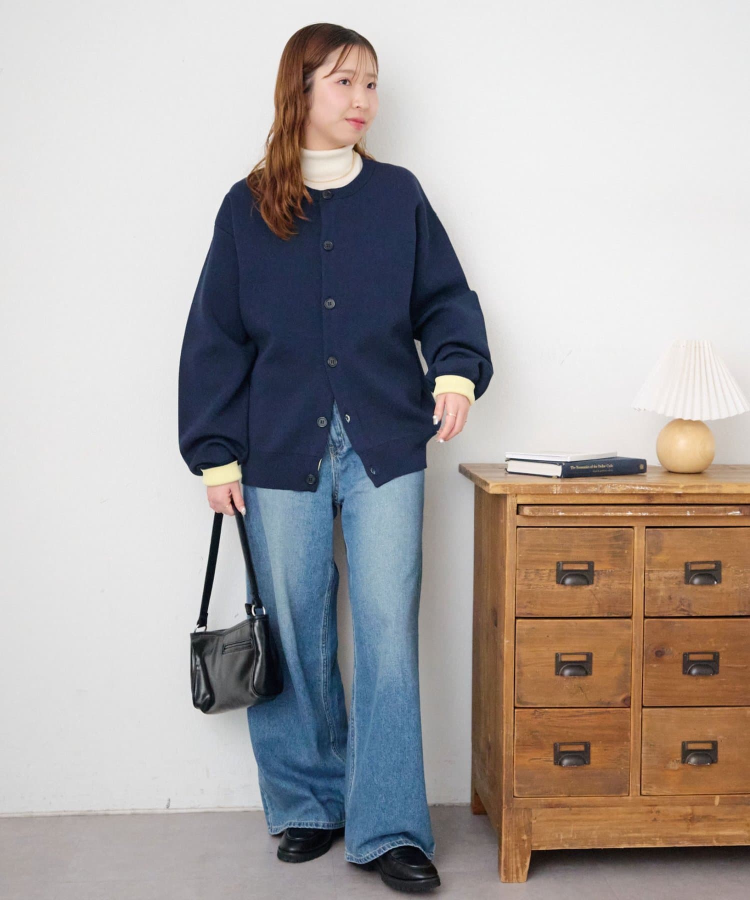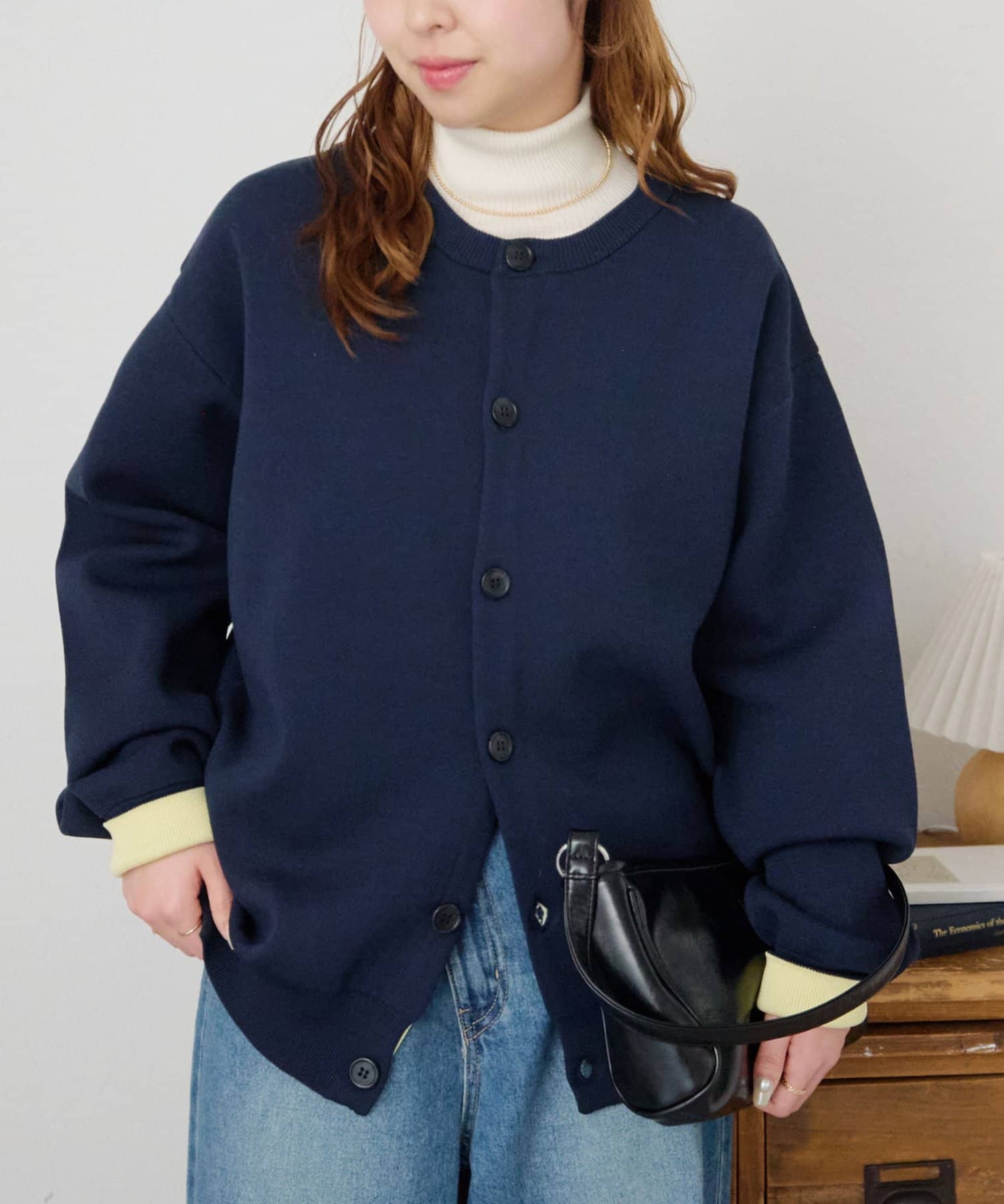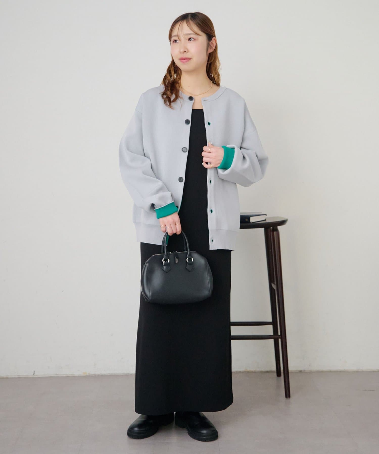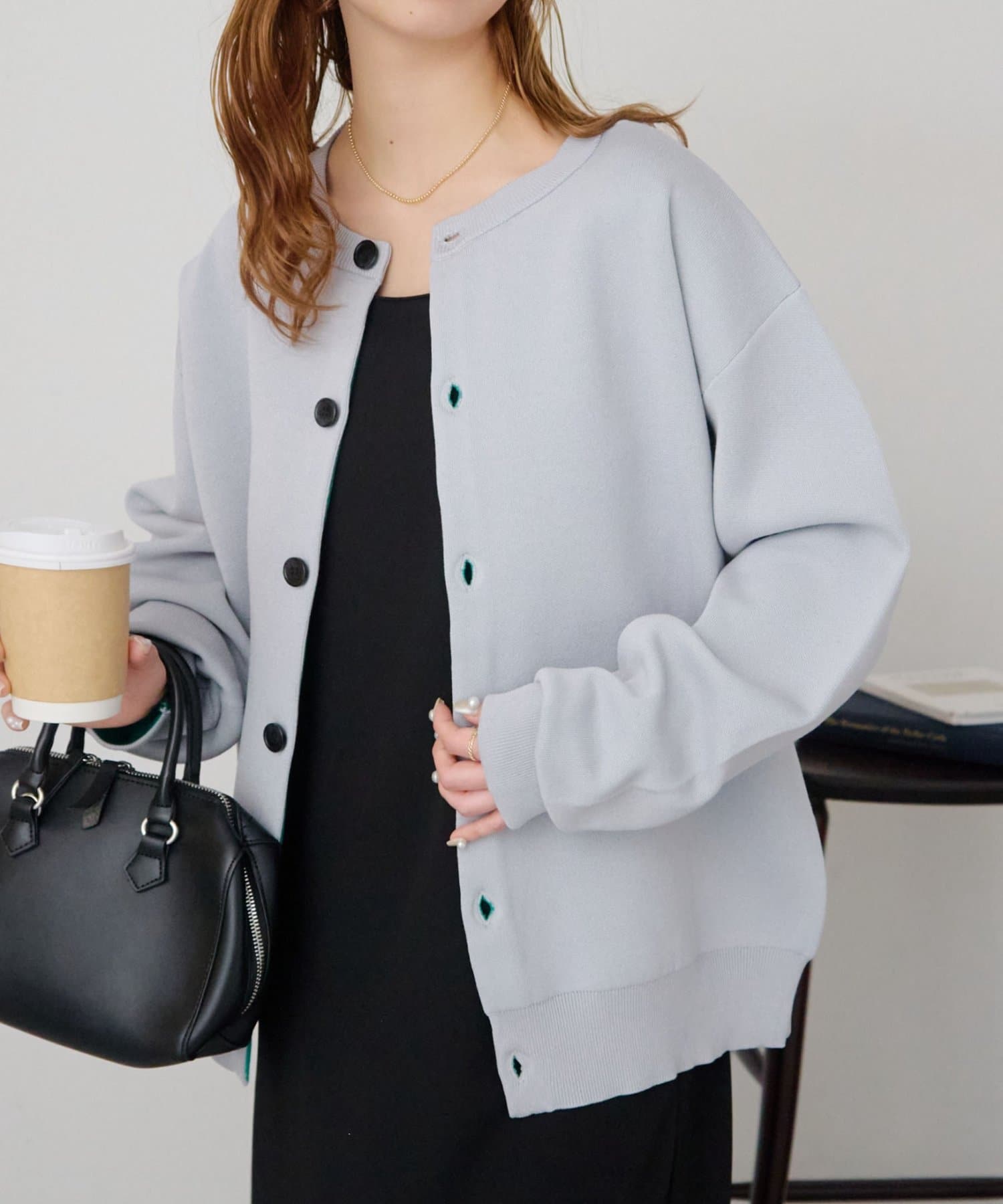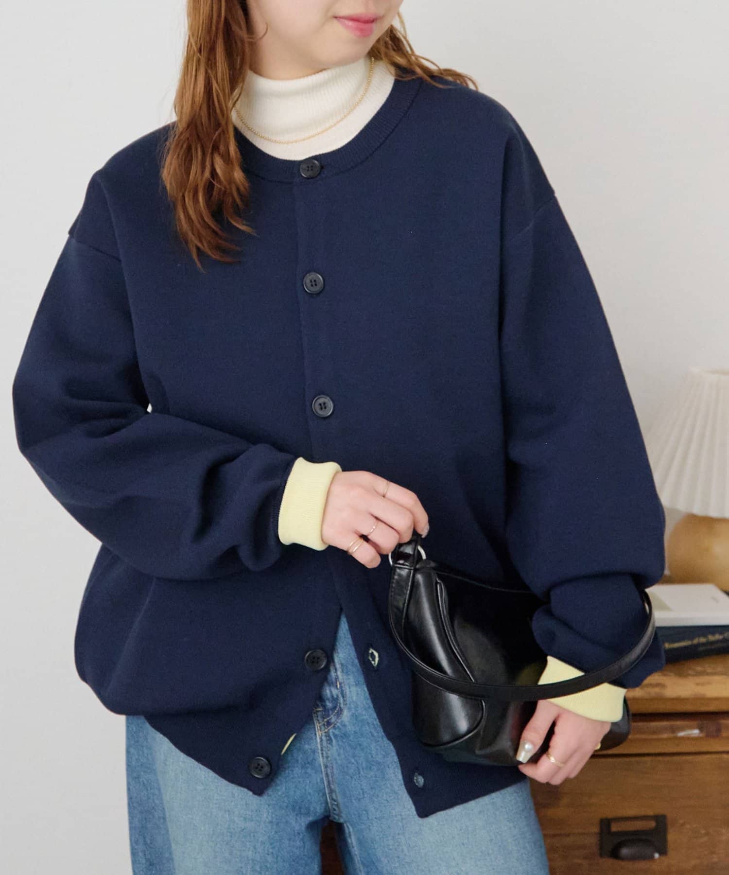 【ユニセックス】スウェットライク配色クルーカーディガン