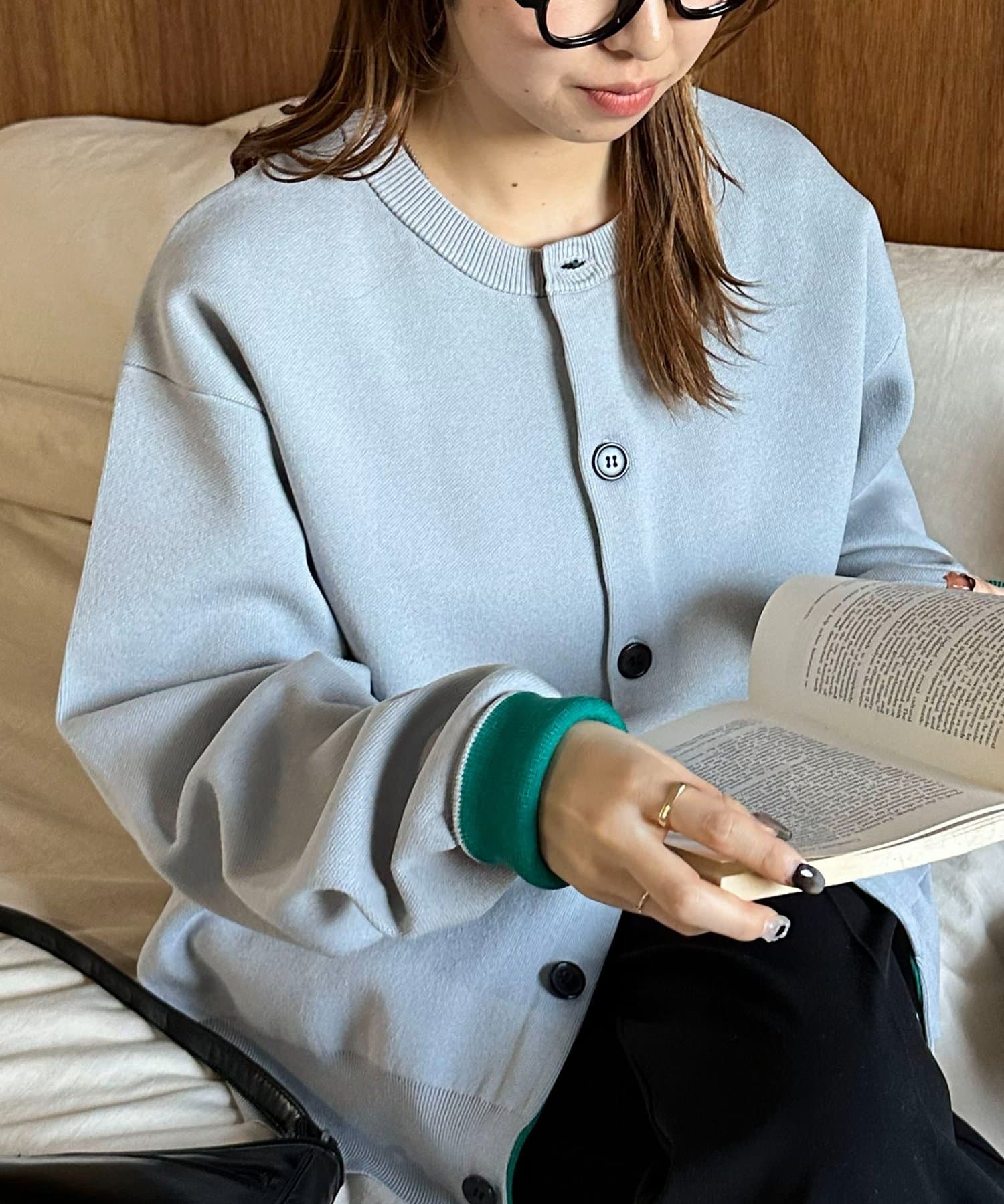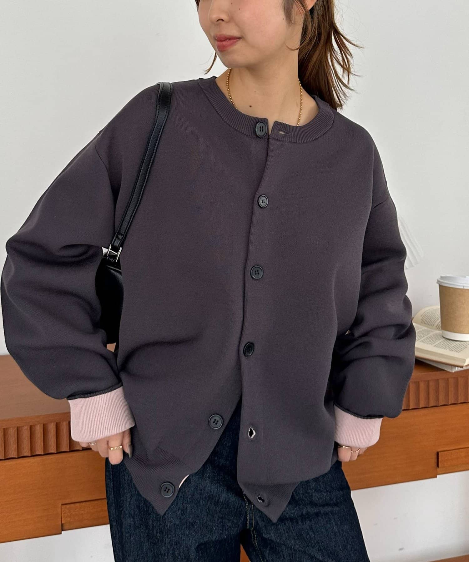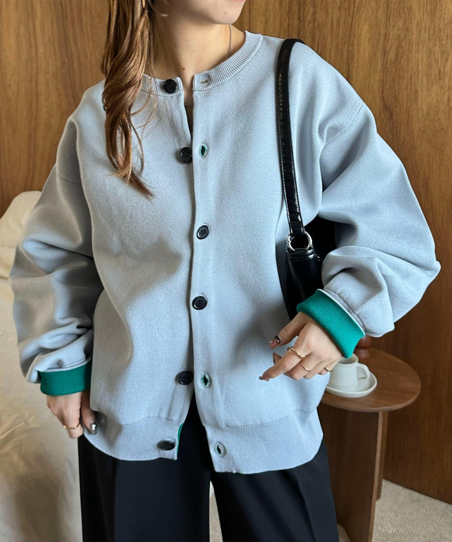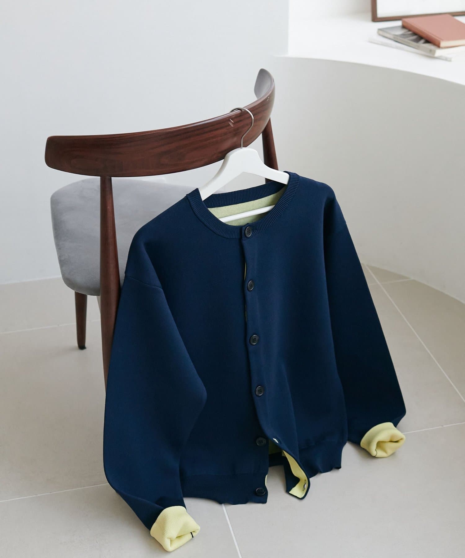 【ユニセックス】スウェットライク配色クルーカーディガン