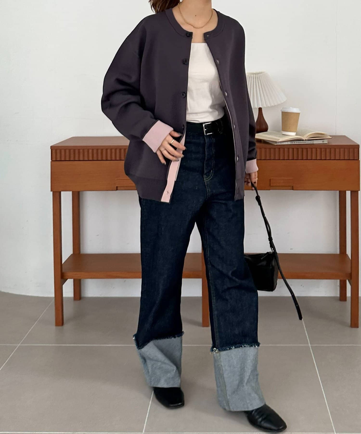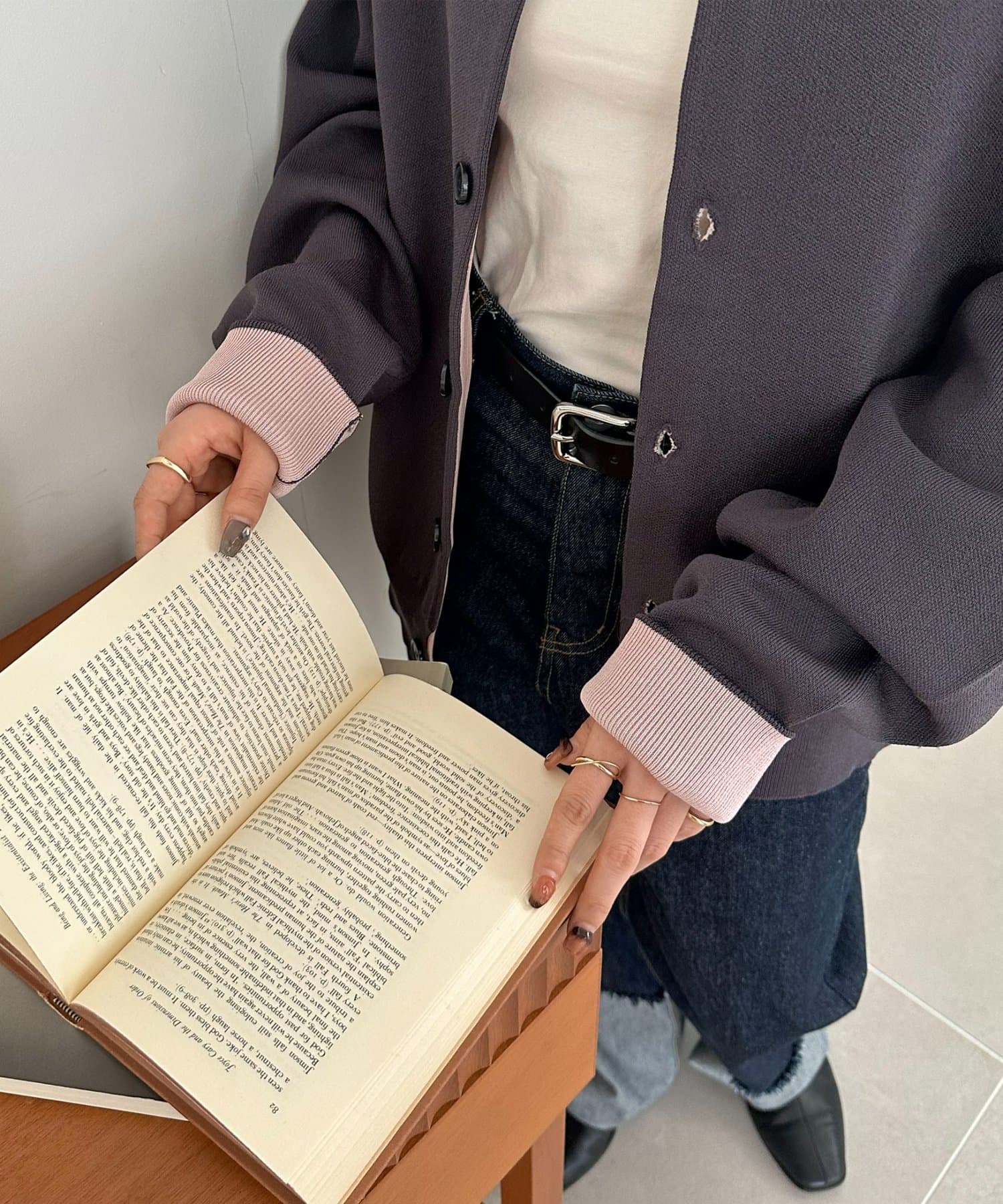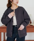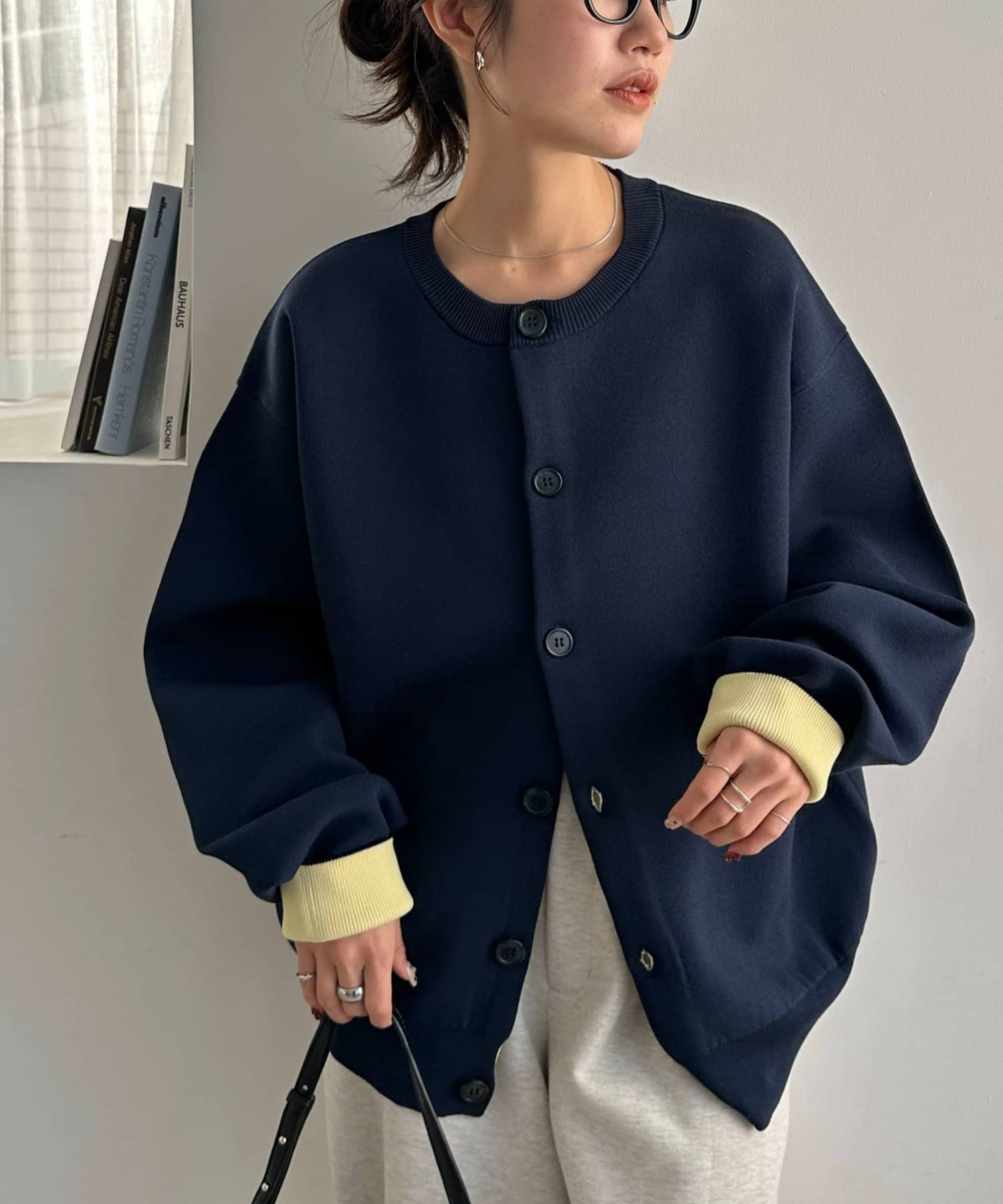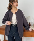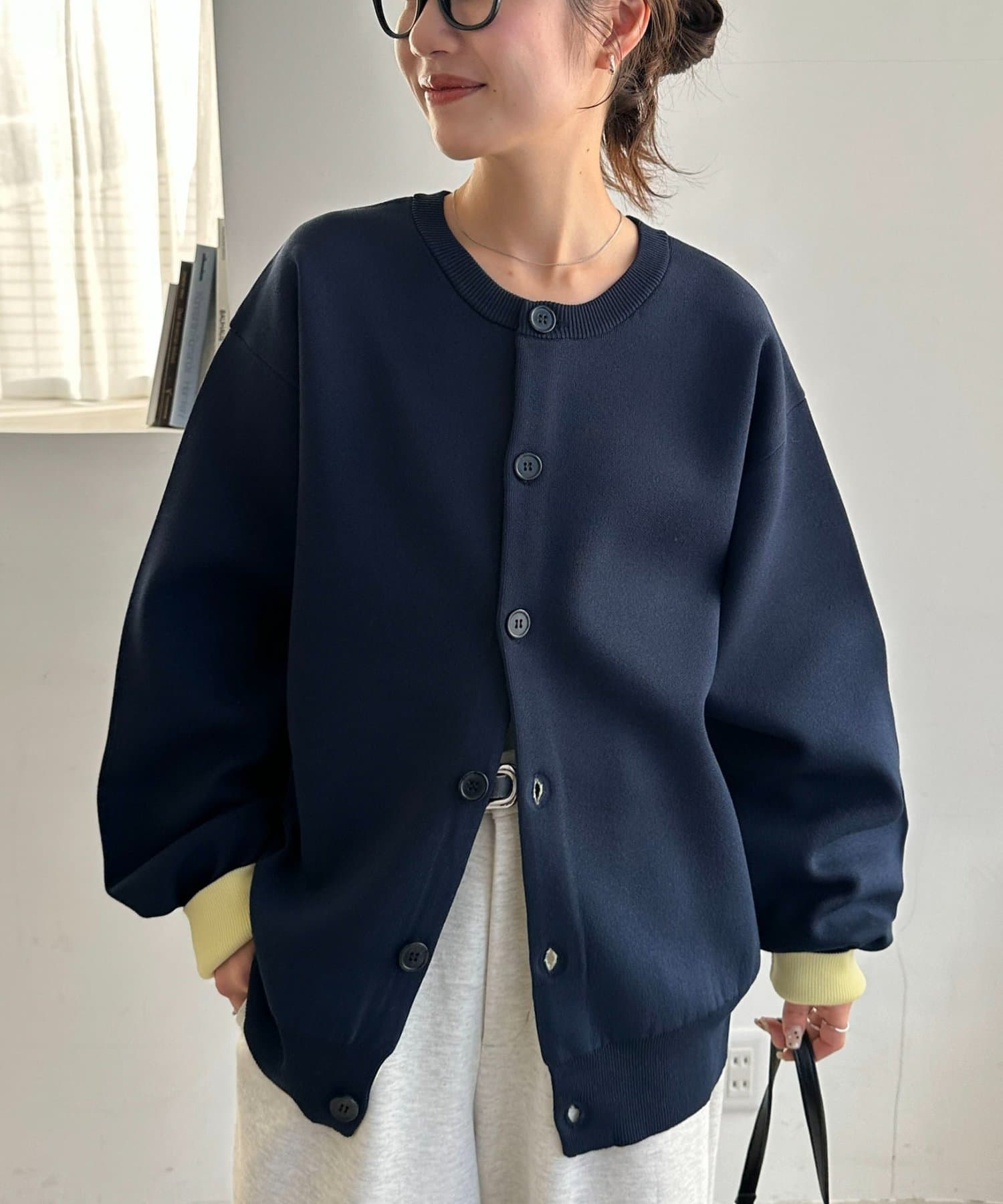 【ユニセックス】スウェットライク配色クルーカーディガン
