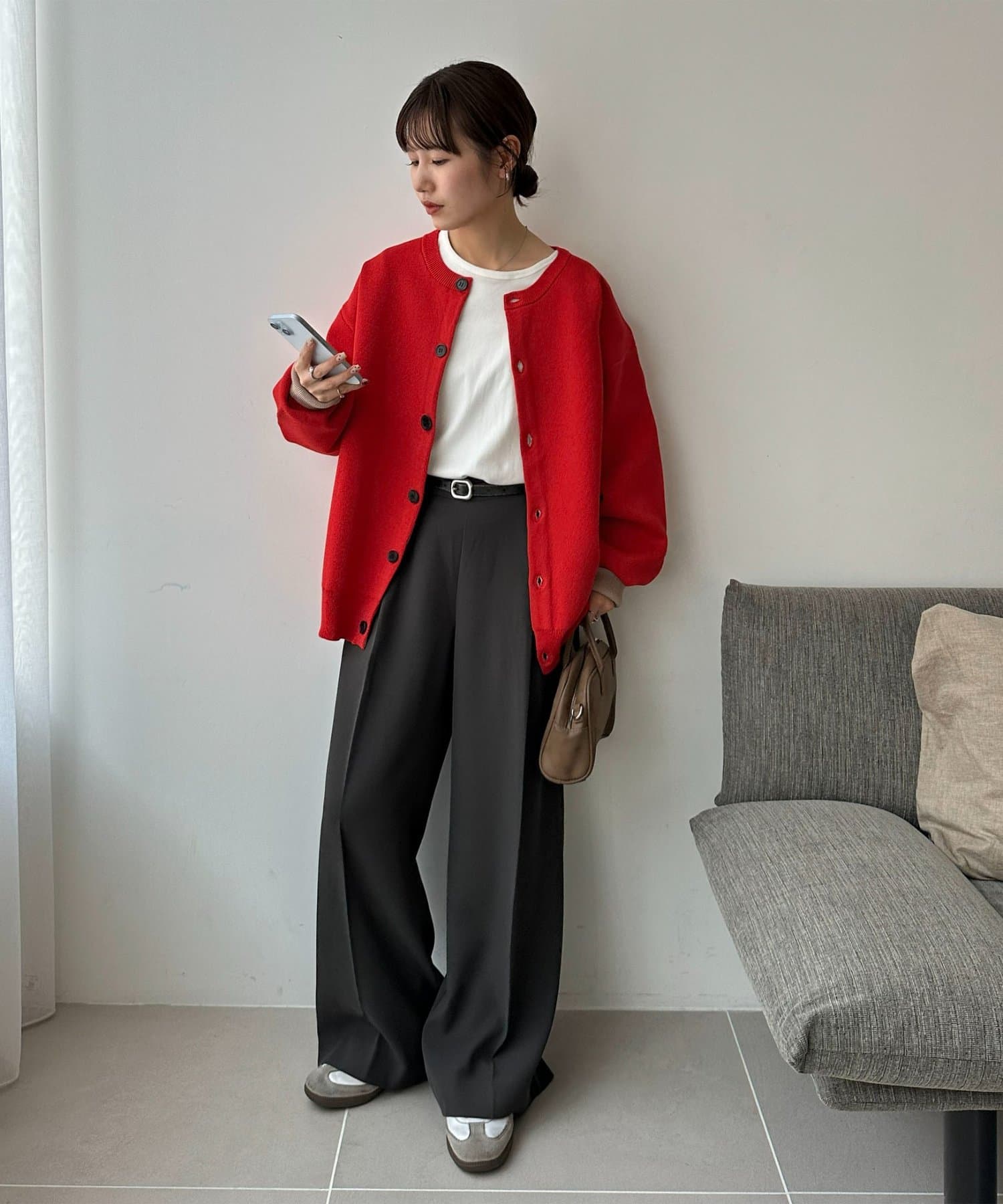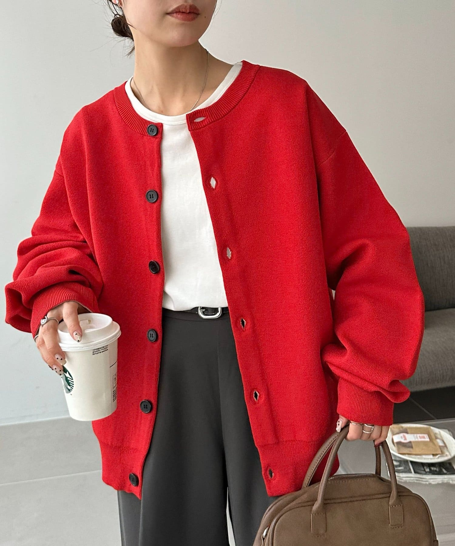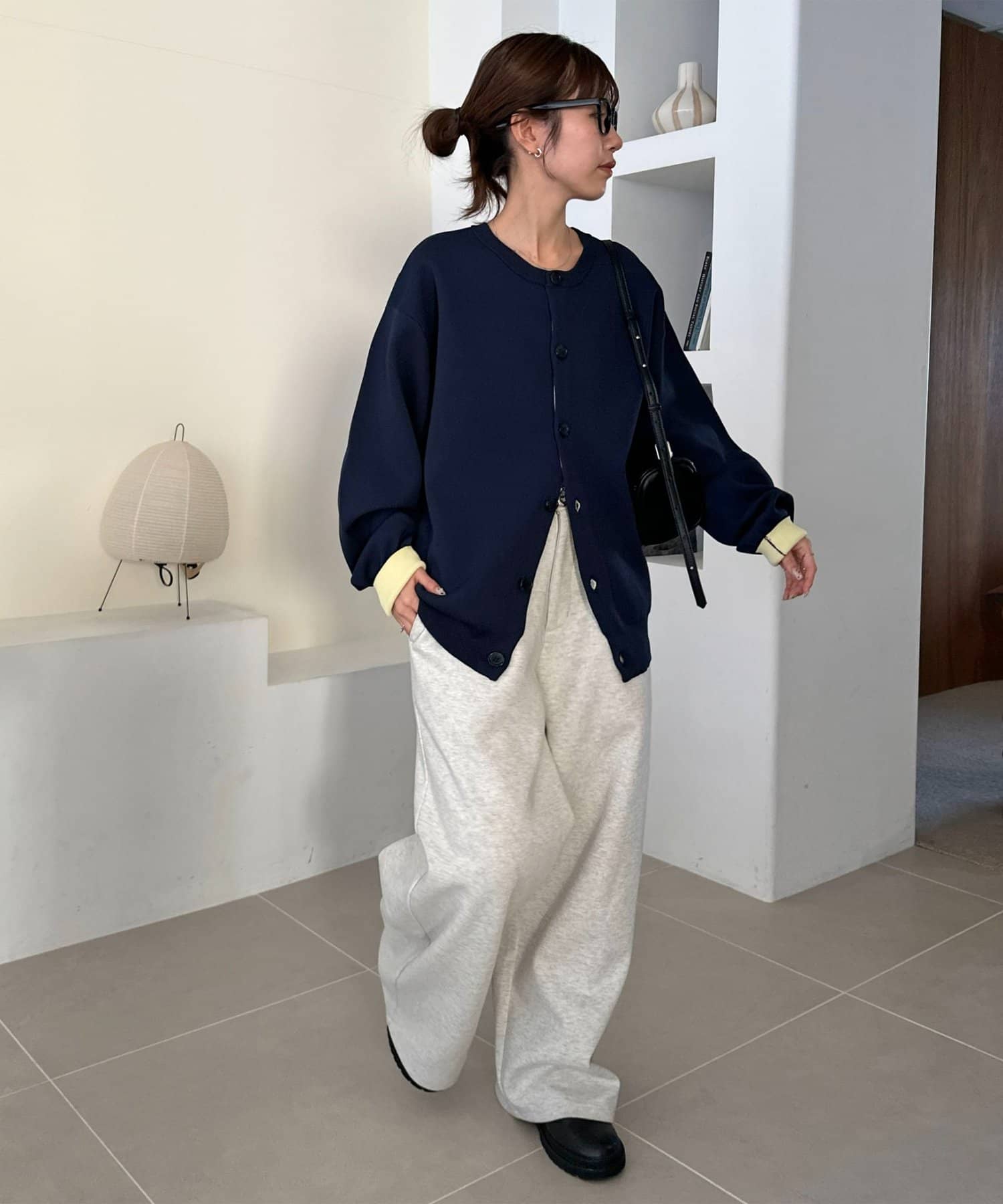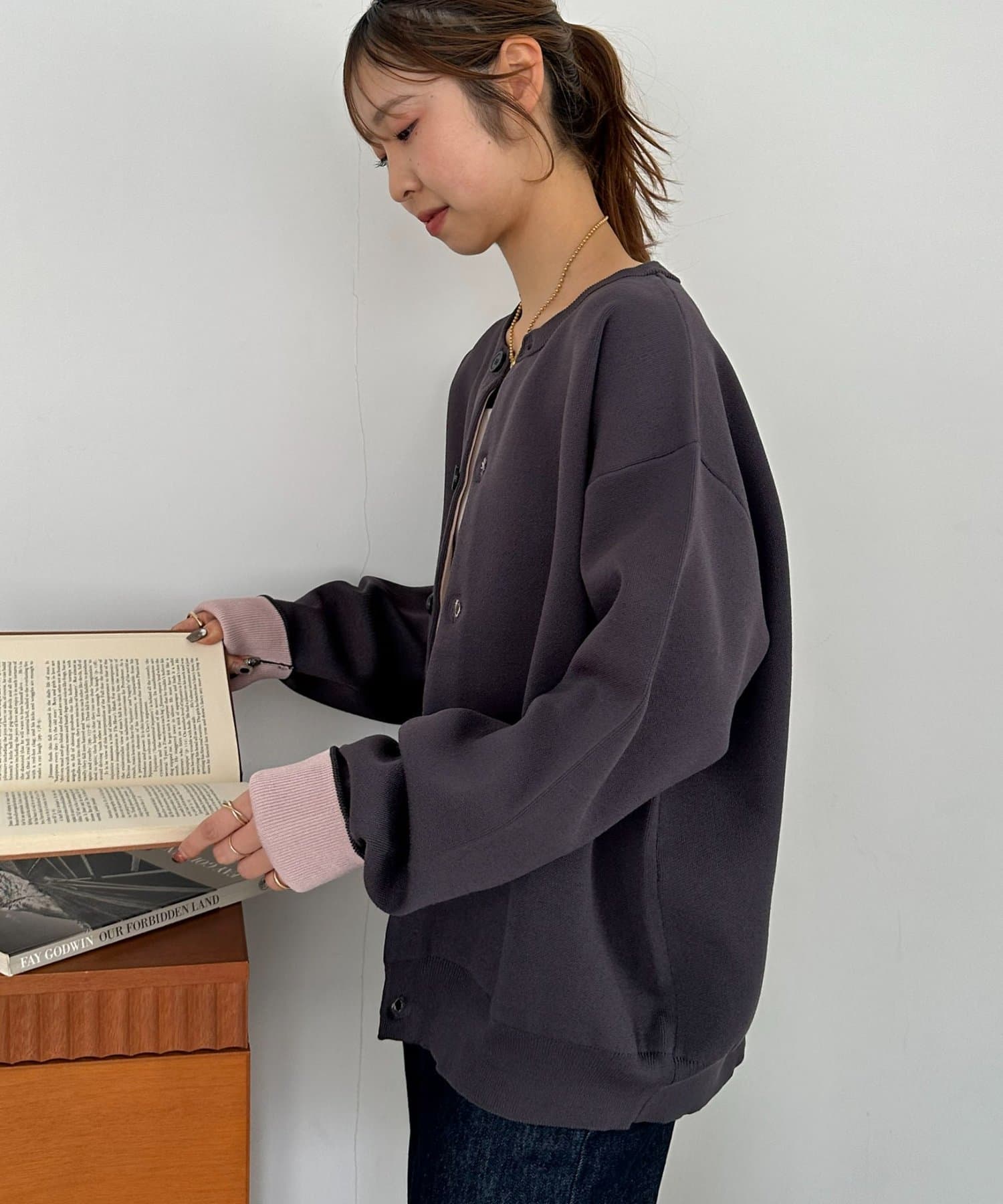 TOP > DISCOAT > レディース > トップス > カーディガン/ボレロ > 【ユニセックス】スウェットライク配色クルーカーディガン