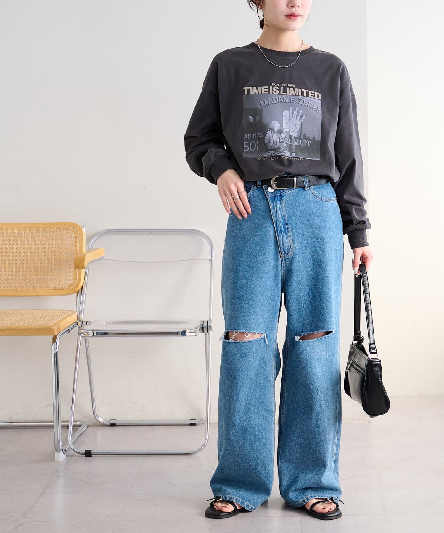 ▶ライトデニムクラッシュワイドパンツ