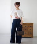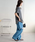 ▶ハイウエストステッチ使いデニムワイドパンツ